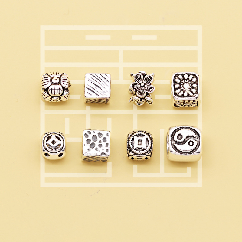 1:Four-sided small flower square bead FB07450242:Four-sided square bead FB08280183:Four-sided daisy square bead FB05070184:Copper money grain square bead FB05640246:Copper Coin Block Small FB04620187:Copper Coin Square Large FB0462018