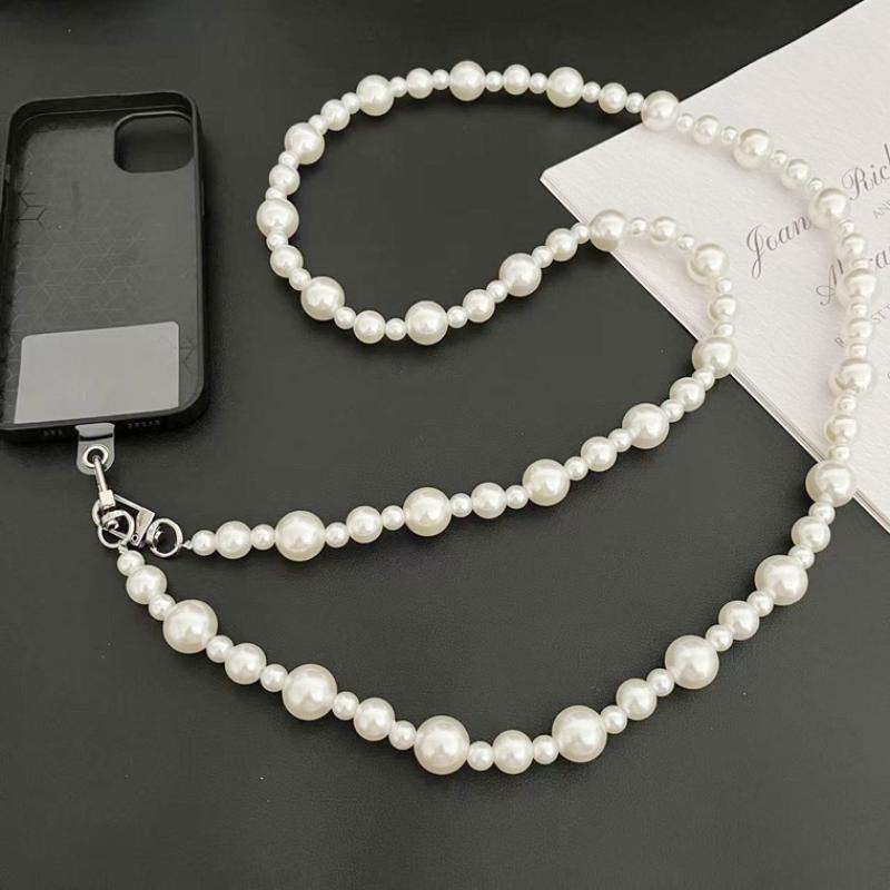 ABS-Kunststoff-Perlen Handys Tragegurt, mit Zinklegierung, handgemacht, Anti-Skidding & für Frau, keine, pearl size 8-12-16mm, Länge ca. 120 cm, verkauft von PC