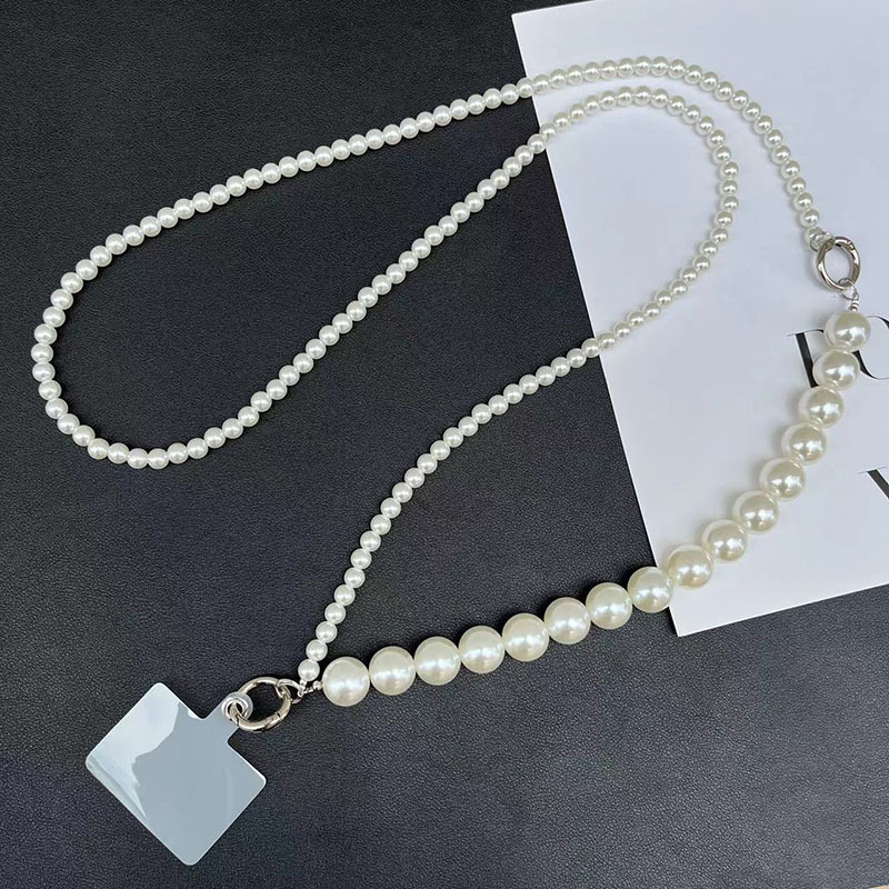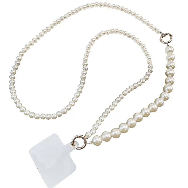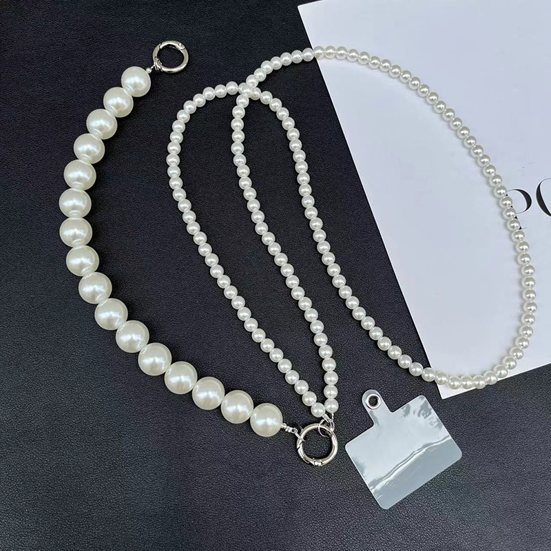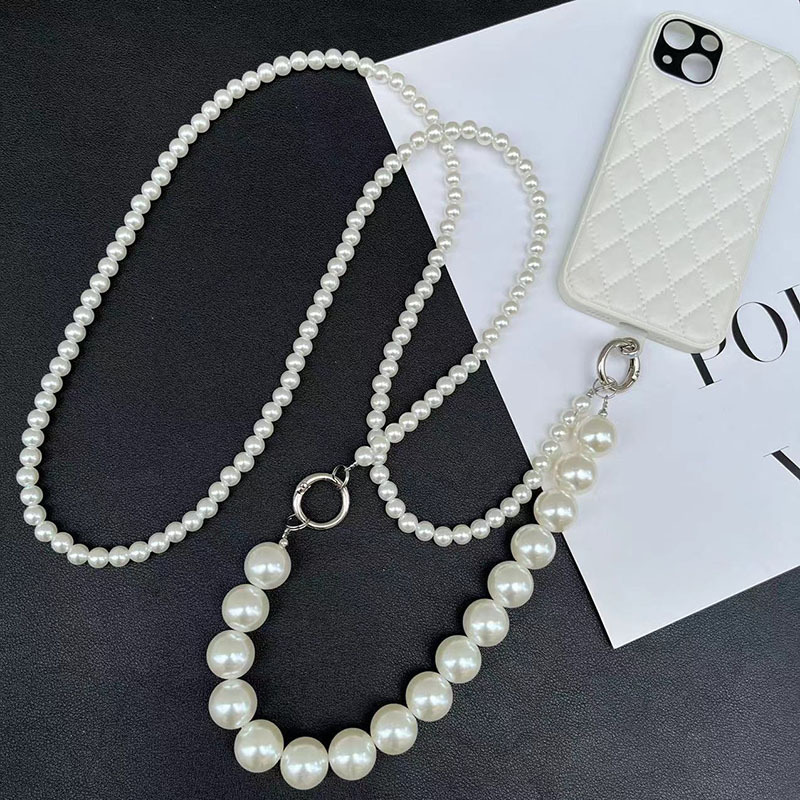 ABS-Kunststoff-Perlen Handys Tragegurt, mit Zinklegierung, rund, handgemacht, Anti-Skidding & für Frau, weiß, pearl size 8mm, 18mm, Länge ca. 140 cm, verkauft von setzen