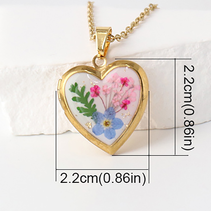 304 Edelstahl Medaillon-Halskette, mit Getrocknete Blumen & Harz, kann sich öffnen und in etwas & verschiedene Muster für Wahl & für Frau, goldfarben, Länge ca. 45 cm, 6PCs/Tasche, verkauft von Tasche