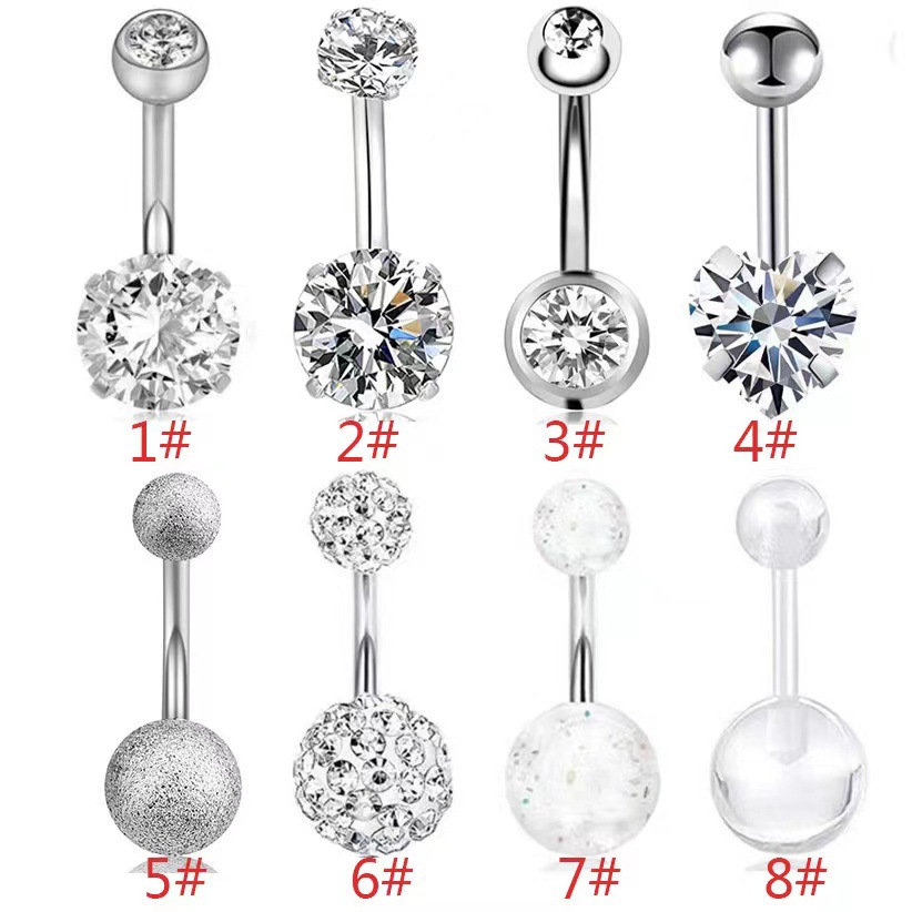 304 Edelstahl Bauchnabelpiercing, 8 Stück & unisex & Micro pave Zirkonia & mit Strass, originale Farbe, 1.60x10mm, verkauft von setzen