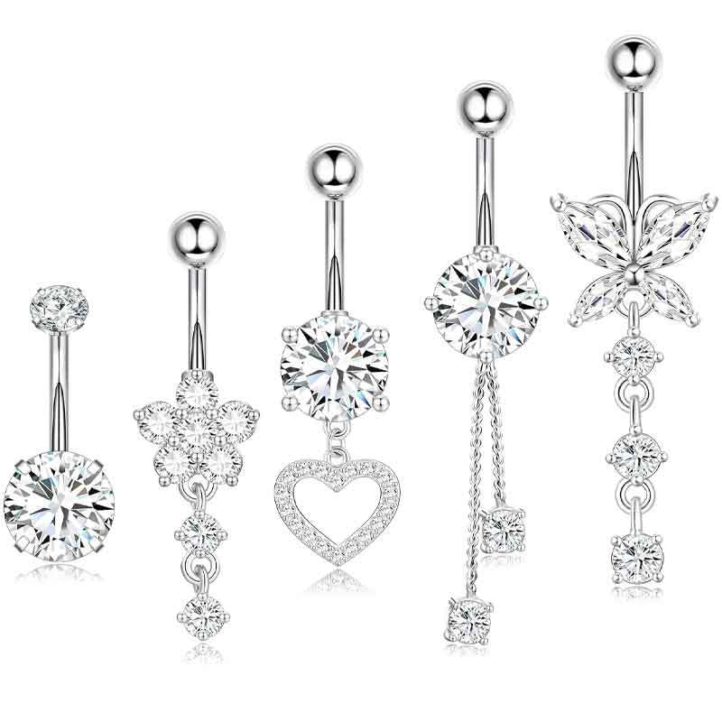 304 Edelstahl Bauchnabelpiercing, mit Messing, plattiert, unisex & verschiedene Stile für Wahl & Micro pave Zirkonia, 1.60x10x5mm, verkauft von PC