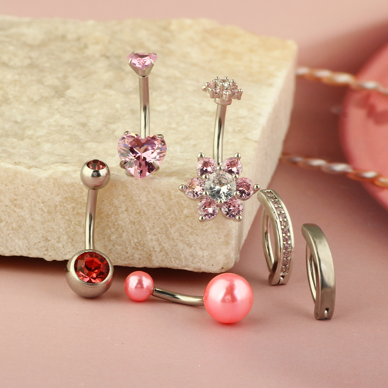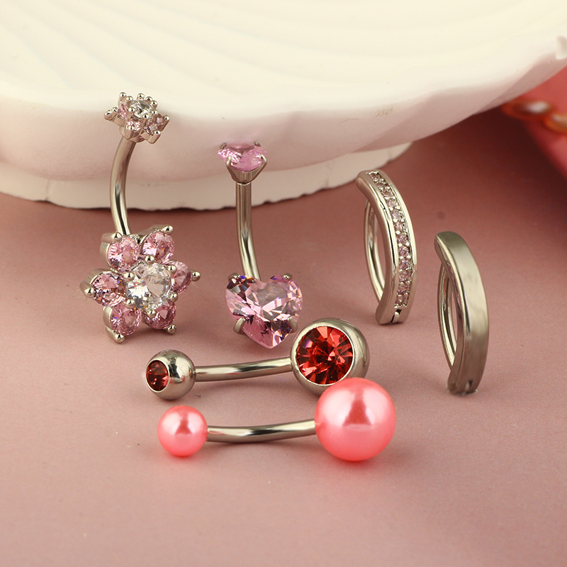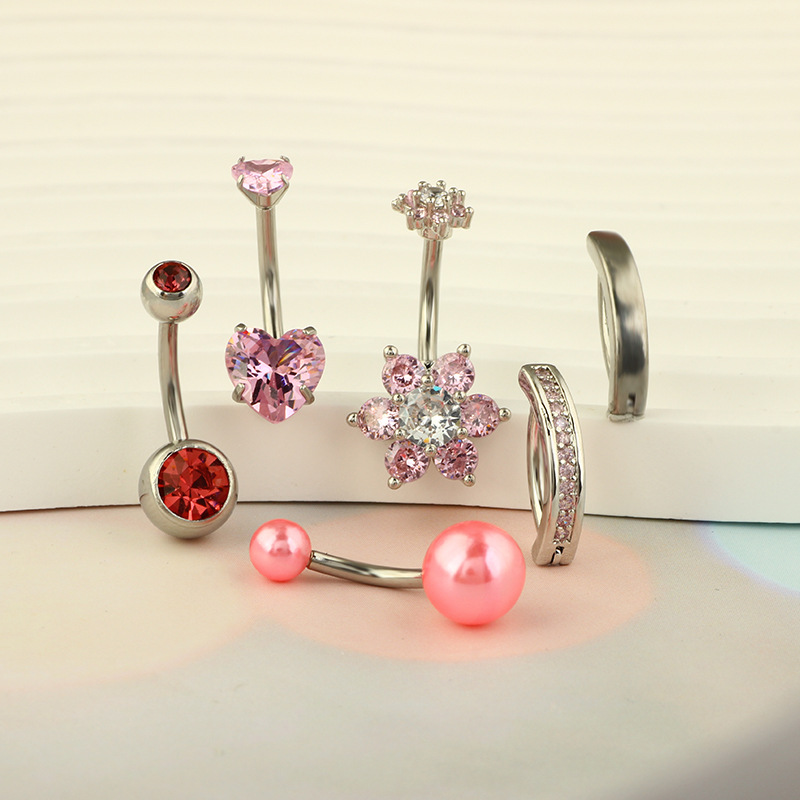 304 Edelstahl Bauchnabelpiercing, mit Kunststoff Perlen & Messing, plattiert, unisex & verschiedene Stile für Wahl & Micro pave Zirkonia, 1.60x10x5mm, verkauft von PC