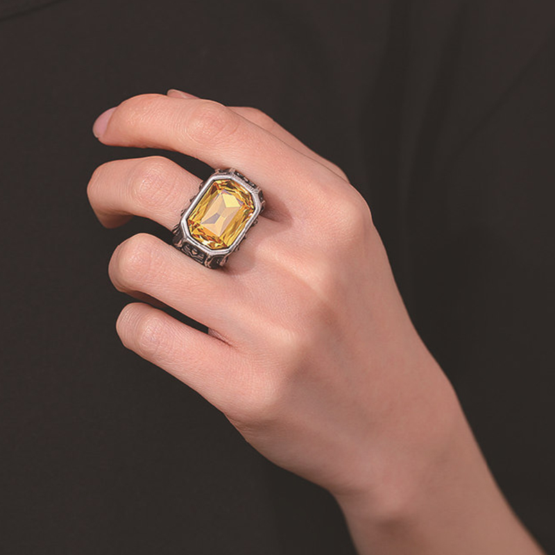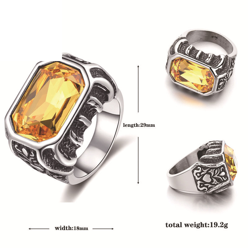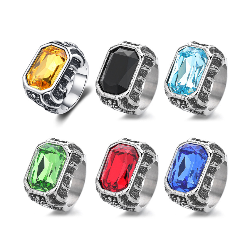 304 Edelstahl Fingerring, mit Glas, Geometrisches Muster, verschiedene Größen vorhanden & für den Menschen & Schwärzen, keine, Größe:7-13, verkauft von PC
