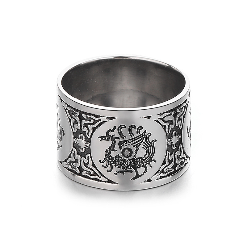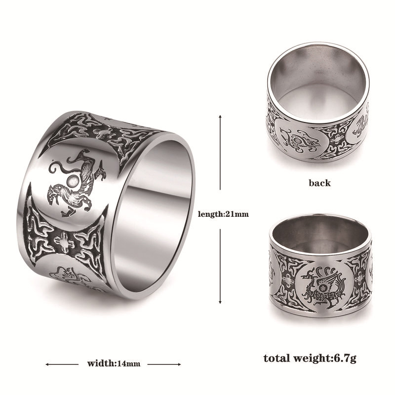 Edelstahl Ringe, 304 Edelstahl, mit Naturstein, Dinosaurier, silberfarben plattiert, Modeschmuck & verschiedenen Materialien für die Wahl, keine, verkauft von PC