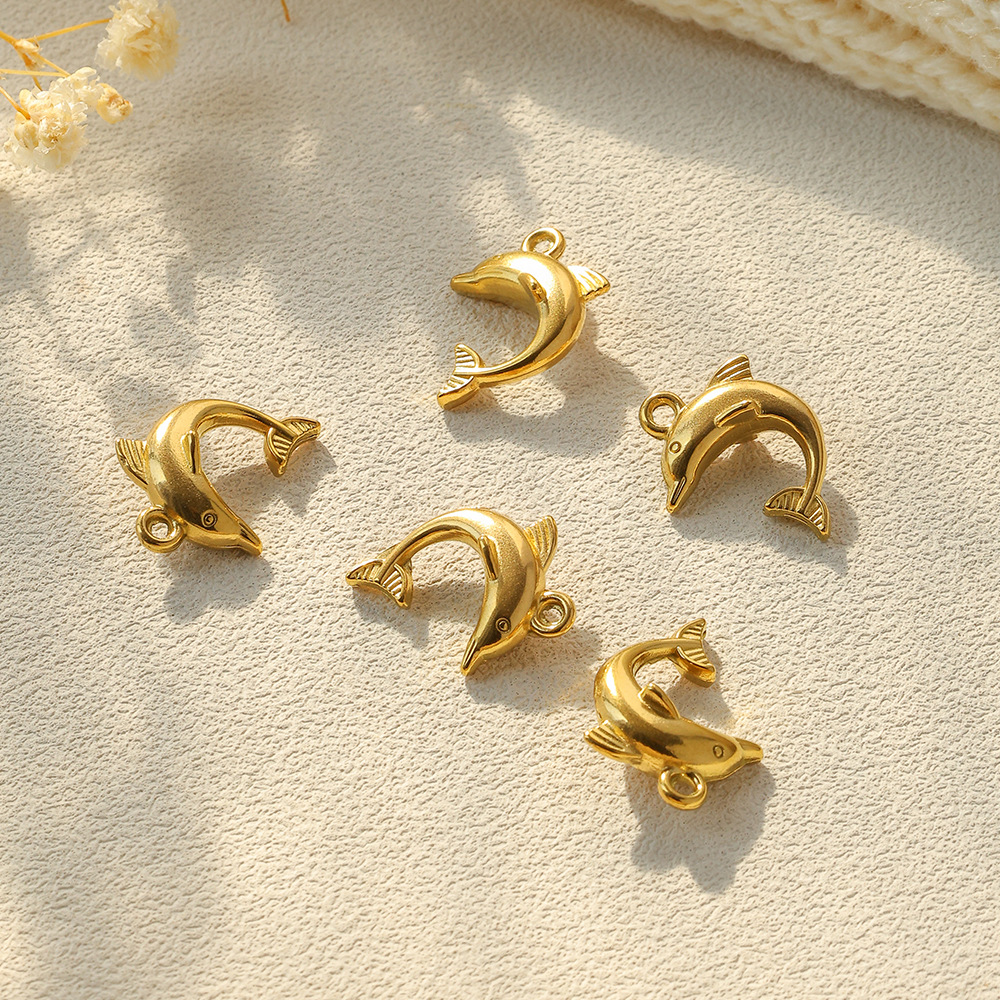 Edelstahl Tieranhänger, 304 Edelstahl, Dolphin, goldfarben plattiert, DIY, 10PCs/Tasche, verkauft von Tasche