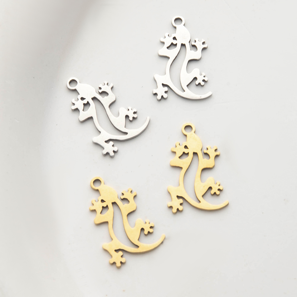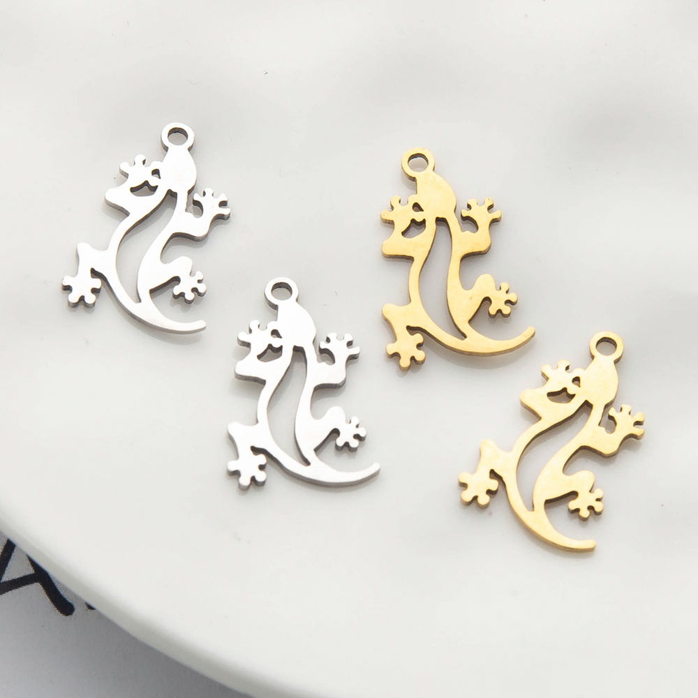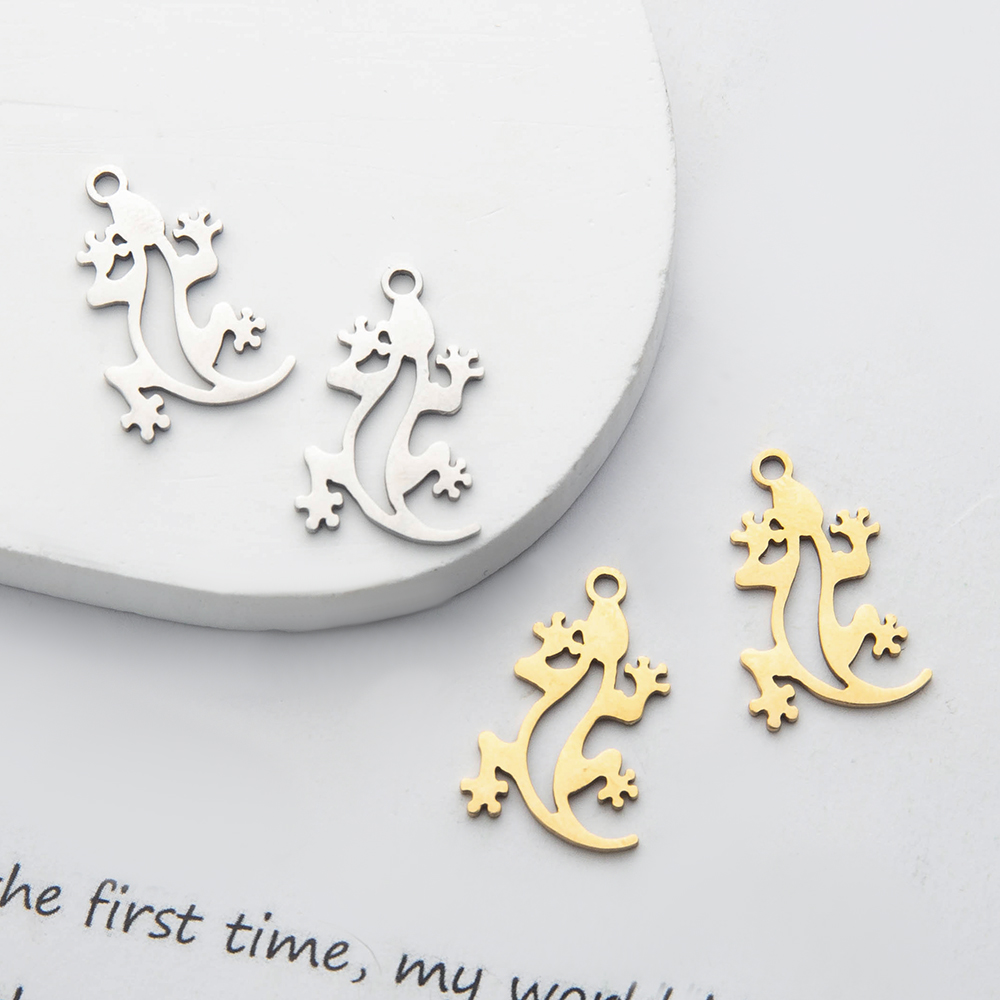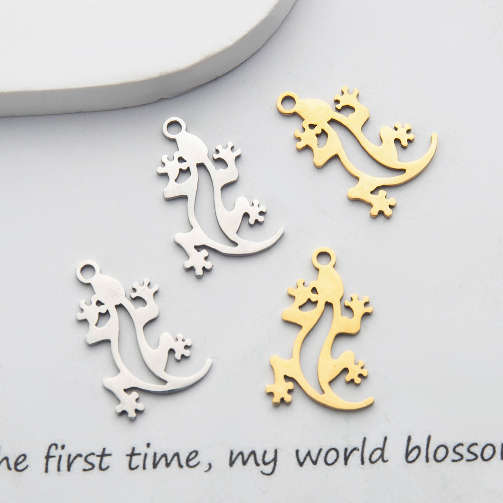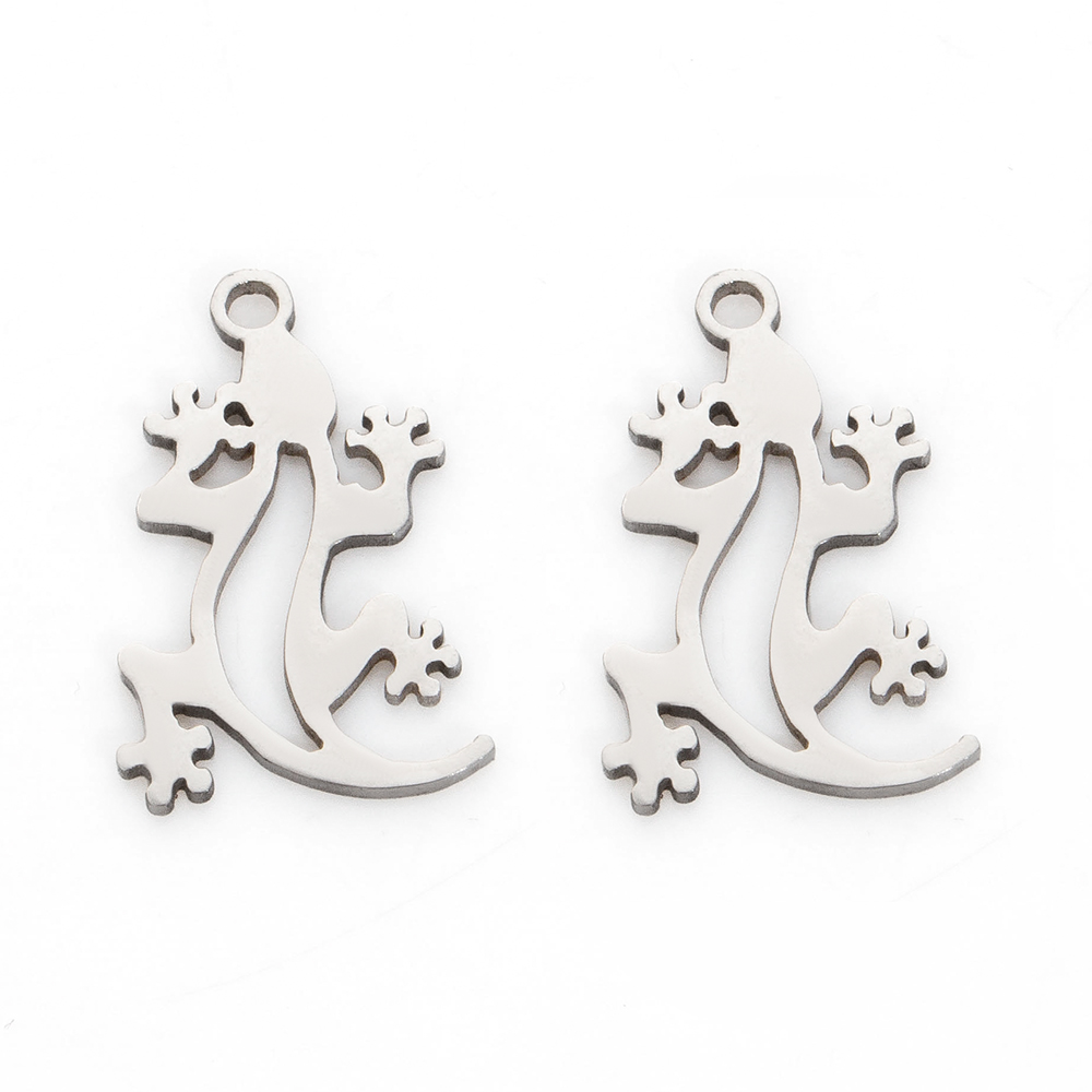 Edelstahl Tieranhänger, 201 Edelstahl, Gecko, plattiert, DIY, keine, 11.60x0.90x18mm, 10PCs/Tasche, verkauft von Tasche