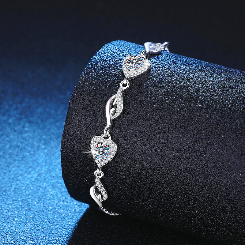 925er Sterling Silber Armband, mit Verlängerungskettchen von 1.2inch, Herz, platiniert, verschiedenen Materialien für die Wahl & für Frau, Länge ca. 6.3 ZollInch, verkauft von PC