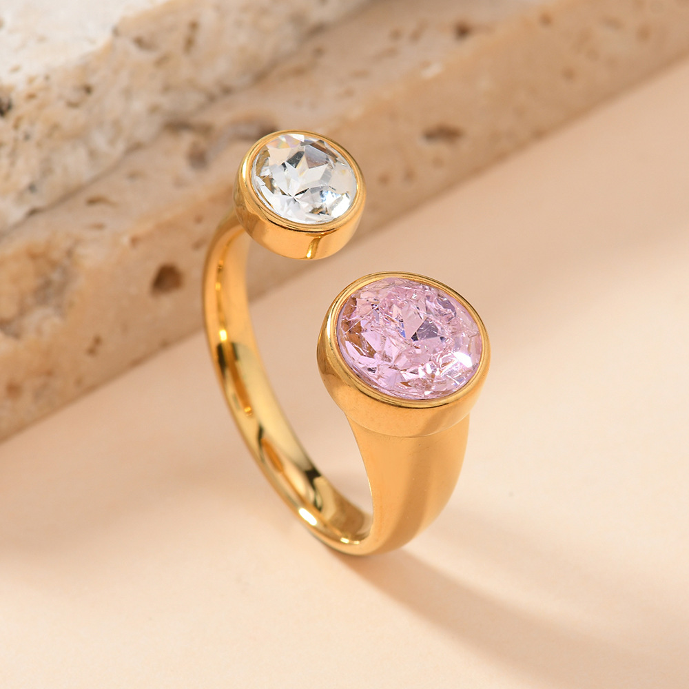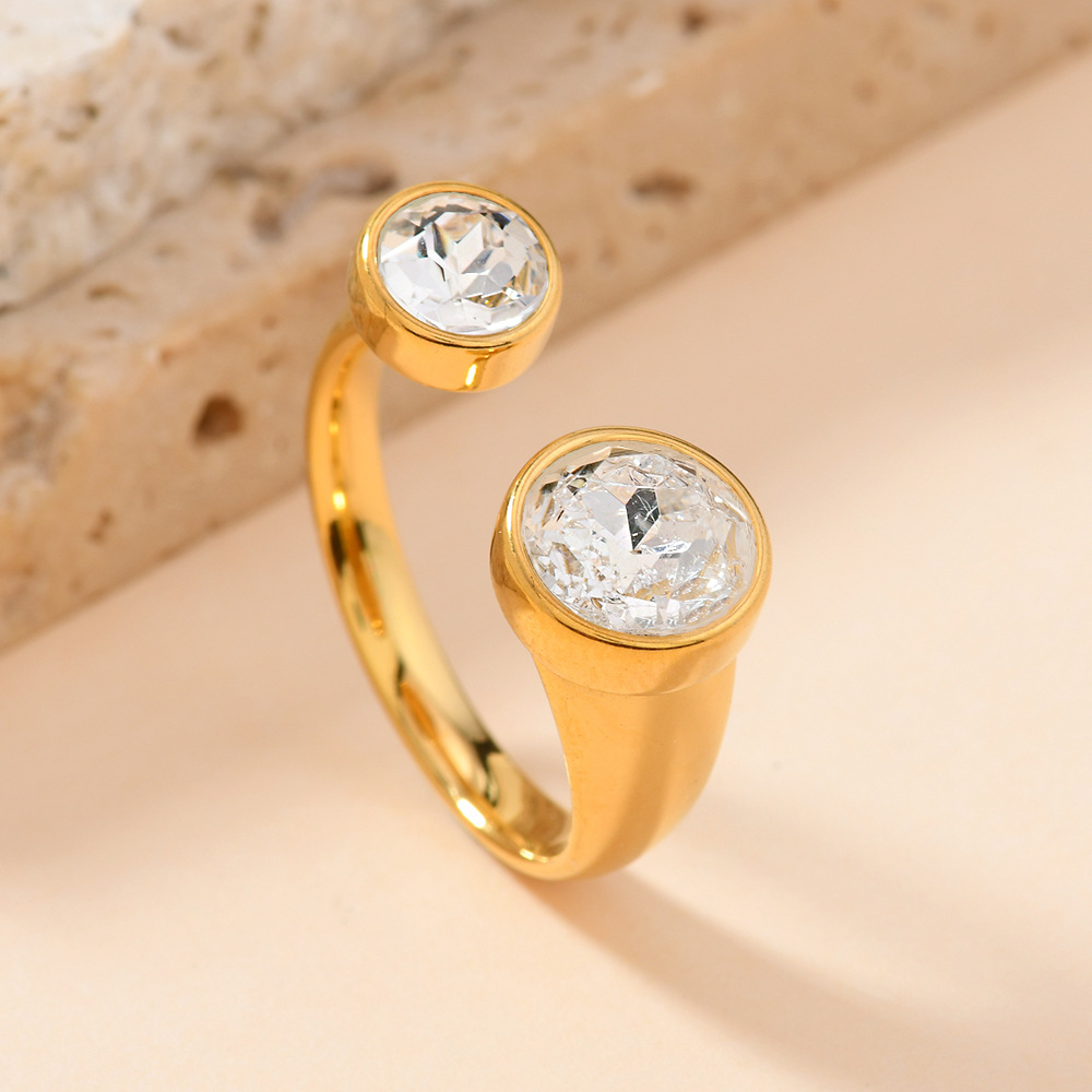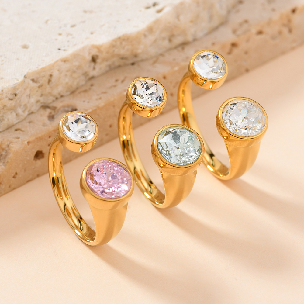 Zirkonia Edelstahl-Finger- Ring, 304 Edelstahl, mit kubischer Zirkonia, goldfarben plattiert, Modeschmuck & unisex, keine, verkauft von PC