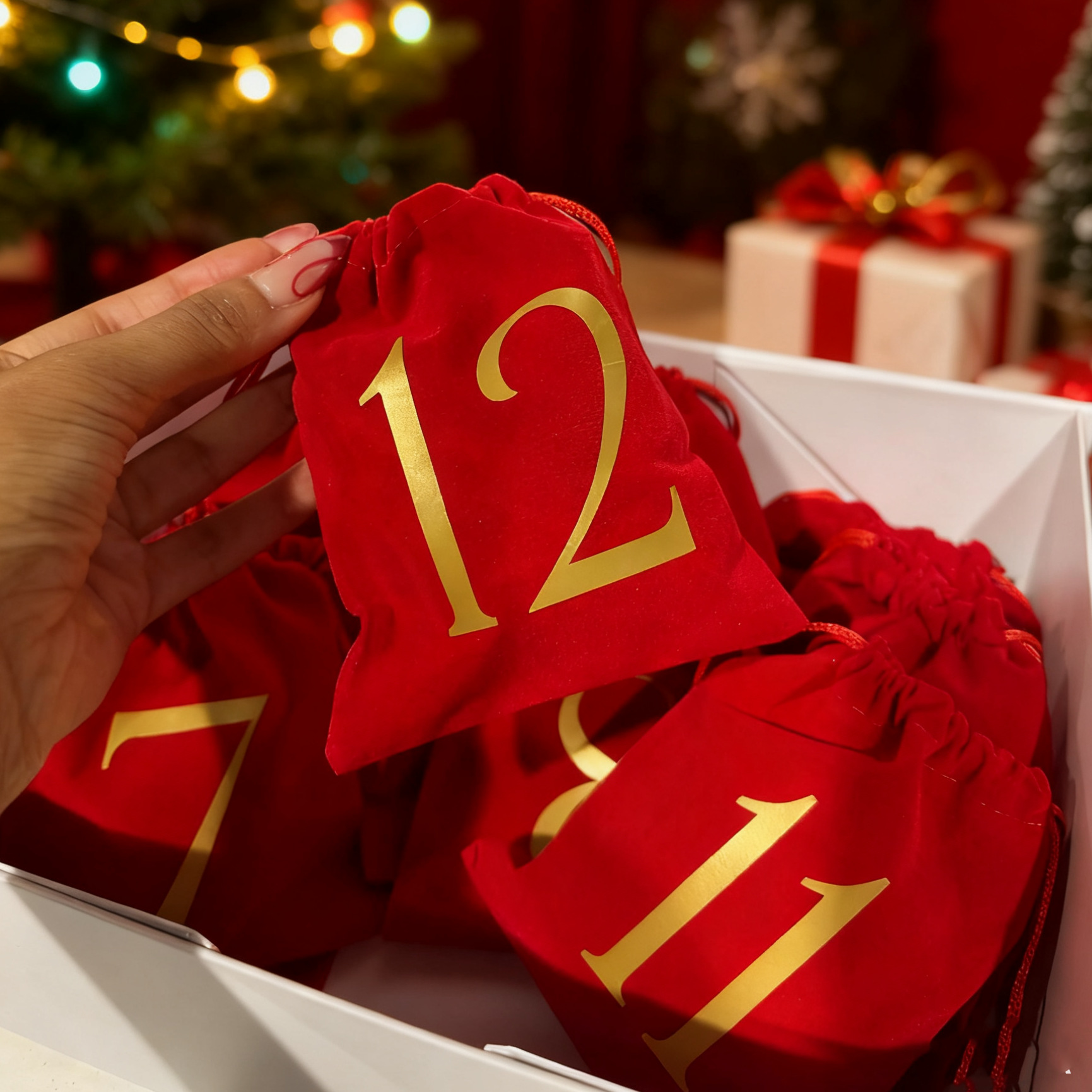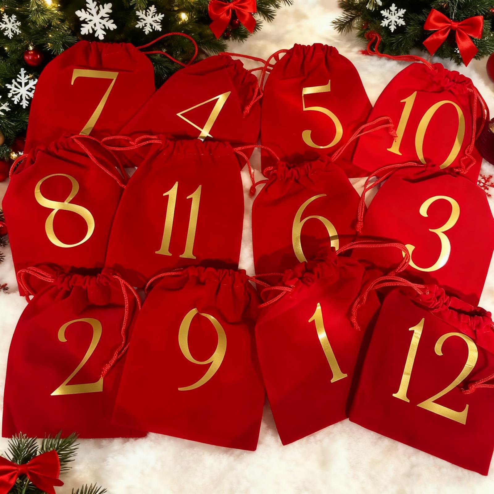 Baumwollsamt Drawstring Tasche, Rechteck, Kunstdruck, Weihnachts-Design & mit einem Muster von Nummer, rot, 130x180mm, 12PCs/setzen, verkauft von setzen