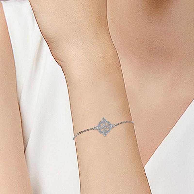Befestiger Zirkonia Messing Armband, mit Edelstahl Kette, silberfarben plattiert, einstellbar & Oval-Kette & Micro pave Zirkonia & für Frau, 16x16mm, verkauft per ca. 17 cm Strang