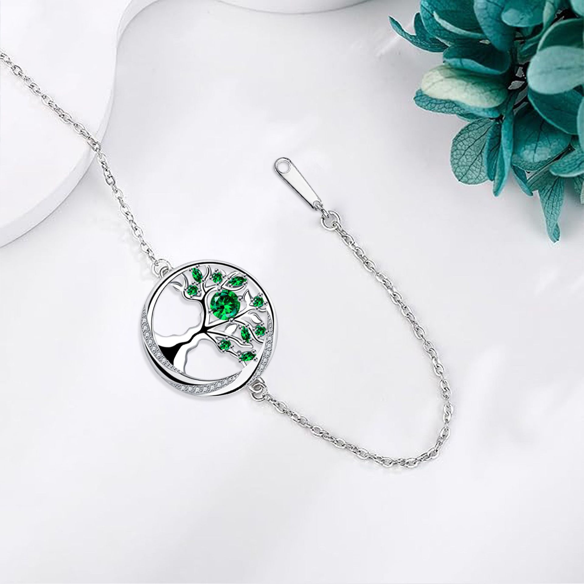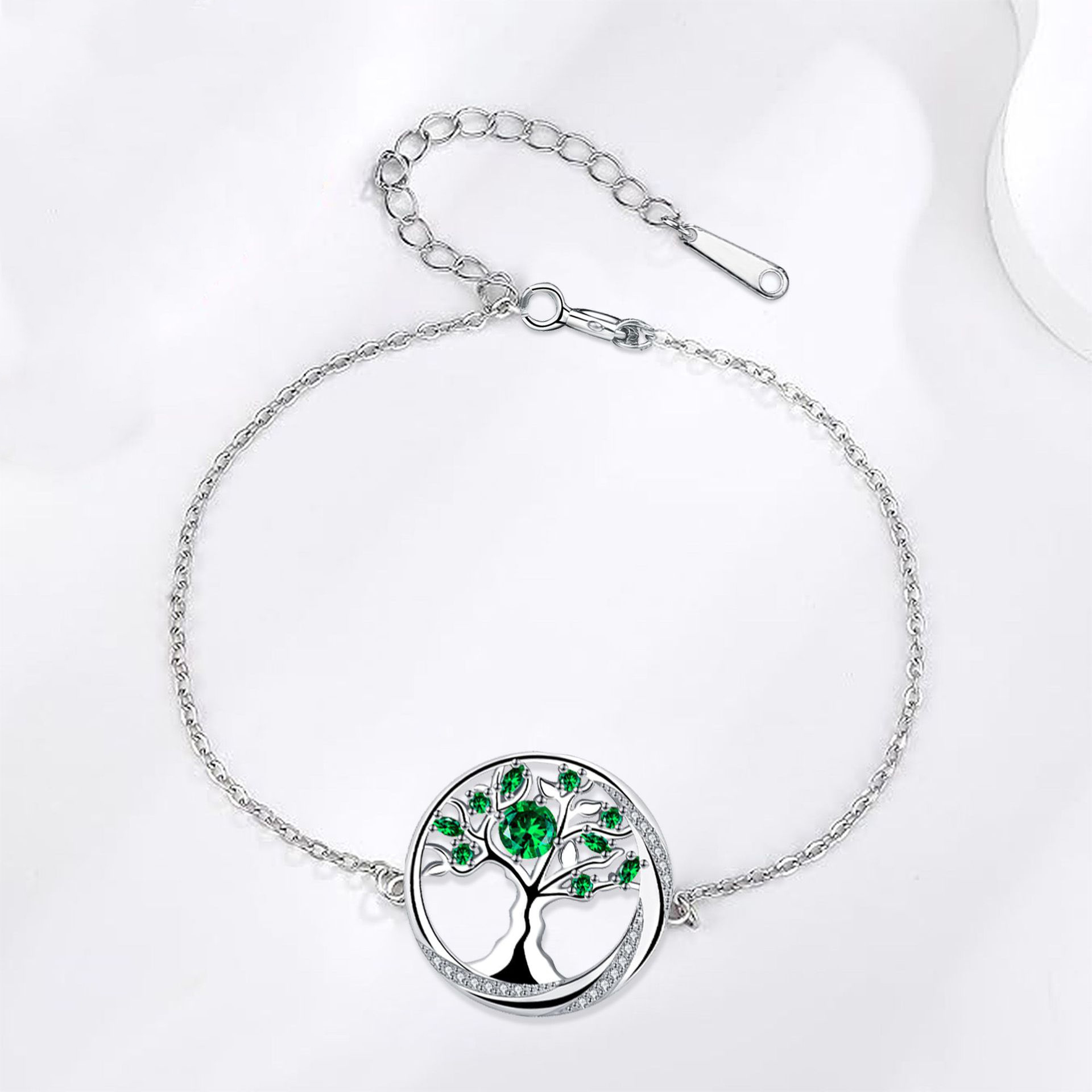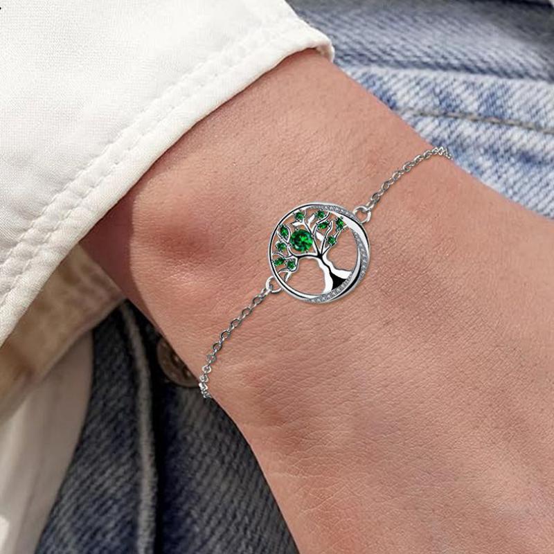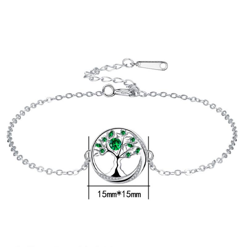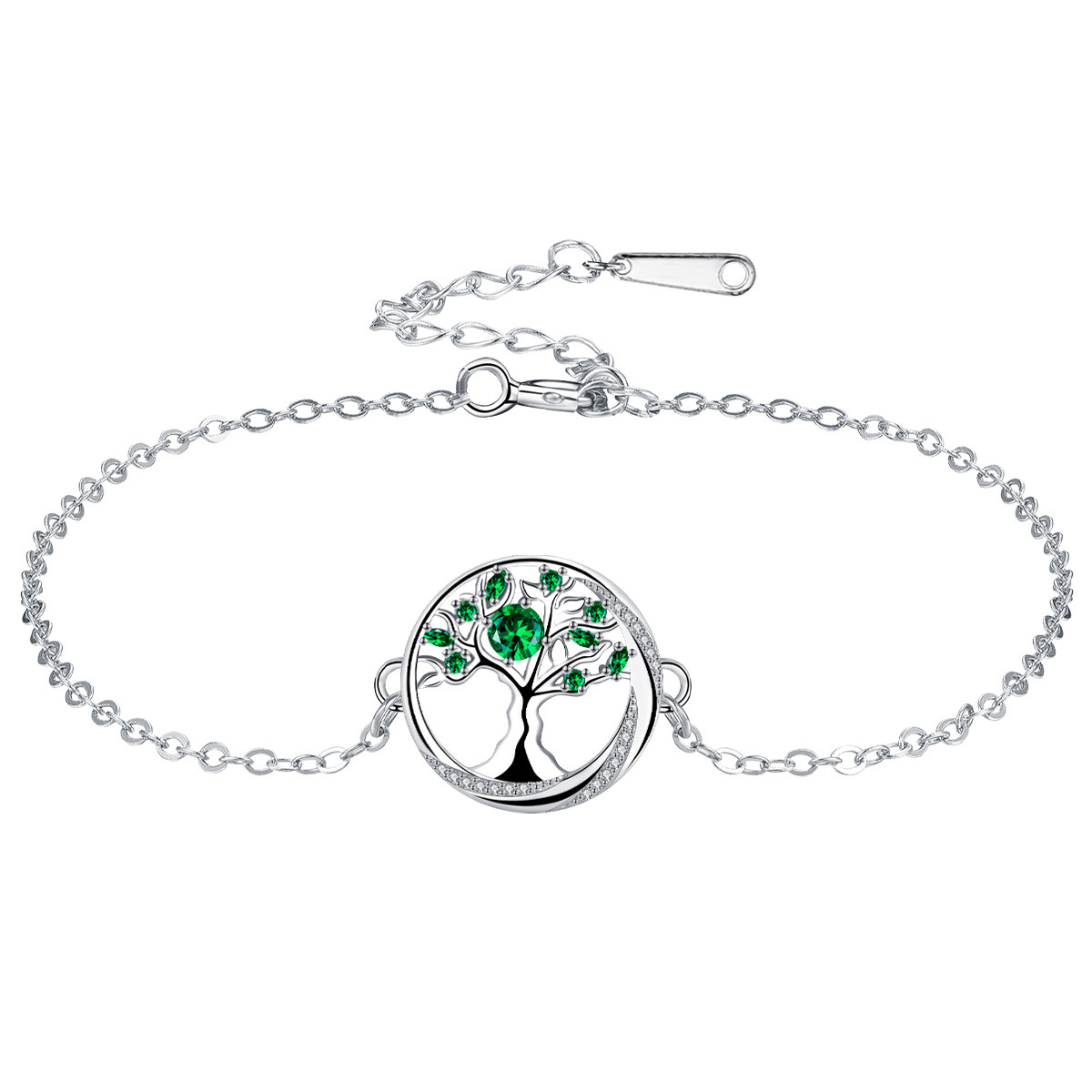 Befestiger Zirkonia Messing Armband, mit Edelstahl Kette, Baum des Lebens, silberfarben plattiert, einstellbar & Oval-Kette & Micro pave Zirkonia & für Frau, grün, 15x15mm, verkauft per ca. 17 cm Strang