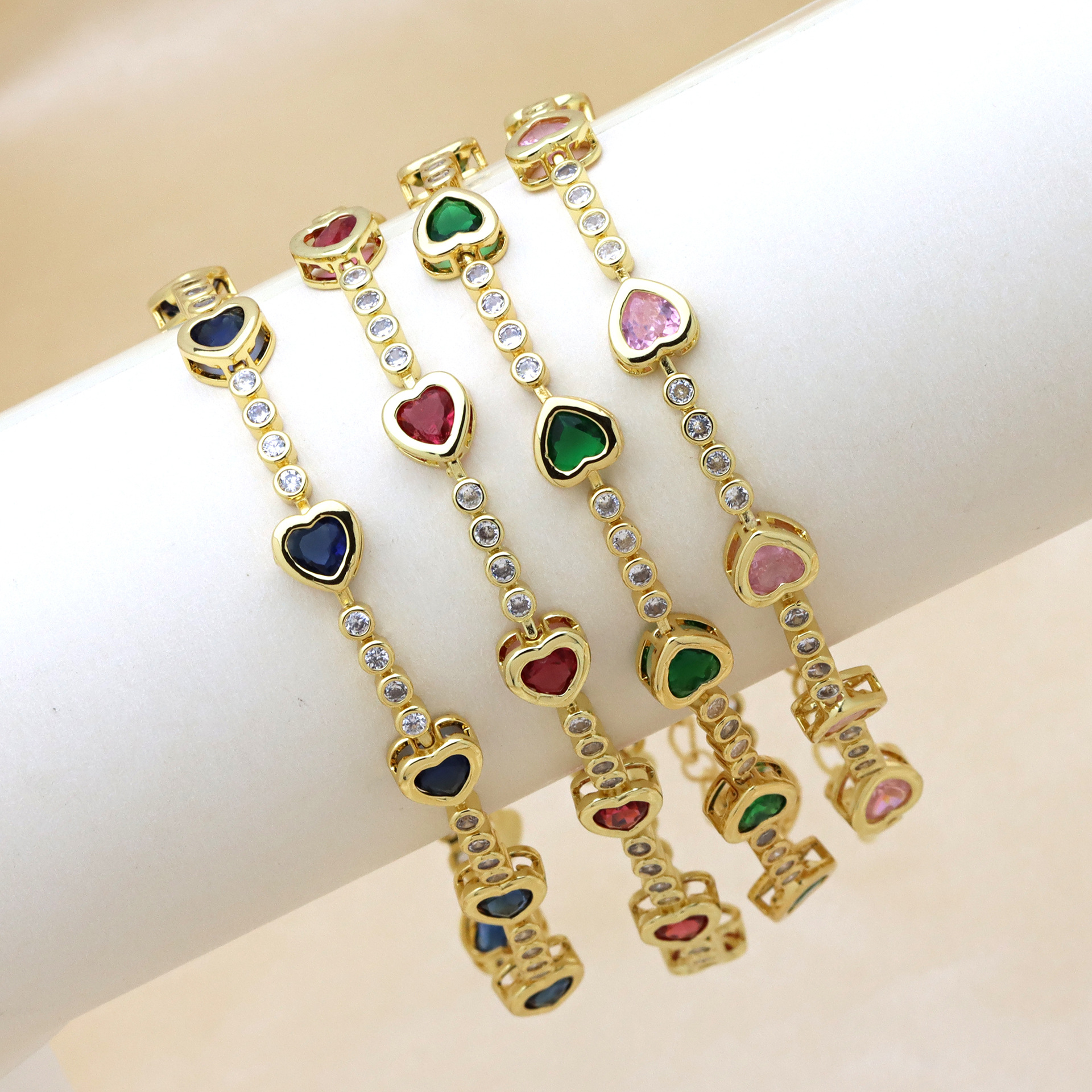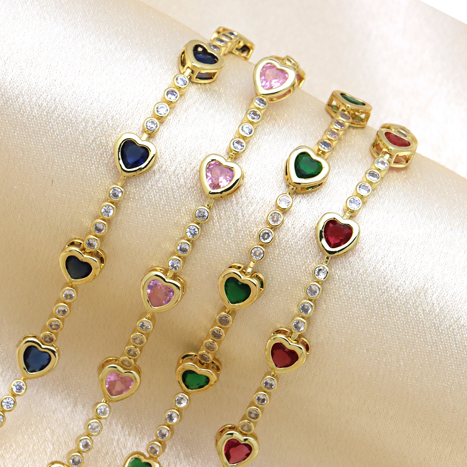 Befestiger Zirkonia Messing Armband, Herz, 18K vergoldet, verschiedene Stile für Wahl & Micro pave Zirkonia & für Frau, verkauft von PC