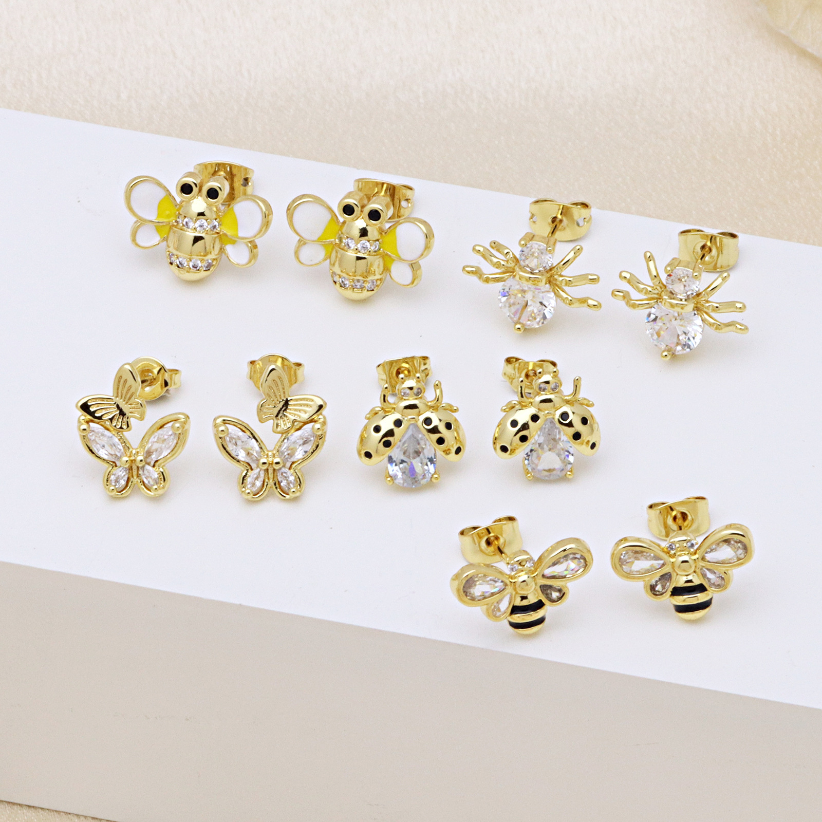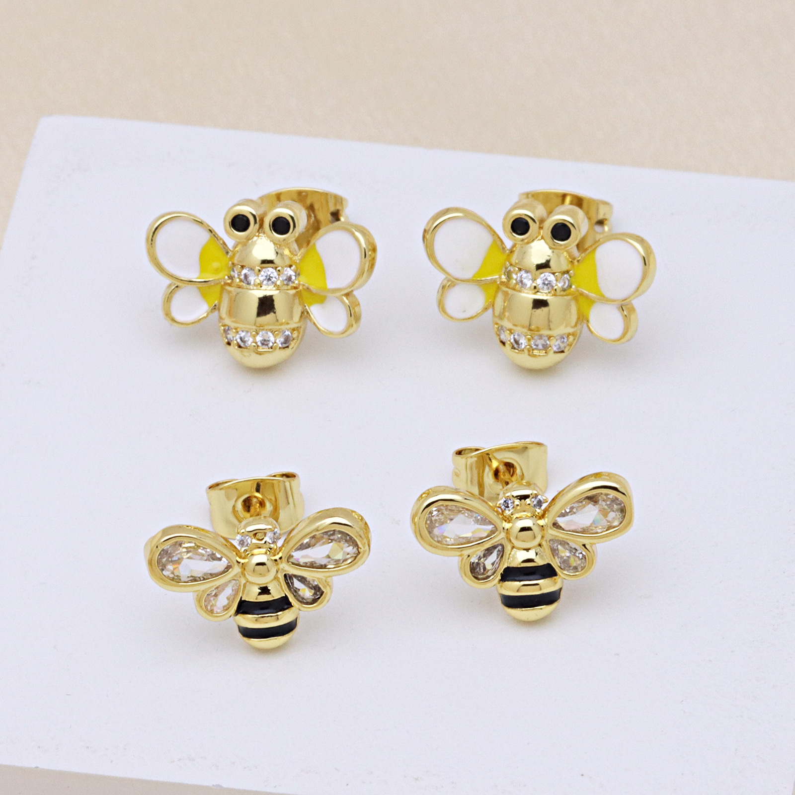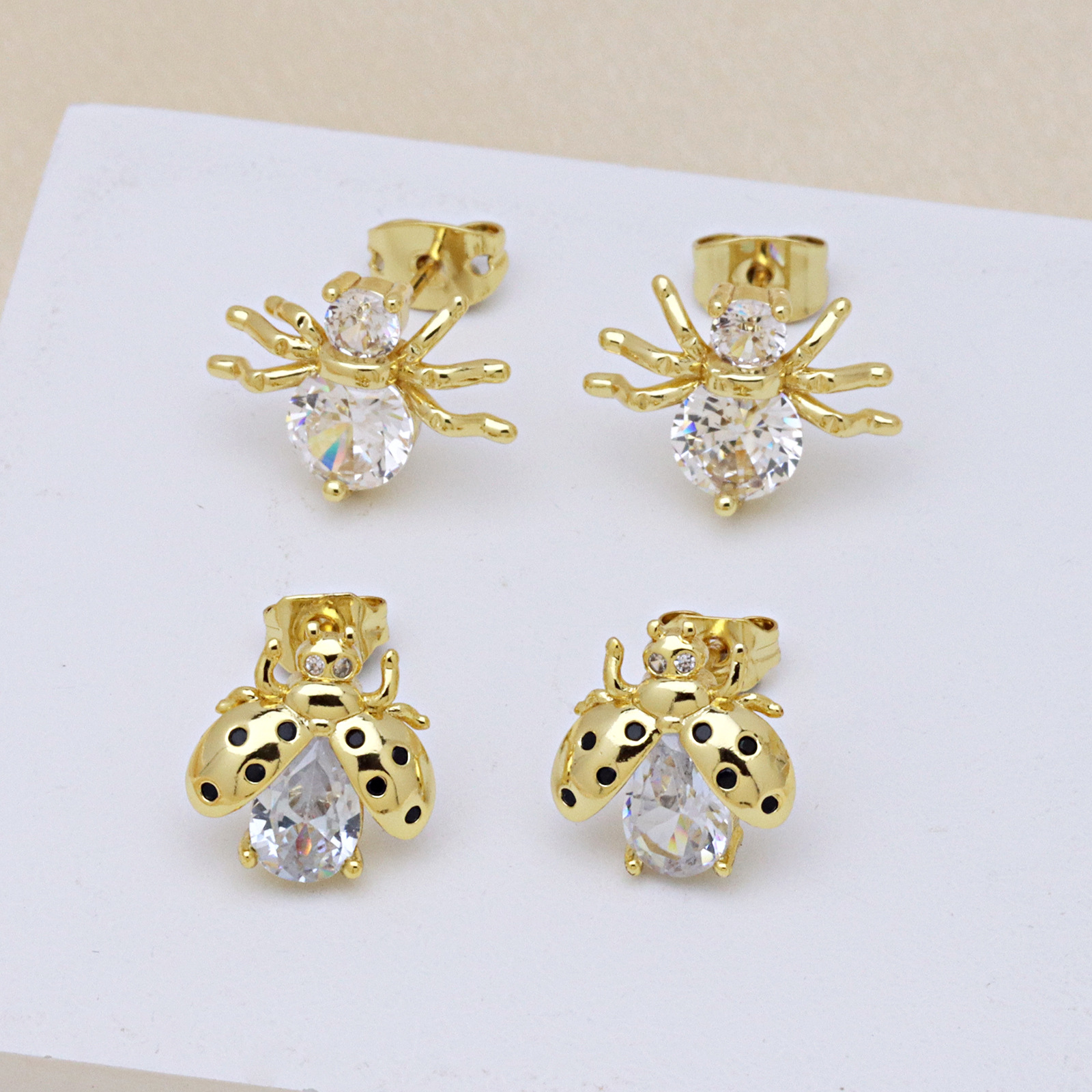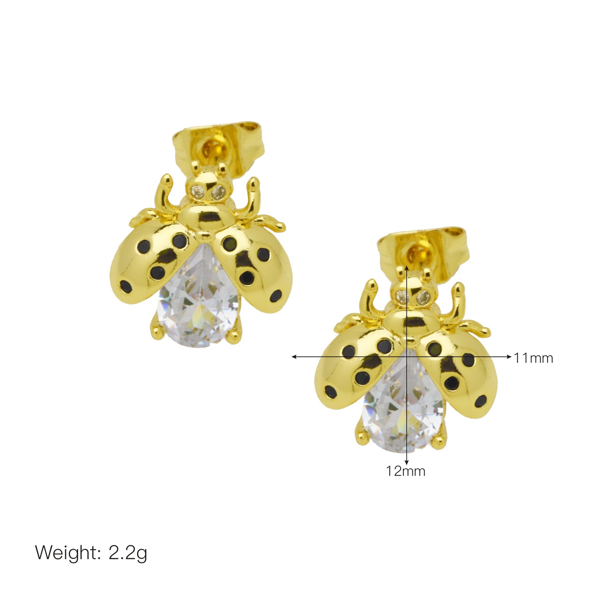 Befestiger Zirkonia Messing Ohrring, Insekt, goldfarben plattiert, verschiedene Stile für Wahl & für Frau & Emaille & mit kubischem Zirkonia, keine, verkauft von Paar