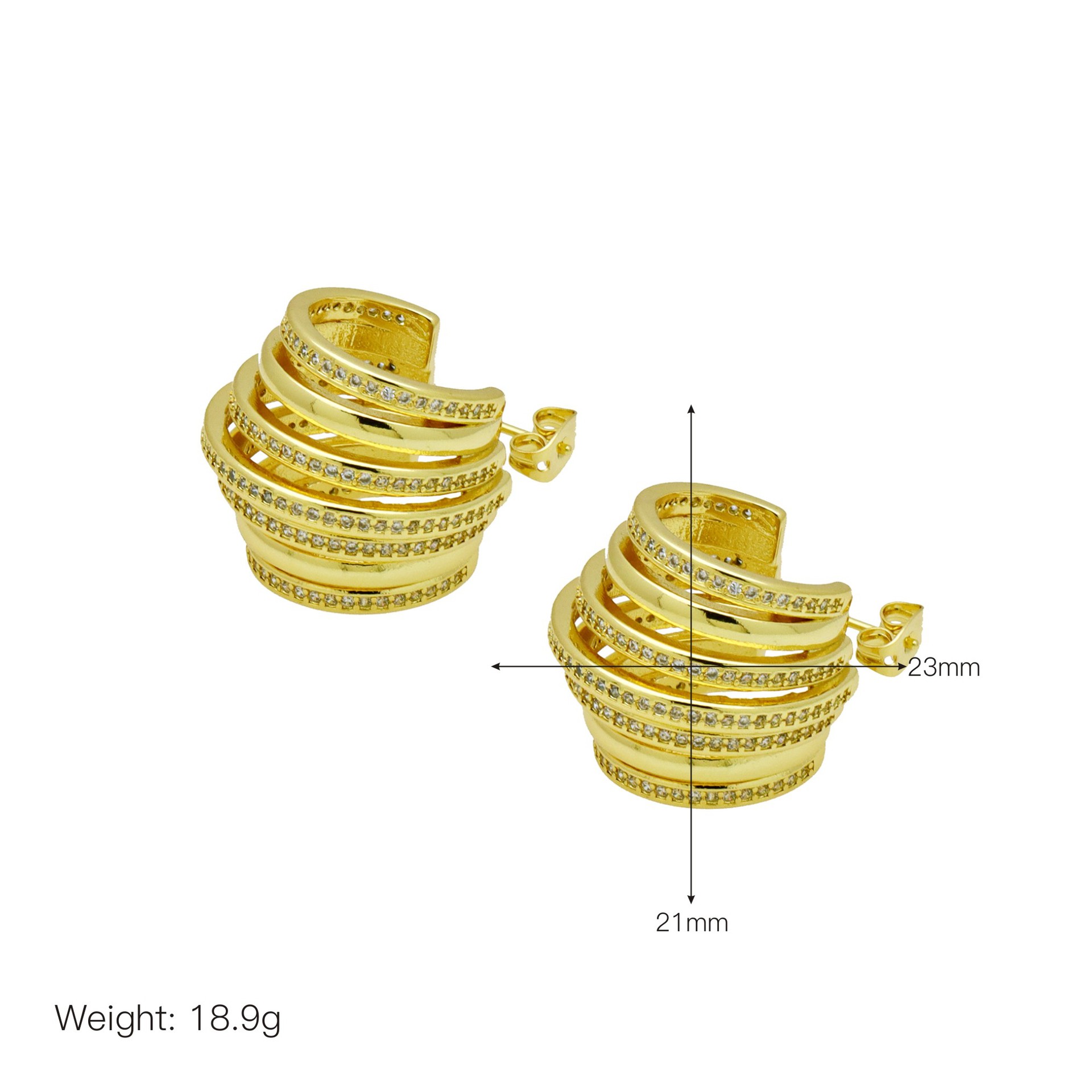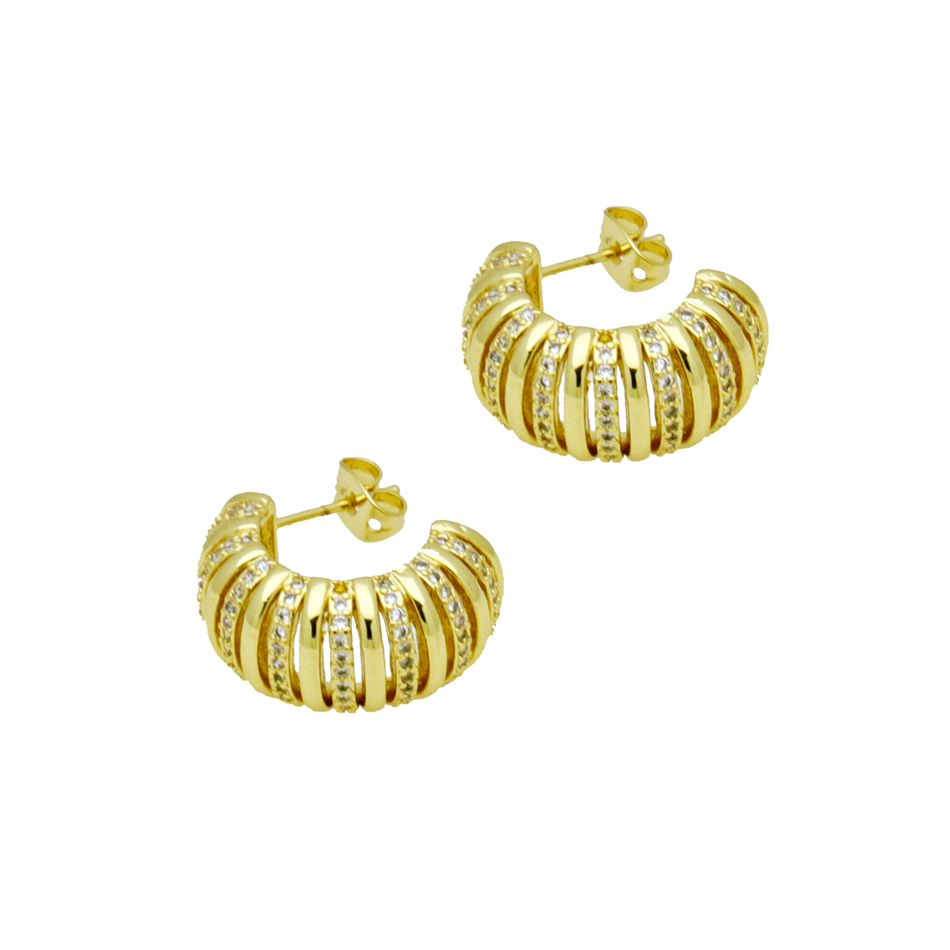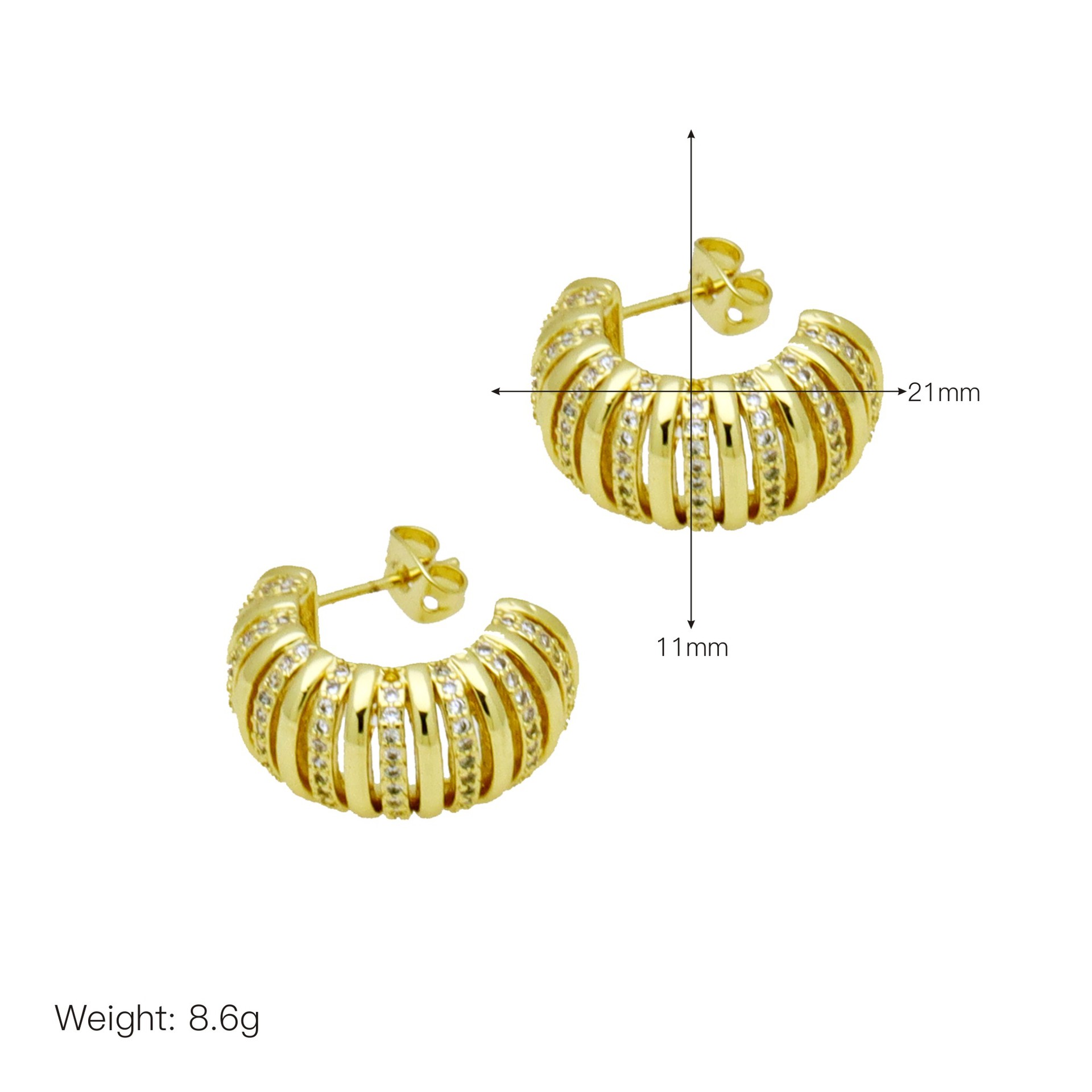 Messing Huggie Ohrreifen, mit kubischer Zirkonia, Druckguss-, für Frau, keine, frei von Nickel, Blei & Kadmium, 20.60x10.76x18.60mm, 10PaarePärchen/Tasche, verkauft von Tasche