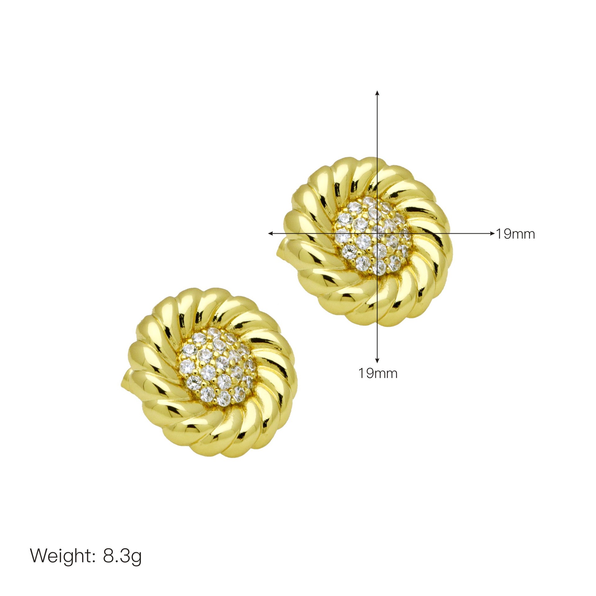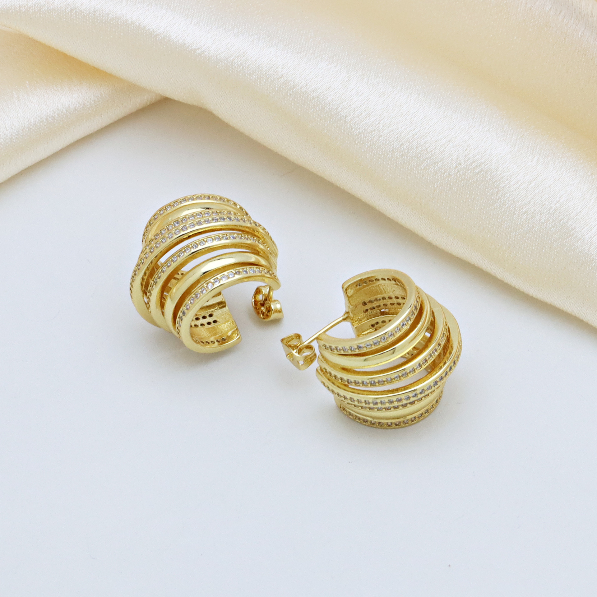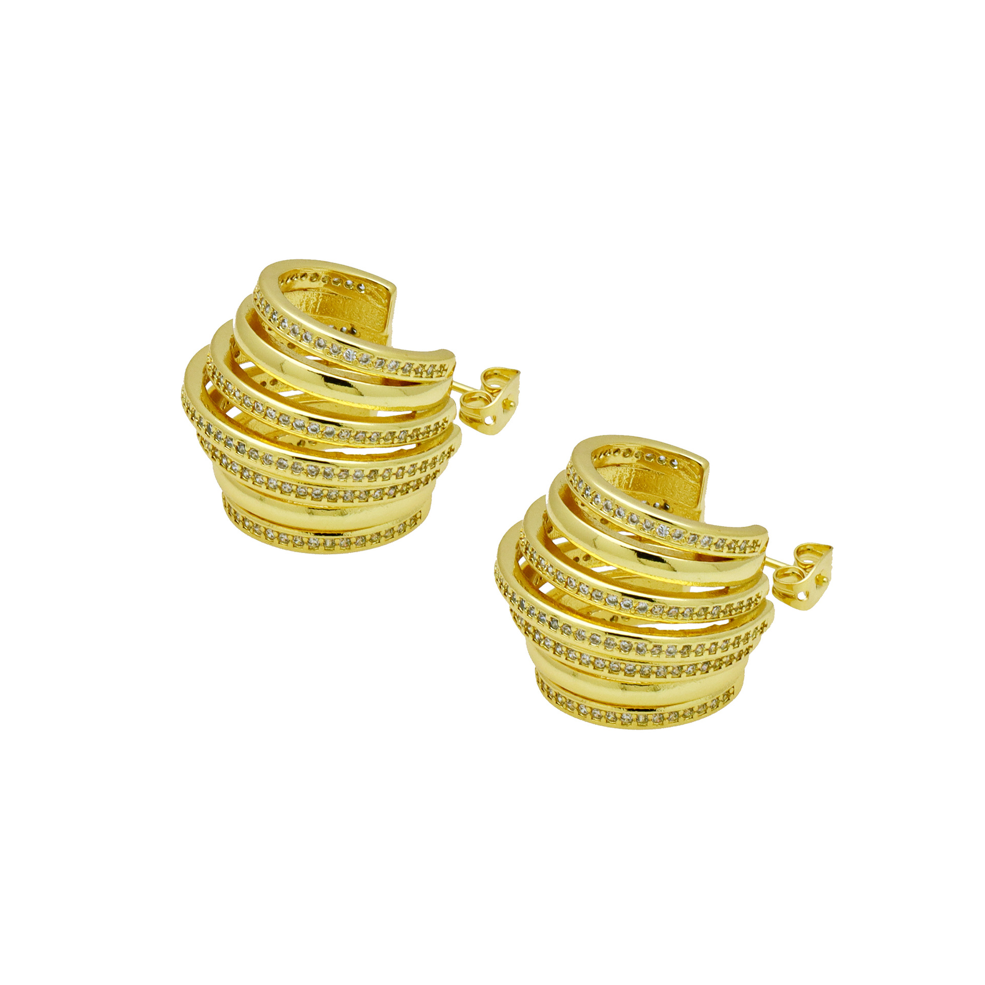 Messing Huggie Ohrreifen, mit kubischer Zirkonia, Druckguss-, für Frau, keine, frei von Nickel, Blei & Kadmium, 20.60x10.76x18.60mm, 10PaarePärchen/Tasche, verkauft von Tasche
