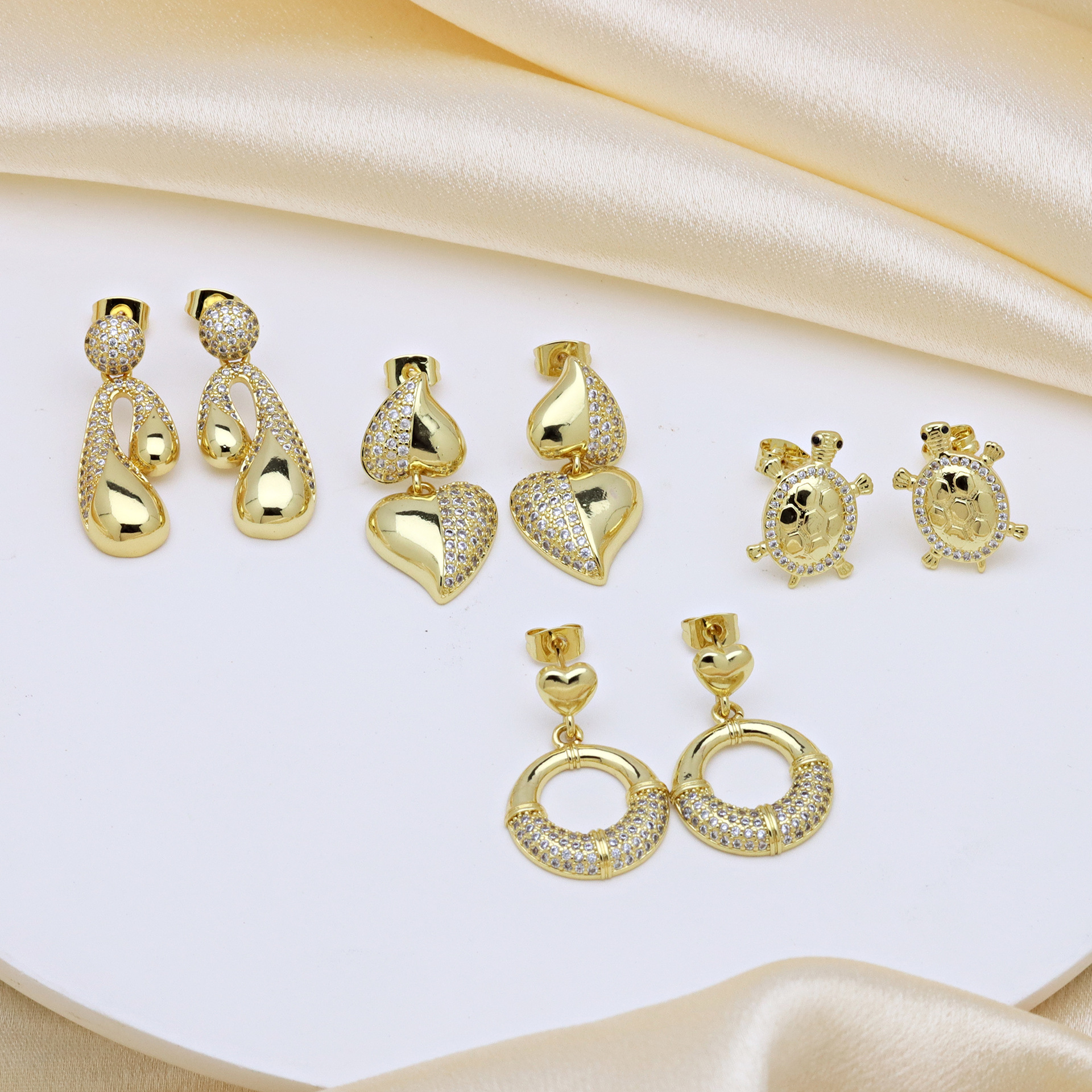 Befestiger Zirkonia Messing Ohrring, goldfarben plattiert, verschiedene Stile für Wahl & Micro pave Zirkonia & für Frau, keine, verkauft von Paar