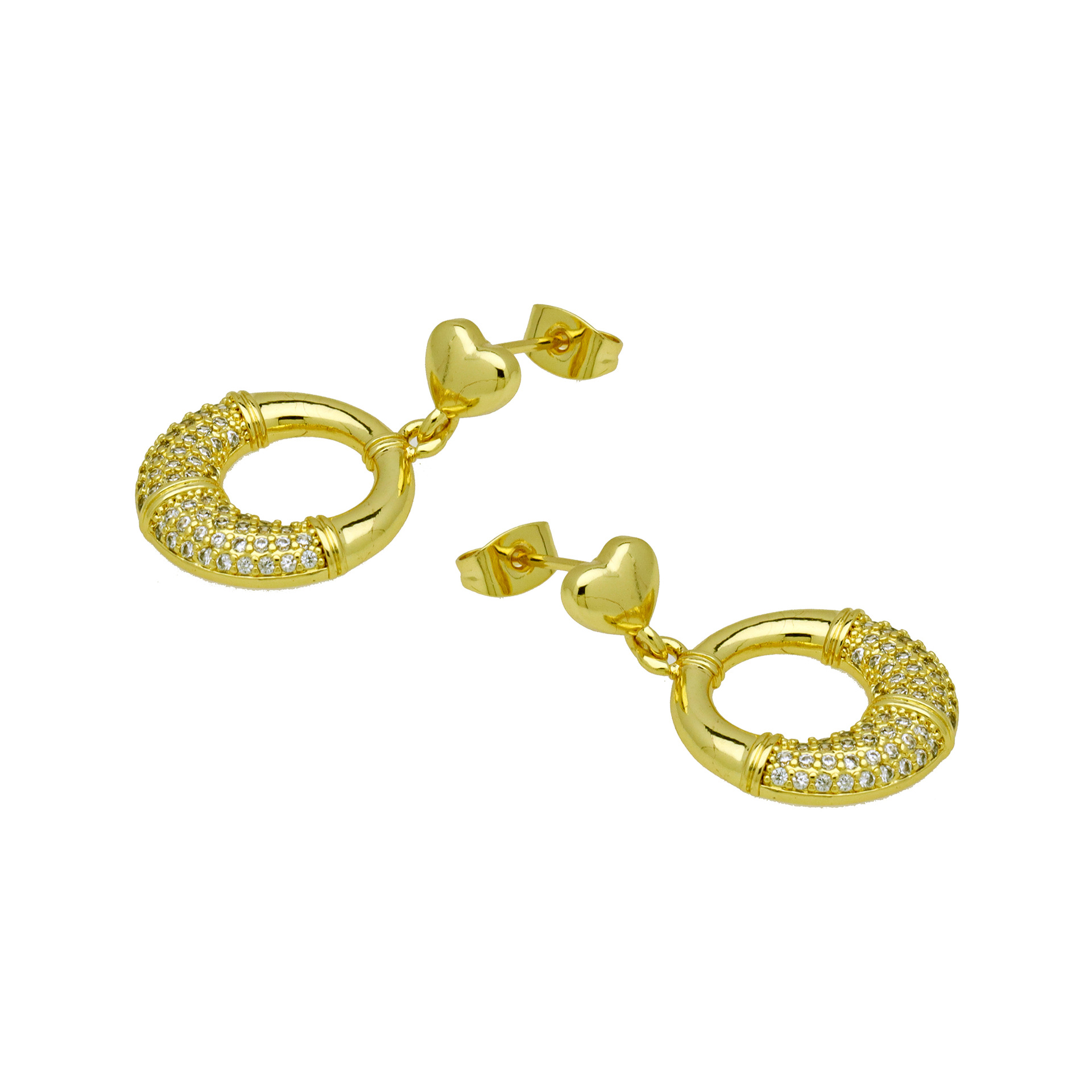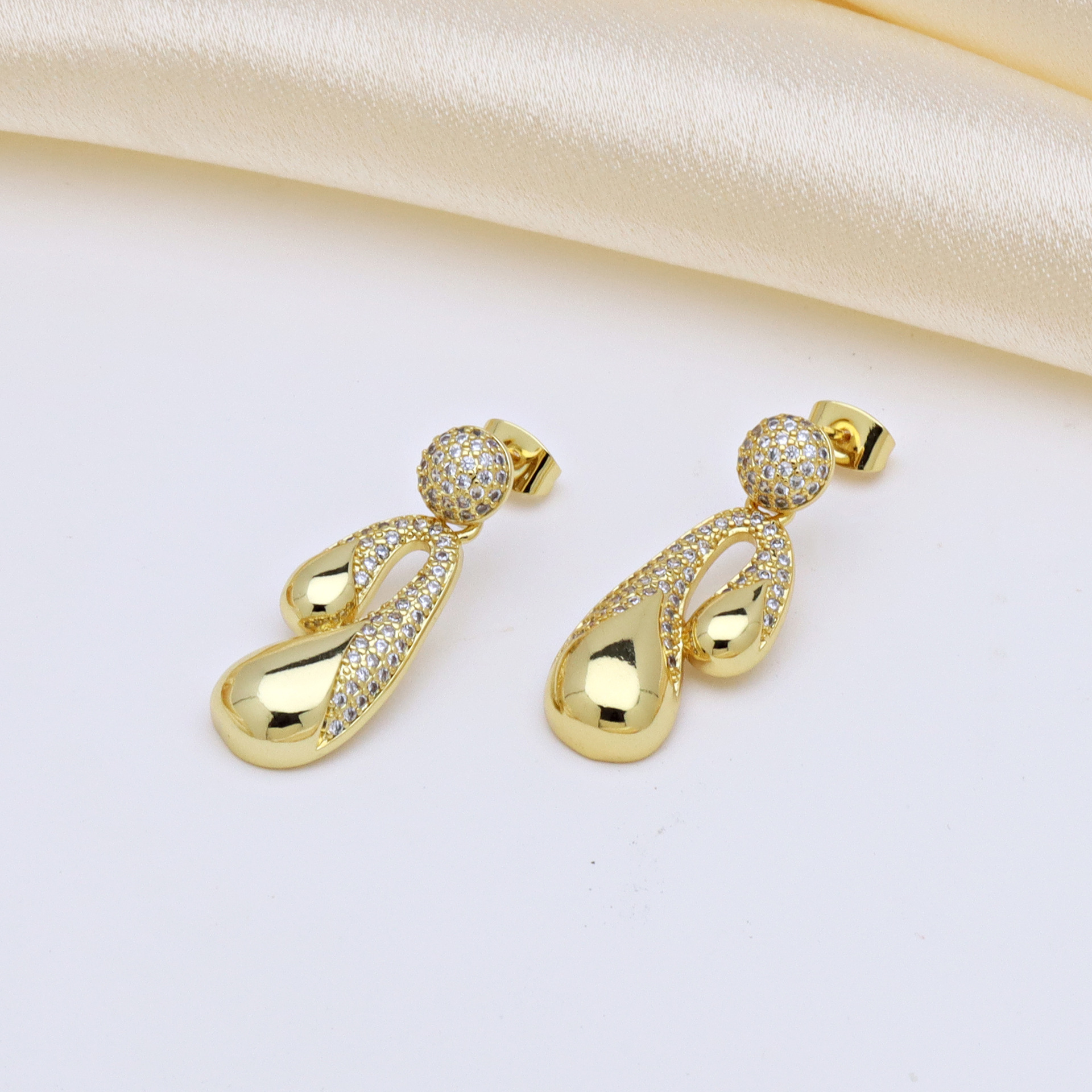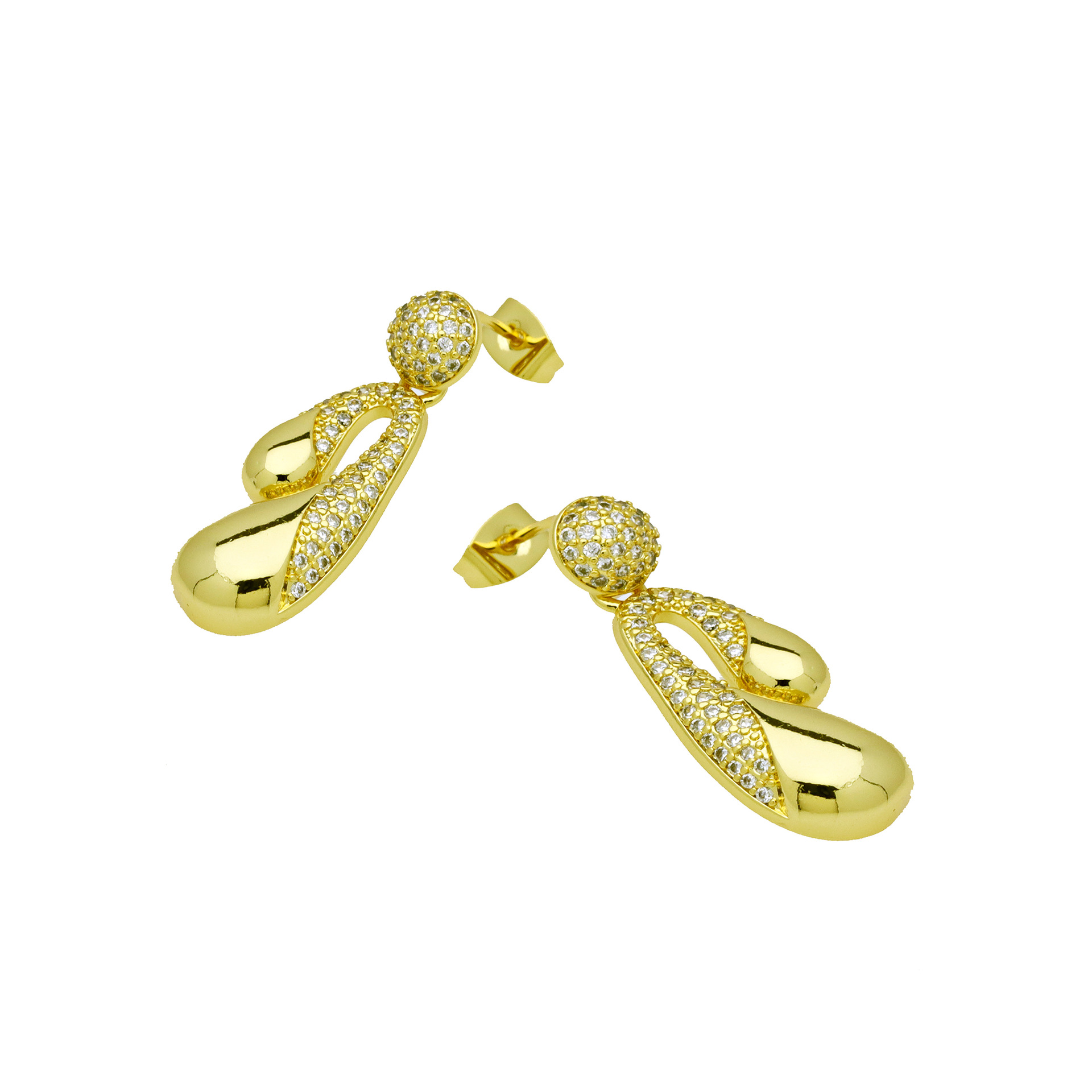 Messing Tropfen Ohrring, Kreisring, plattiert, Micro pave Zirkonia & für Frau, keine, verkauft von Paar