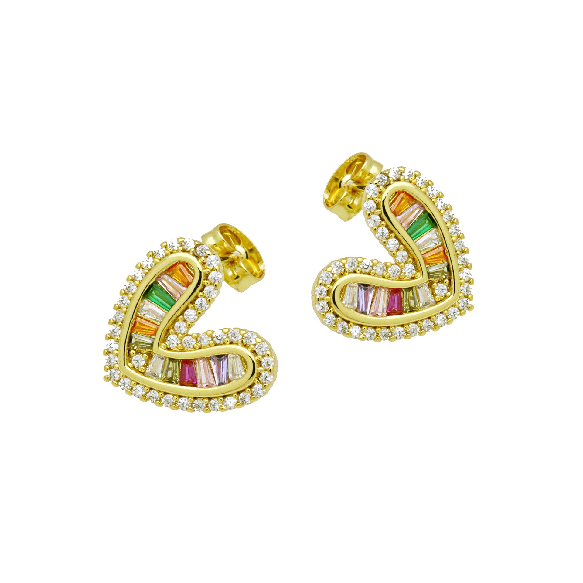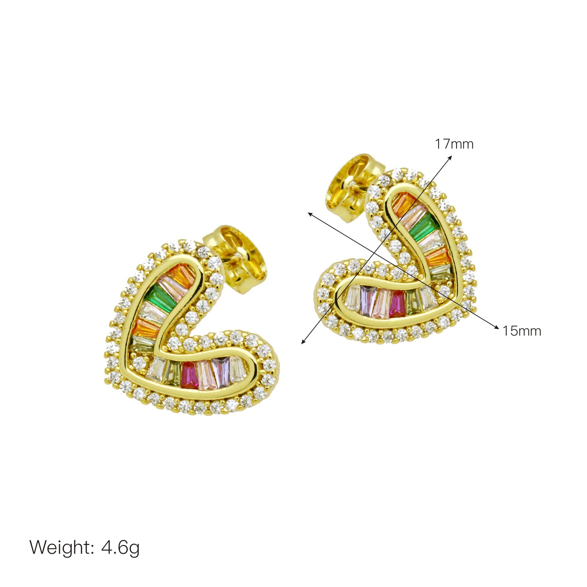 Messing Huggie Ohrreifen, mit kubischer Zirkonia, Druckguss-, für Frau, keine, frei von Nickel, Blei & Kadmium, 20.60x10.76x18.60mm, 10PaarePärchen/Tasche, verkauft von Tasche