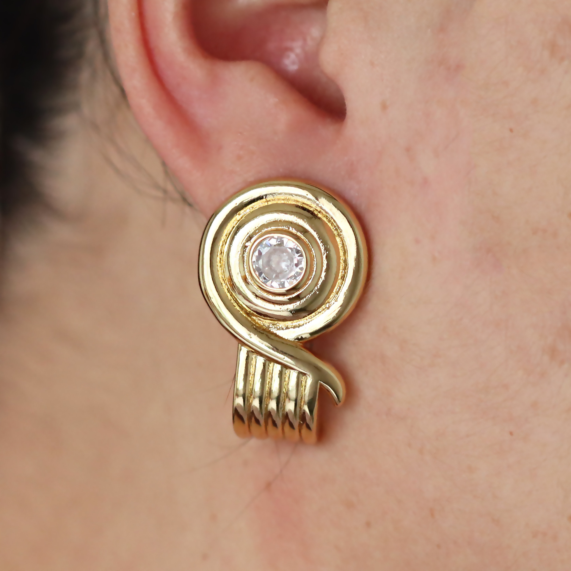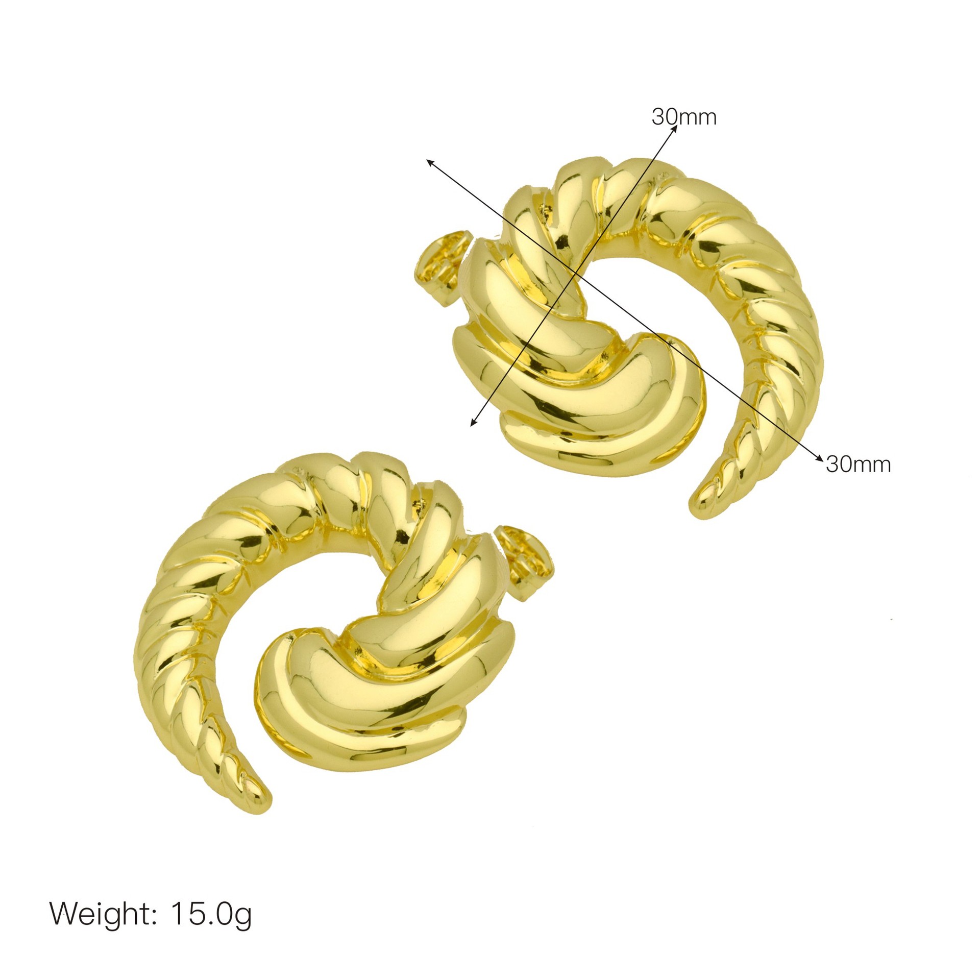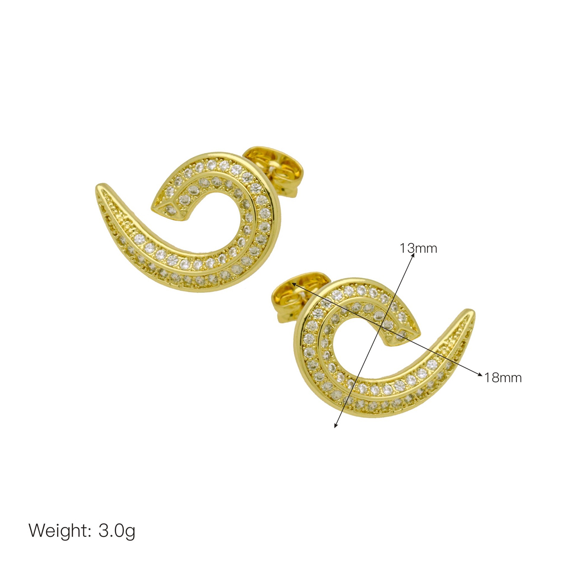 Messing Huggie Ohrreifen, mit kubischer Zirkonia, Druckguss-, für Frau, keine, frei von Nickel, Blei & Kadmium, 20.60x10.76x18.60mm, 10PaarePärchen/Tasche, verkauft von Tasche