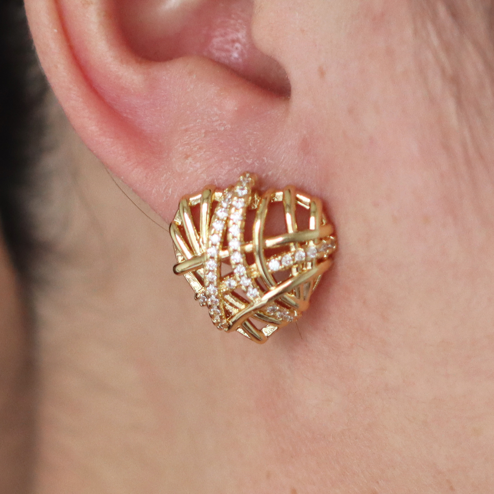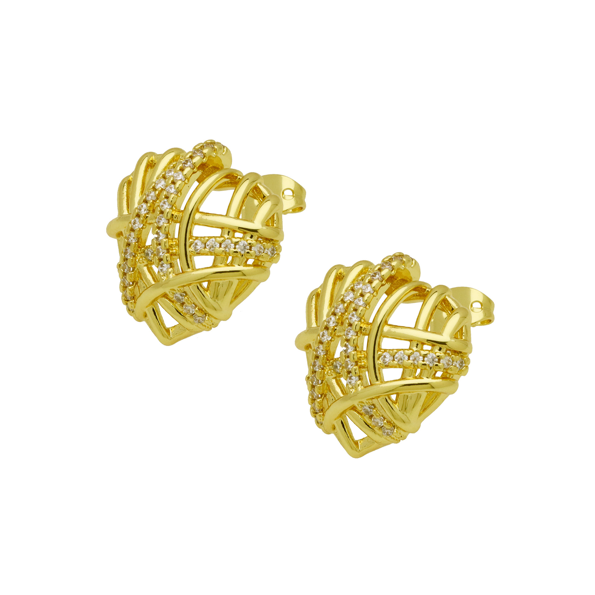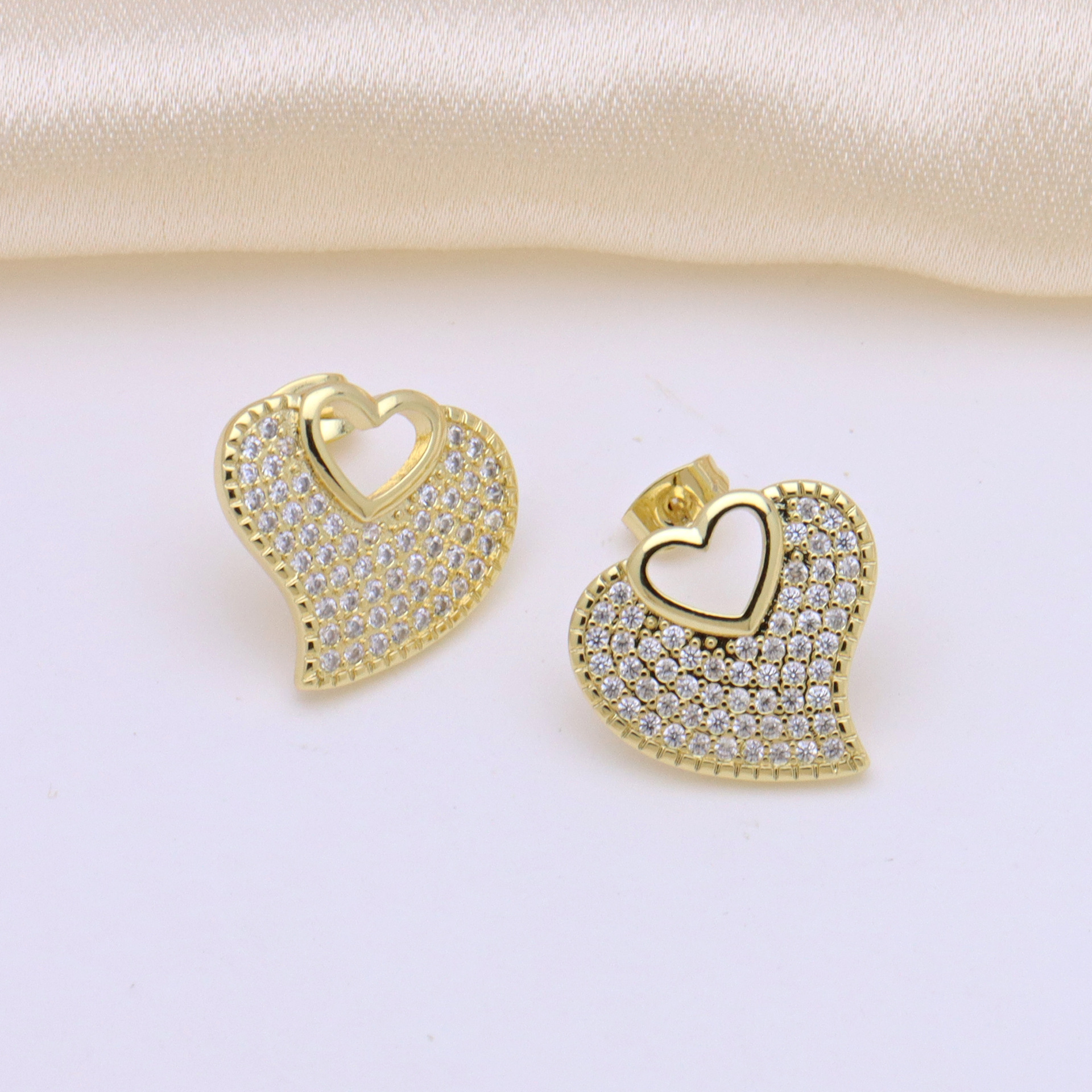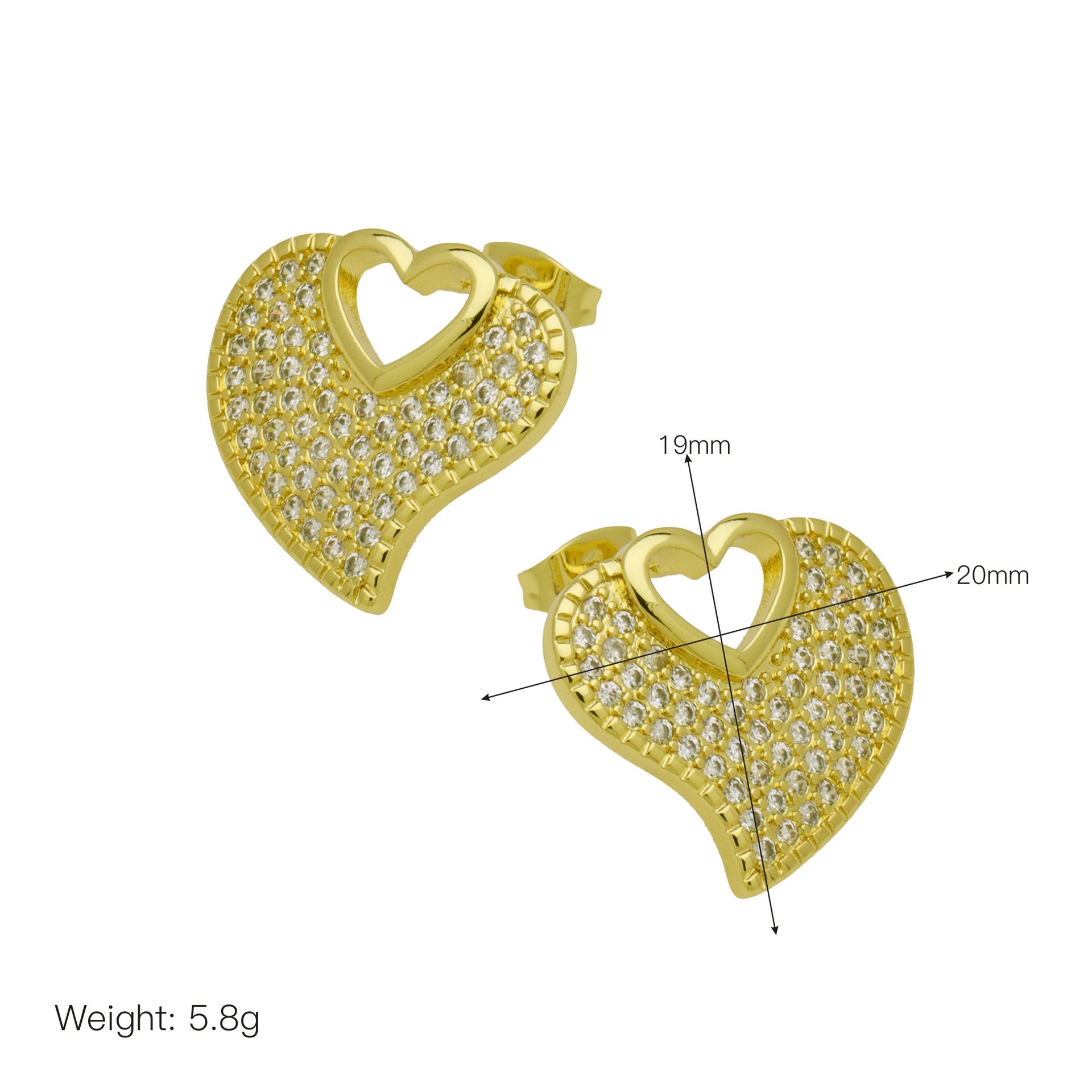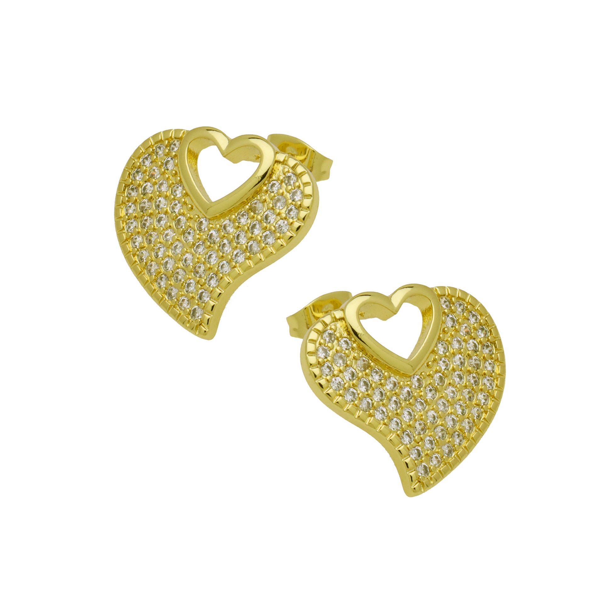 Befestiger Zirkonia Messing Ohrring, Herz, goldfarben plattiert, verschiedene Stile für Wahl & Micro pave Zirkonia & für Frau, keine, verkauft von Paar