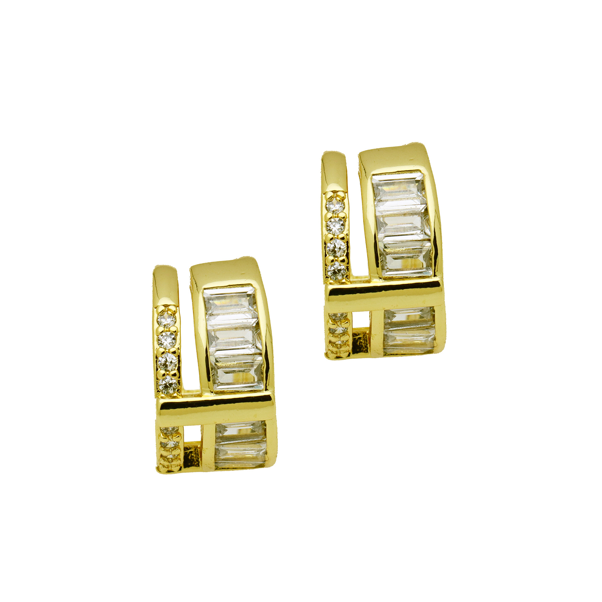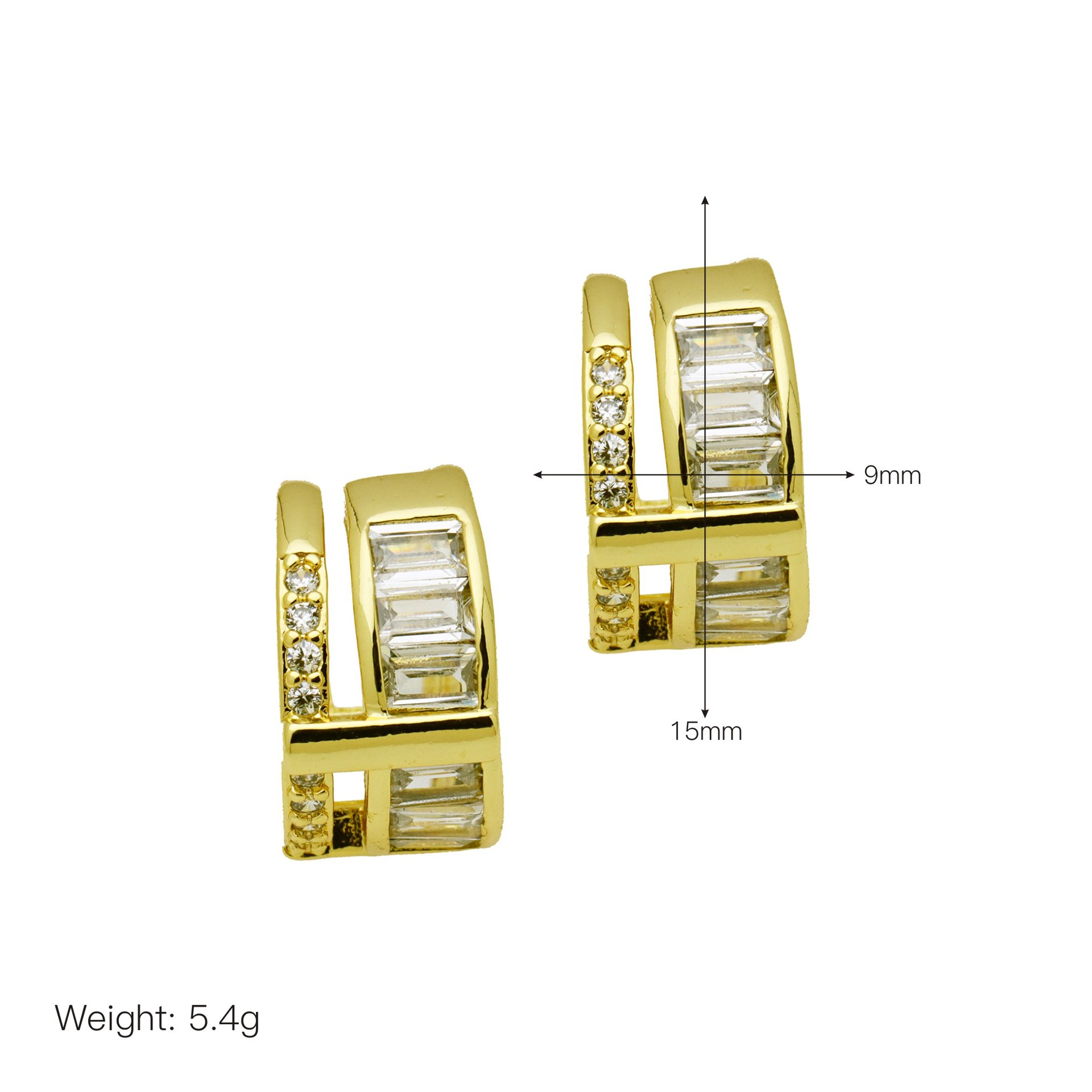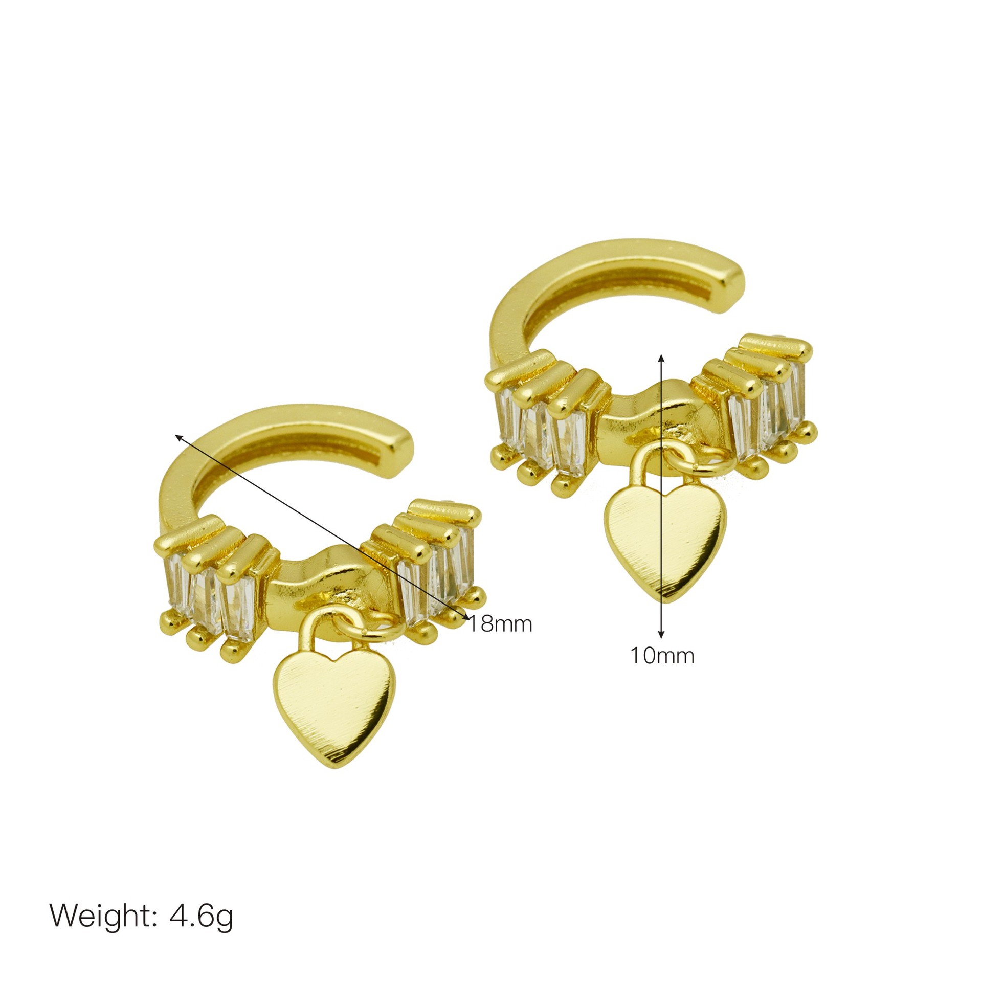 Messing Huggie Ohrreifen, mit kubischer Zirkonia, Druckguss-, für Frau, keine, frei von Nickel, Blei & Kadmium, 20.60x10.76x18.60mm, 10PaarePärchen/Tasche, verkauft von Tasche