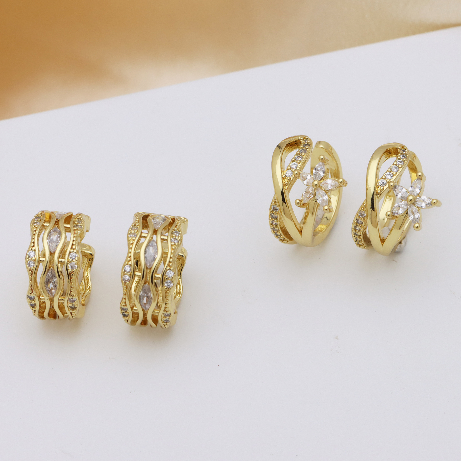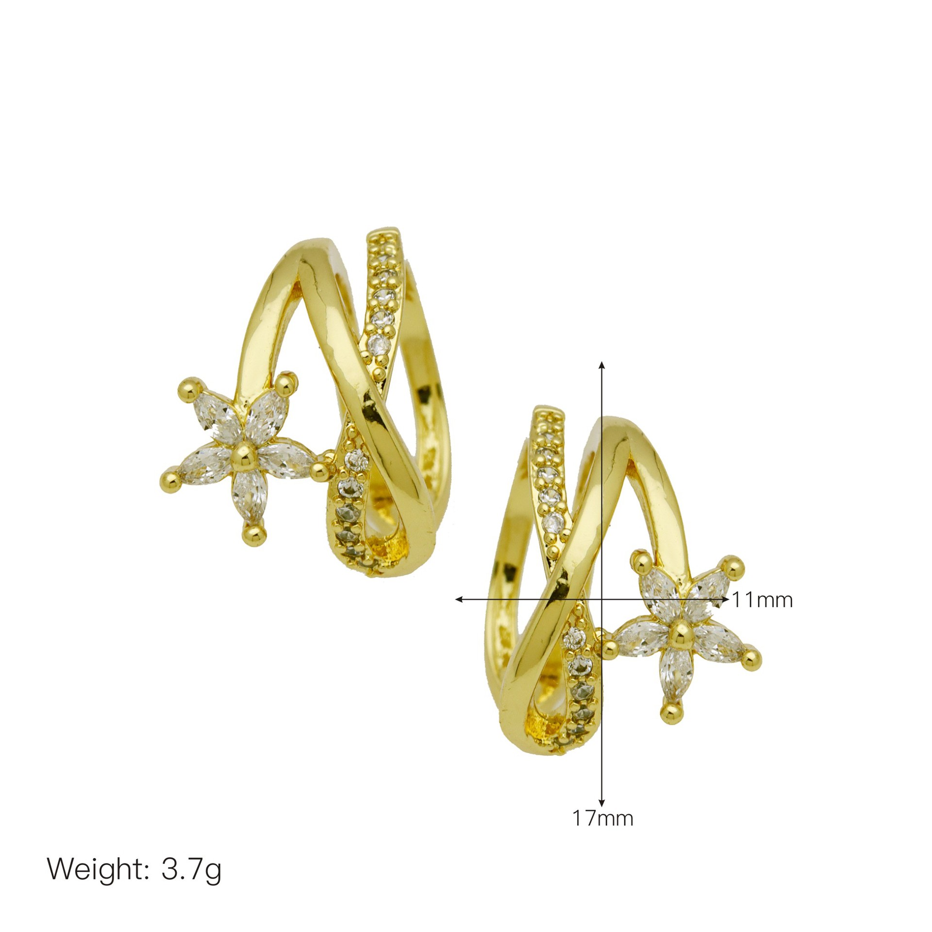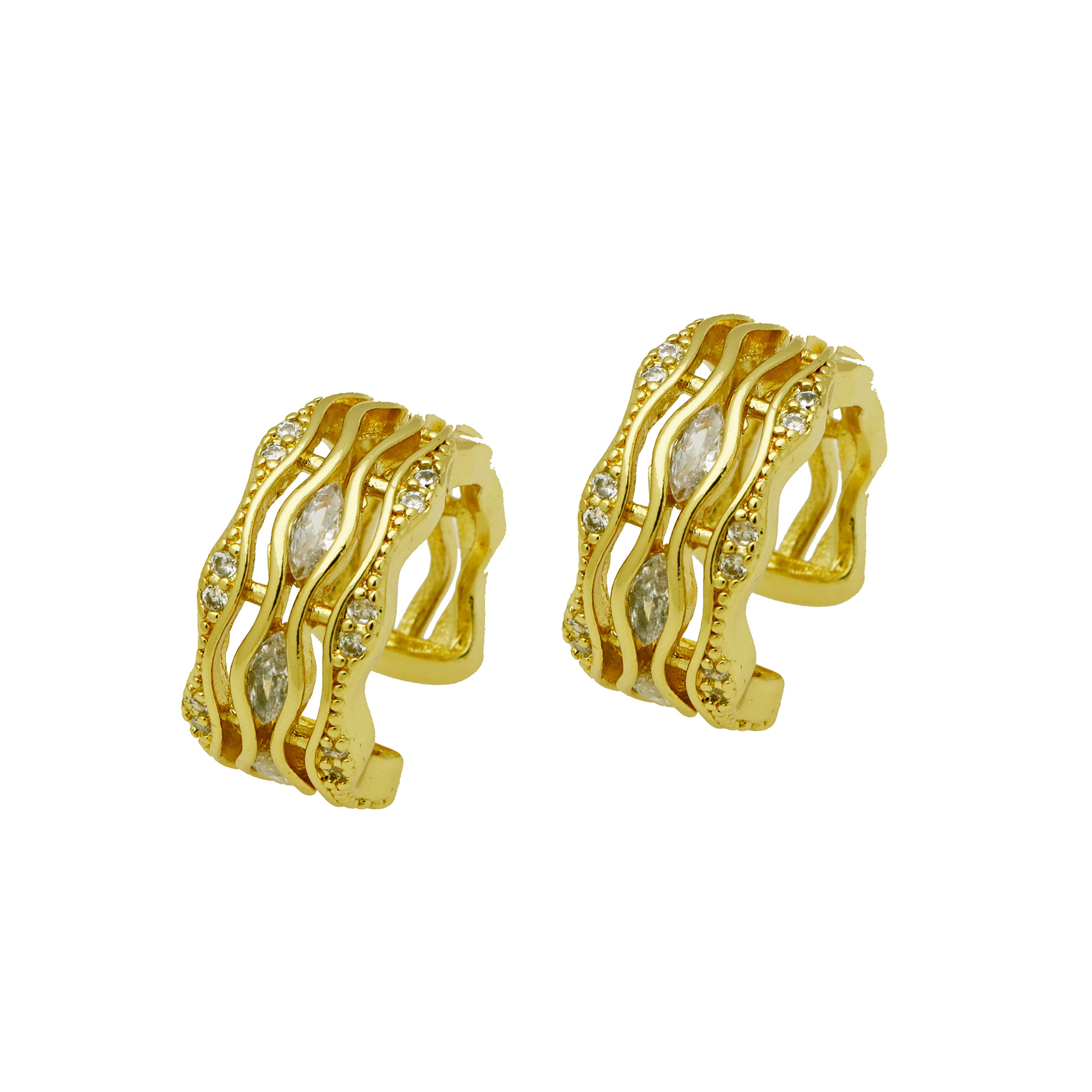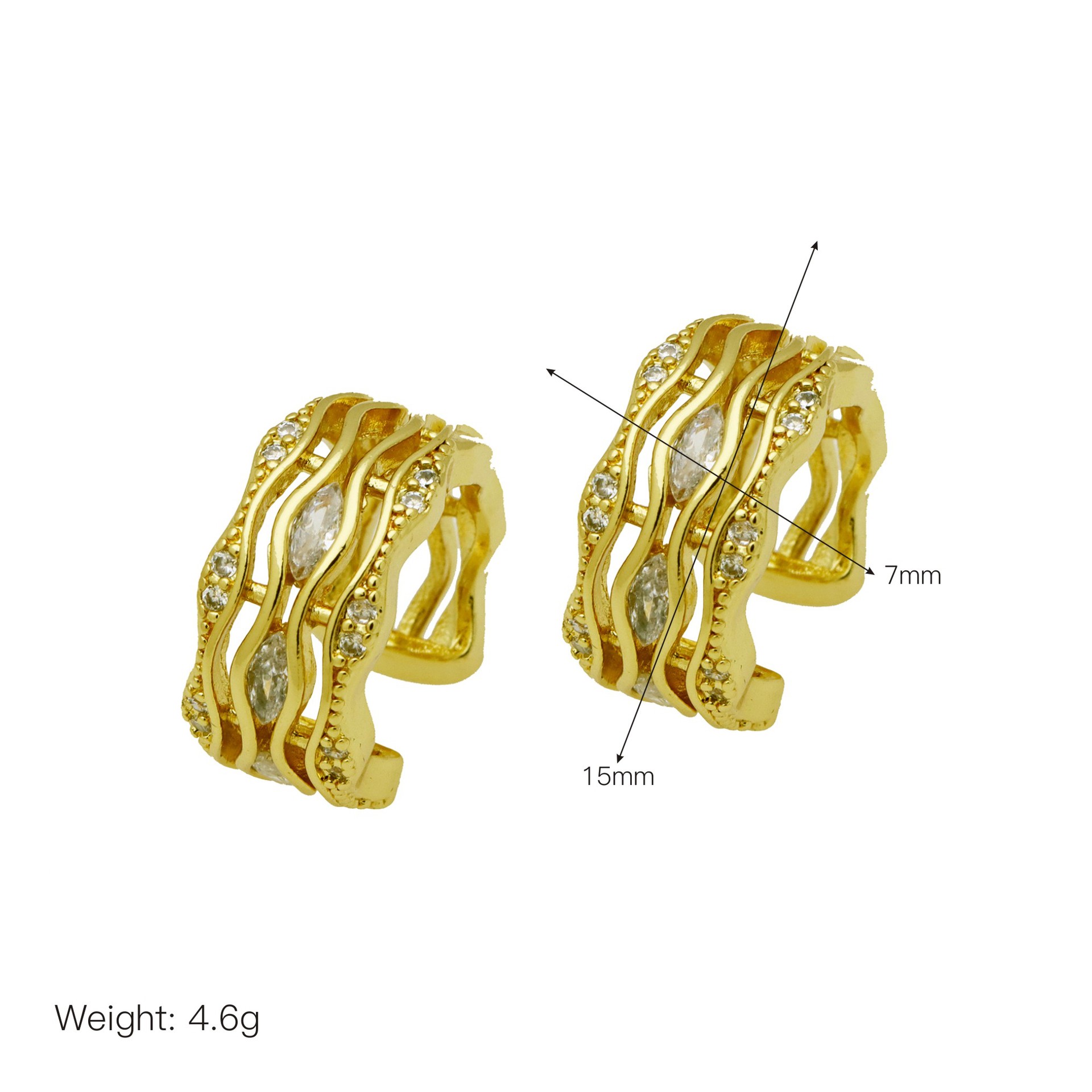 Messing Huggie Ohrreifen, mit kubischer Zirkonia, Druckguss-, für Frau, keine, frei von Nickel, Blei & Kadmium, 20.60x10.76x18.60mm, 10PaarePärchen/Tasche, verkauft von Tasche