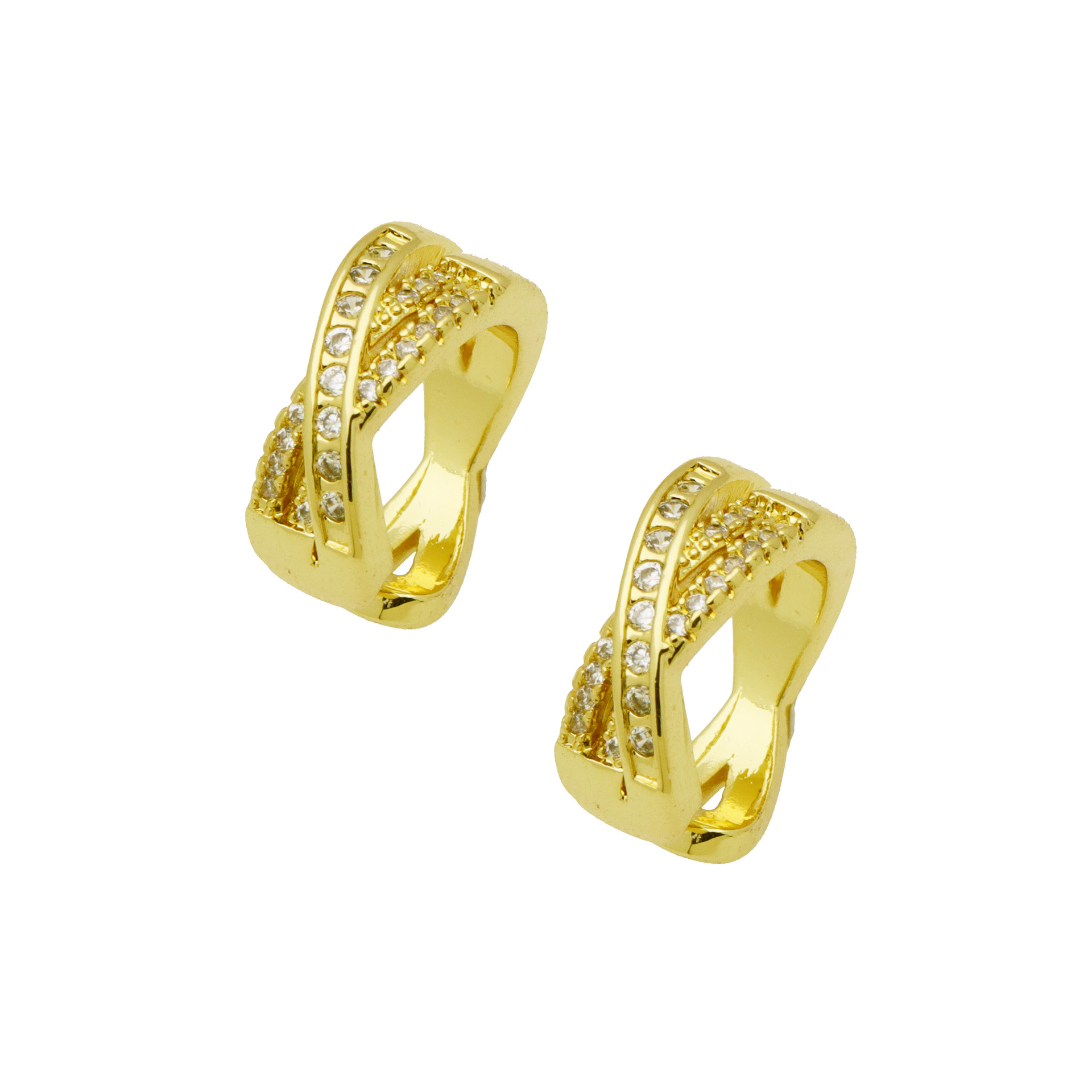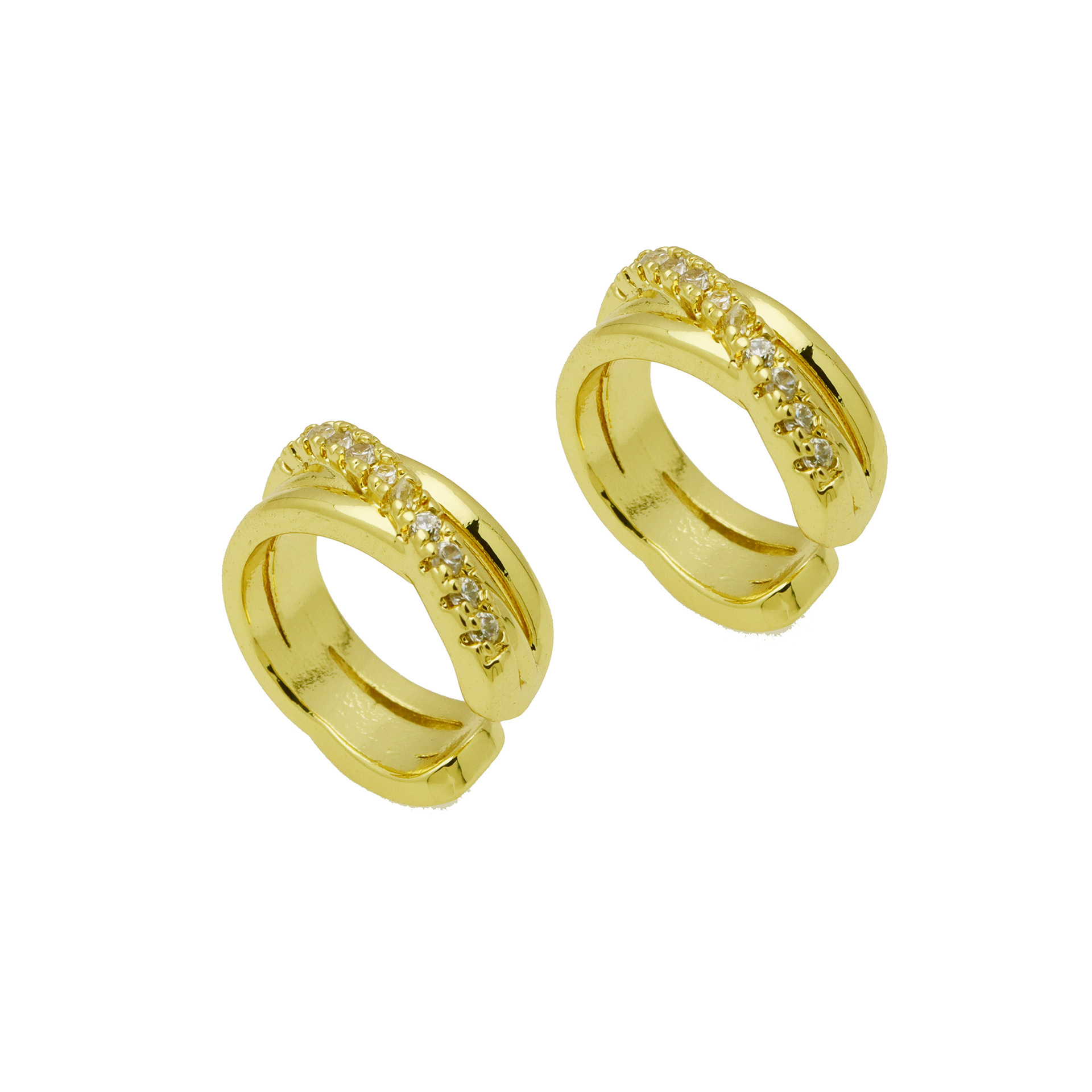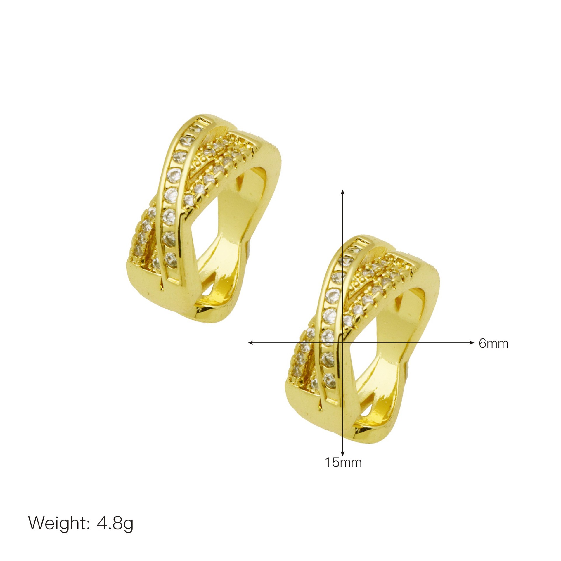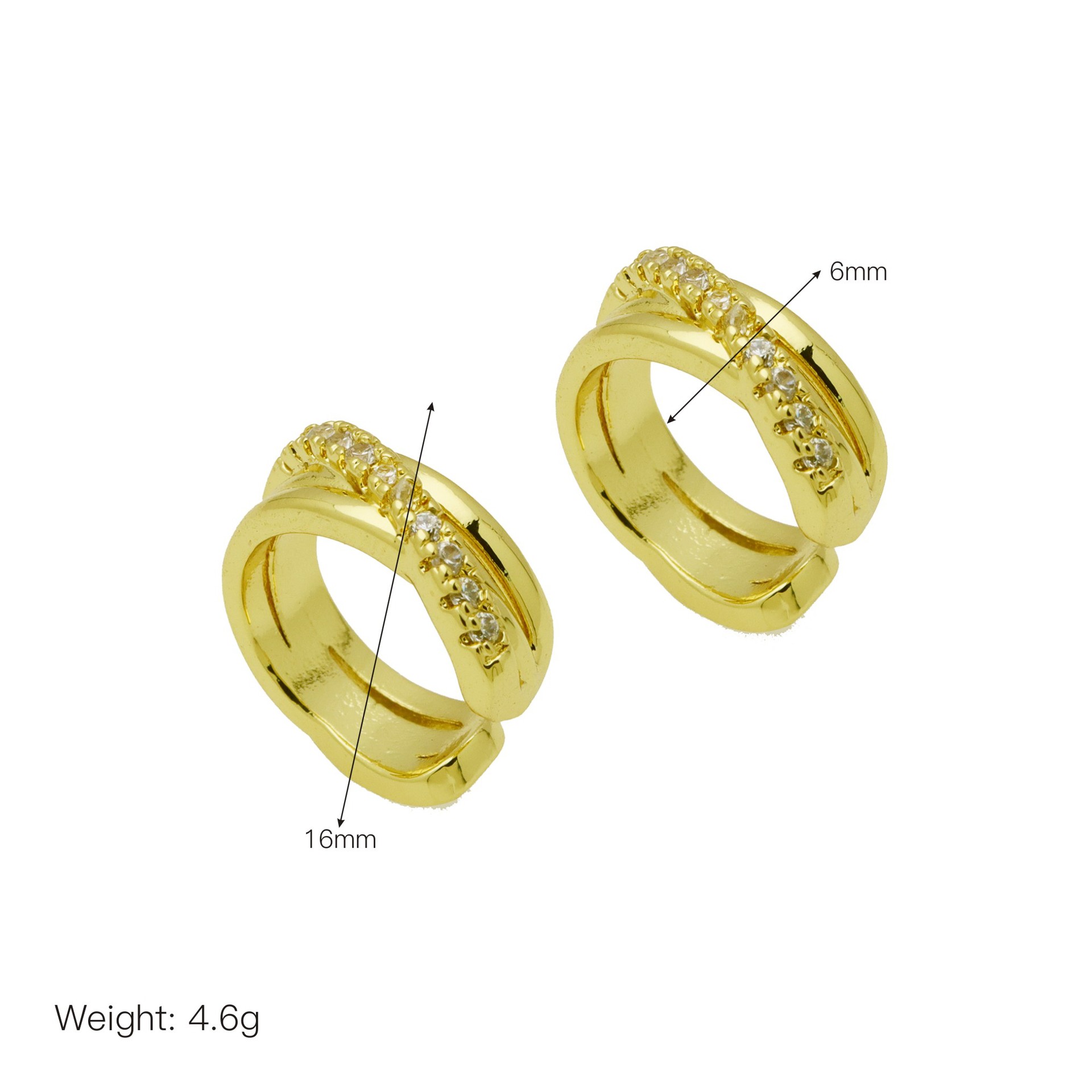 Messing Huggie Ohrreifen, mit kubischer Zirkonia, Druckguss-, für Frau, keine, frei von Nickel, Blei & Kadmium, 20.60x10.76x18.60mm, 10PaarePärchen/Tasche, verkauft von Tasche