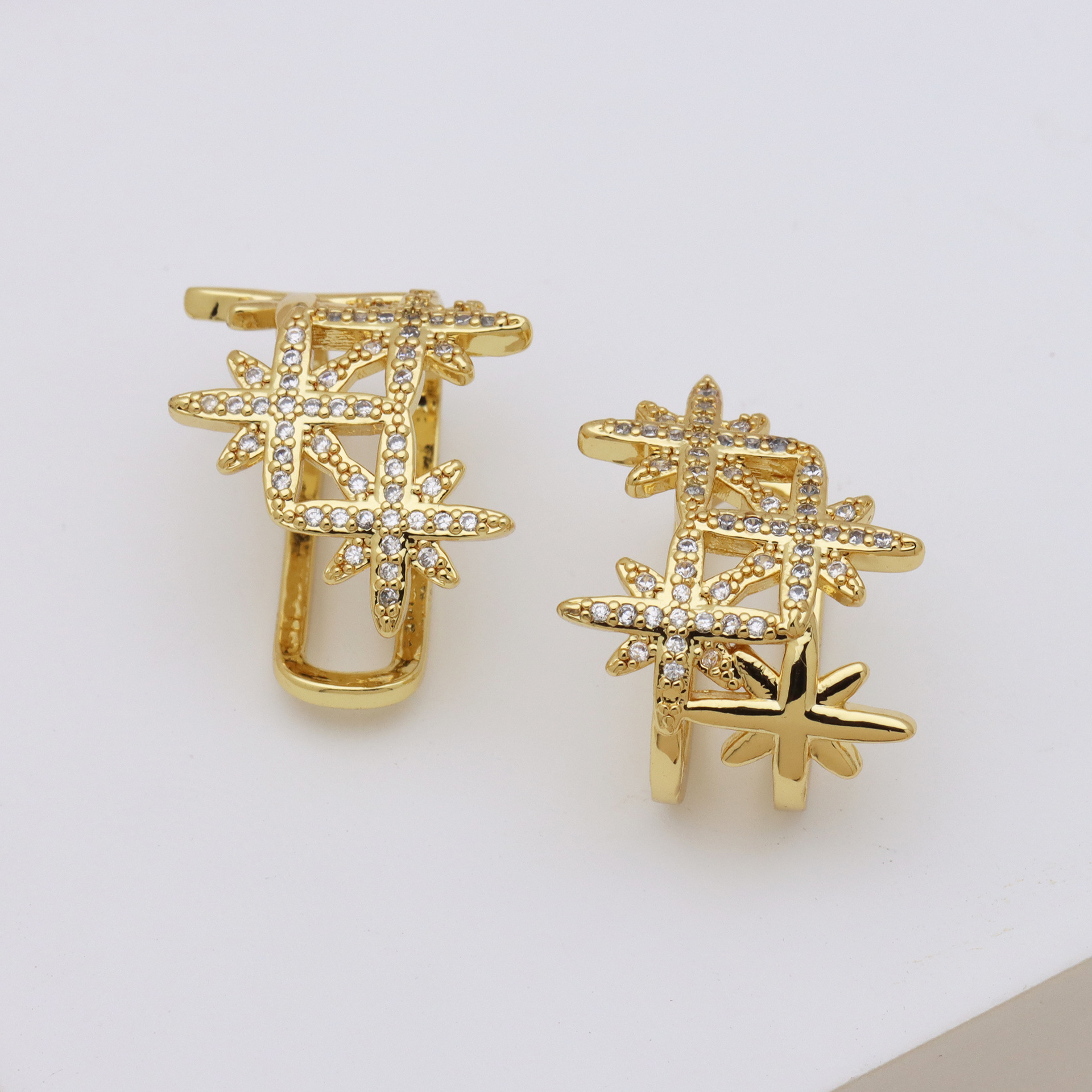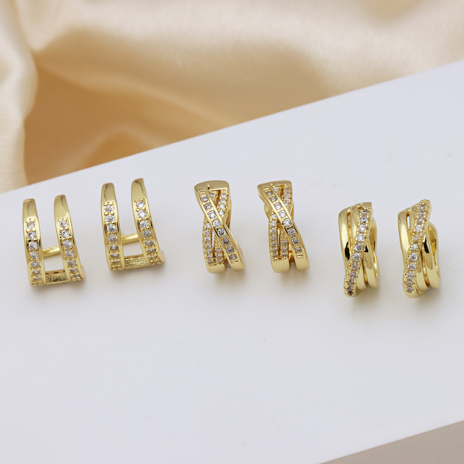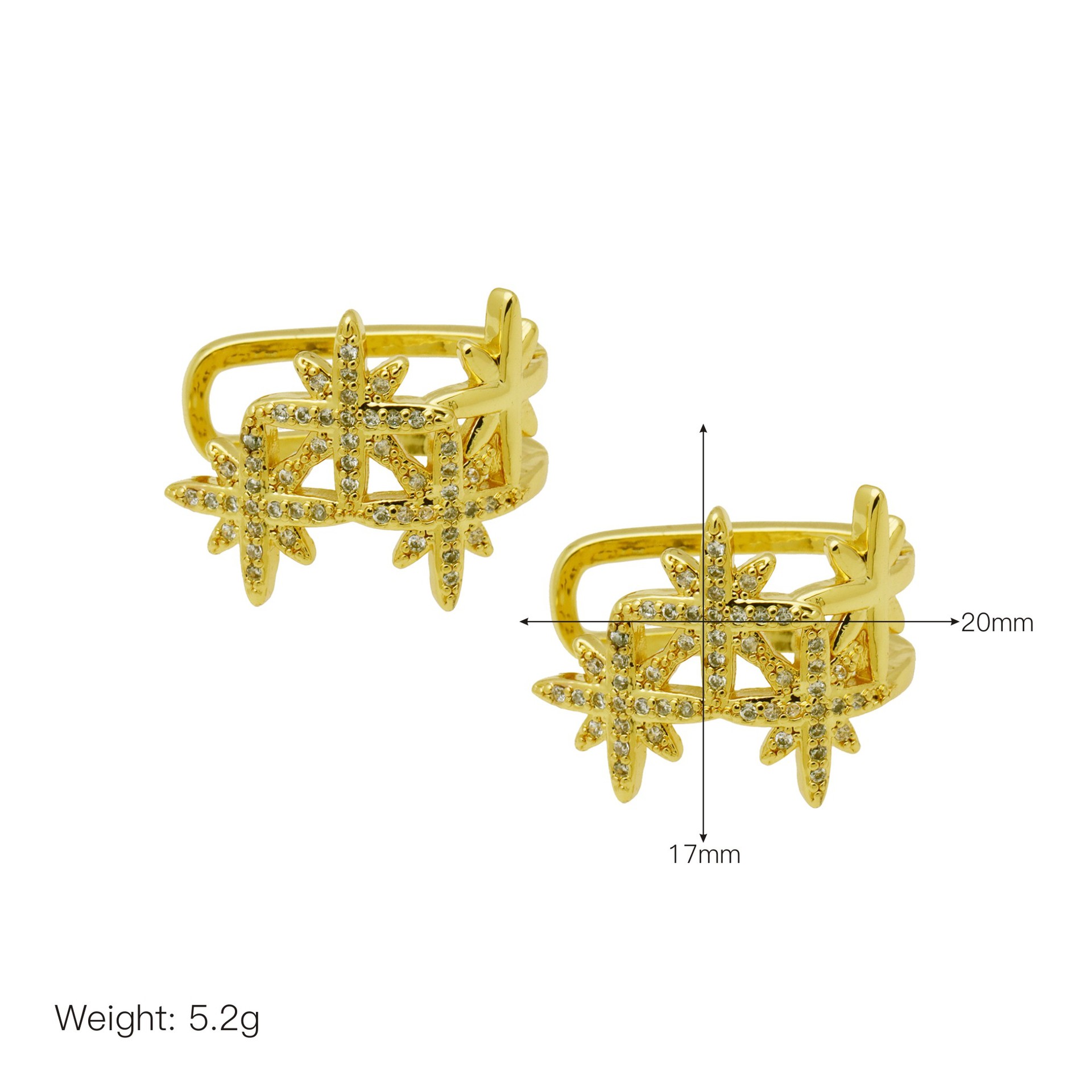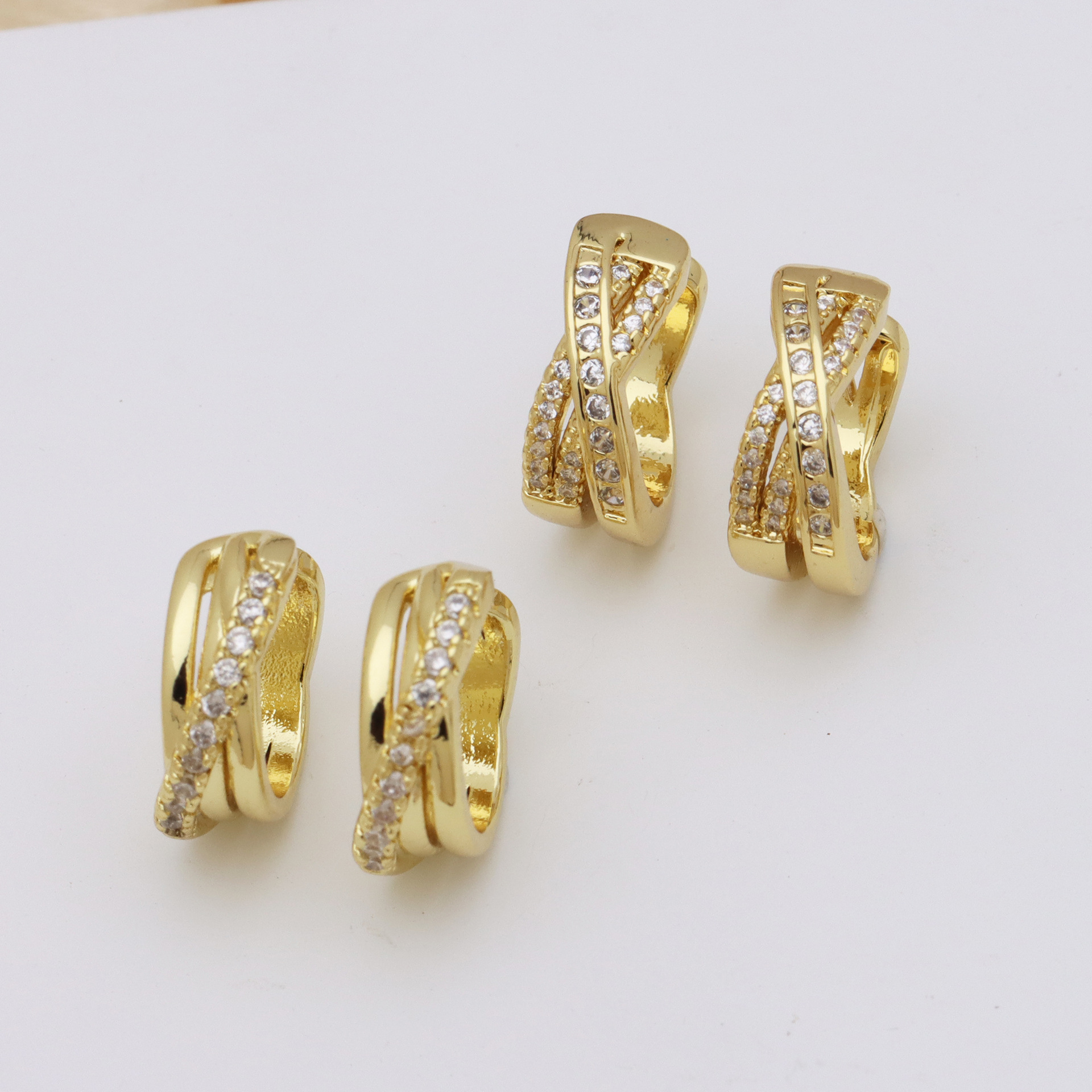 Messing Huggie Ohrreifen, mit kubischer Zirkonia, Druckguss-, für Frau, keine, frei von Nickel, Blei & Kadmium, 20.60x10.76x18.60mm, 10PaarePärchen/Tasche, verkauft von Tasche