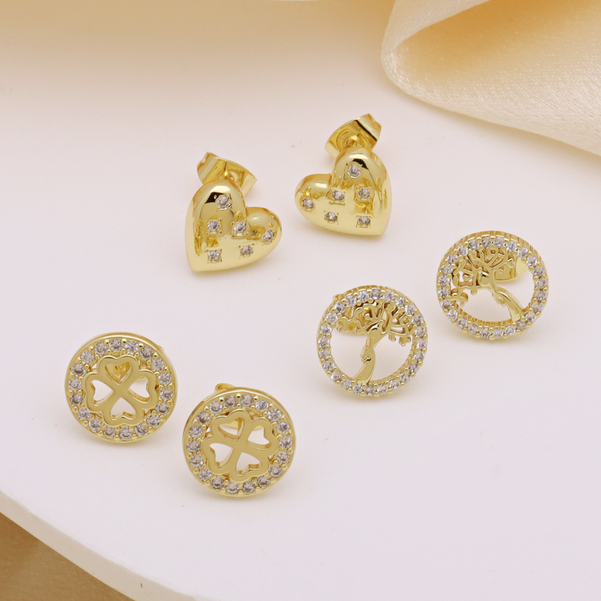 Befestiger Zirkonia Messing Ohrring, goldfarben plattiert, verschiedene Stile für Wahl & Micro pave Zirkonia & für Frau, keine, verkauft von Paar