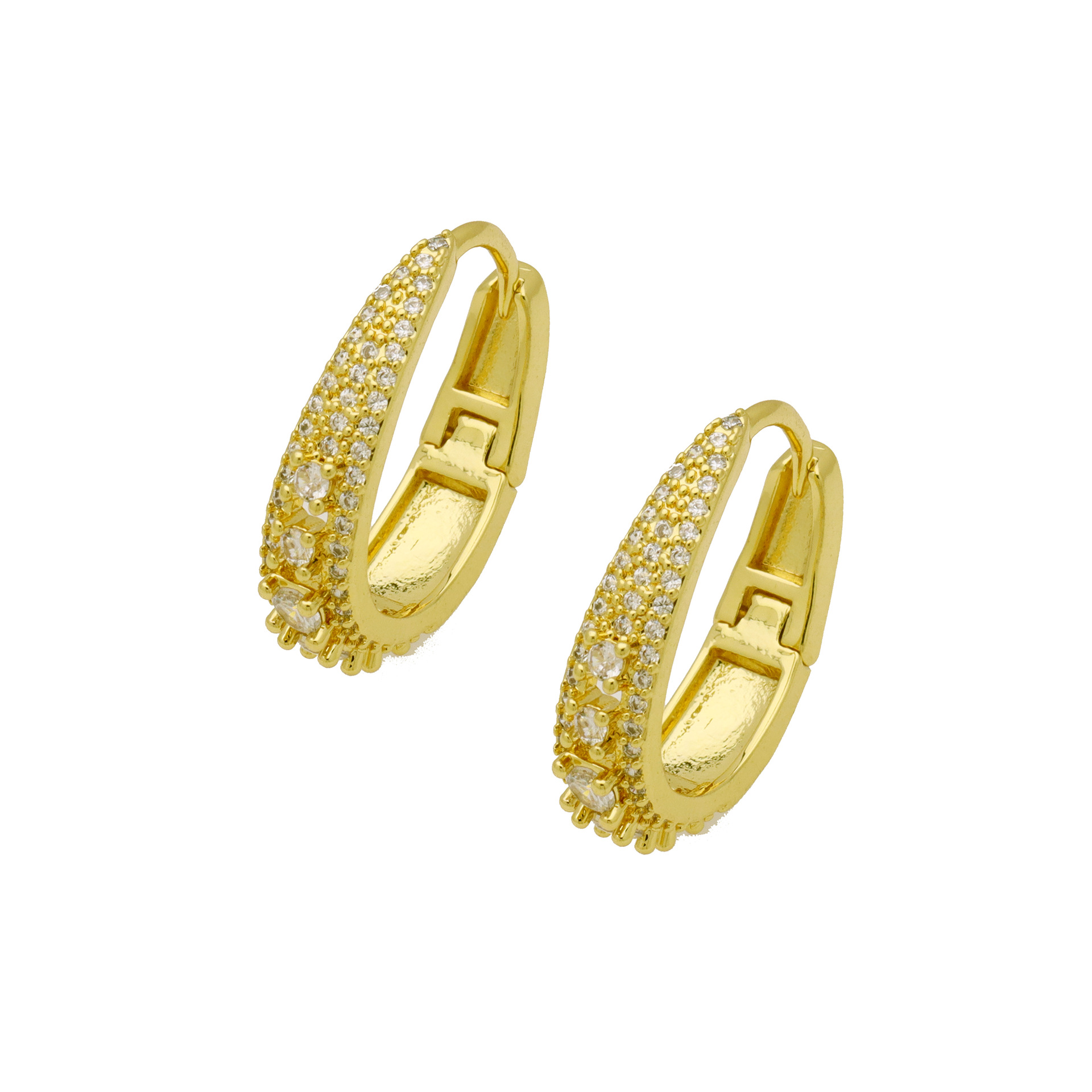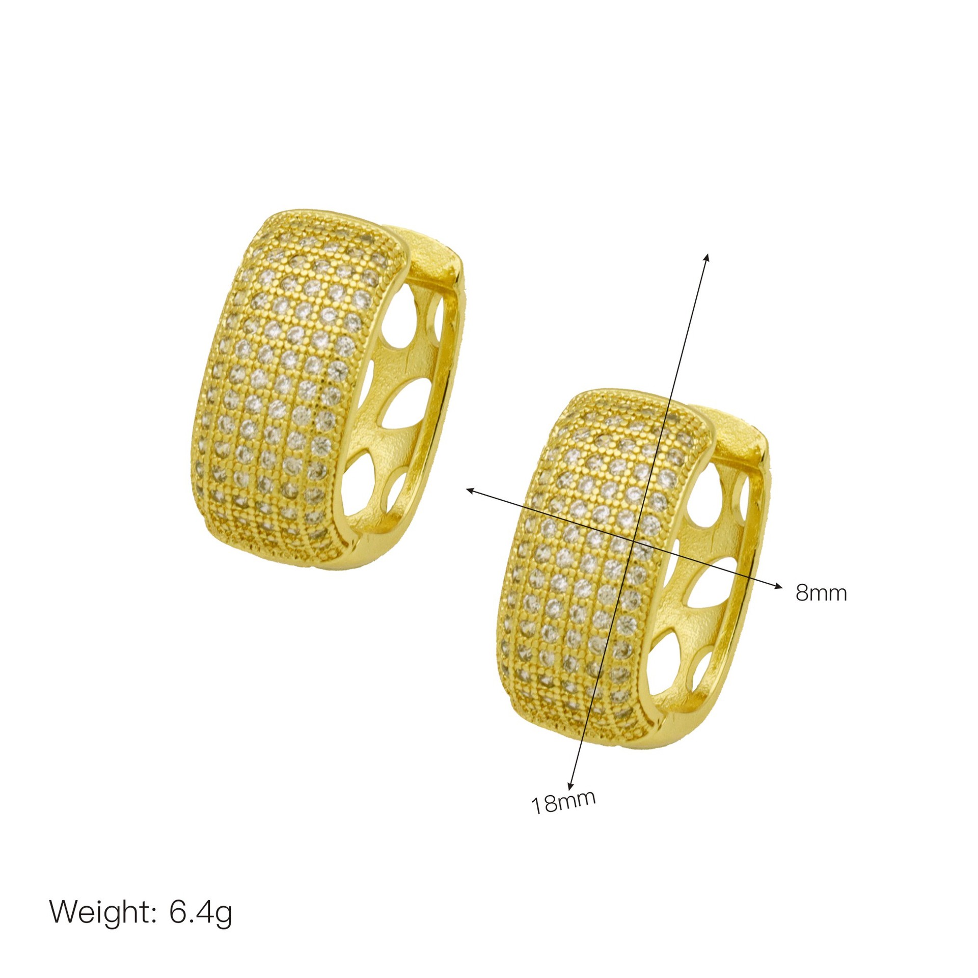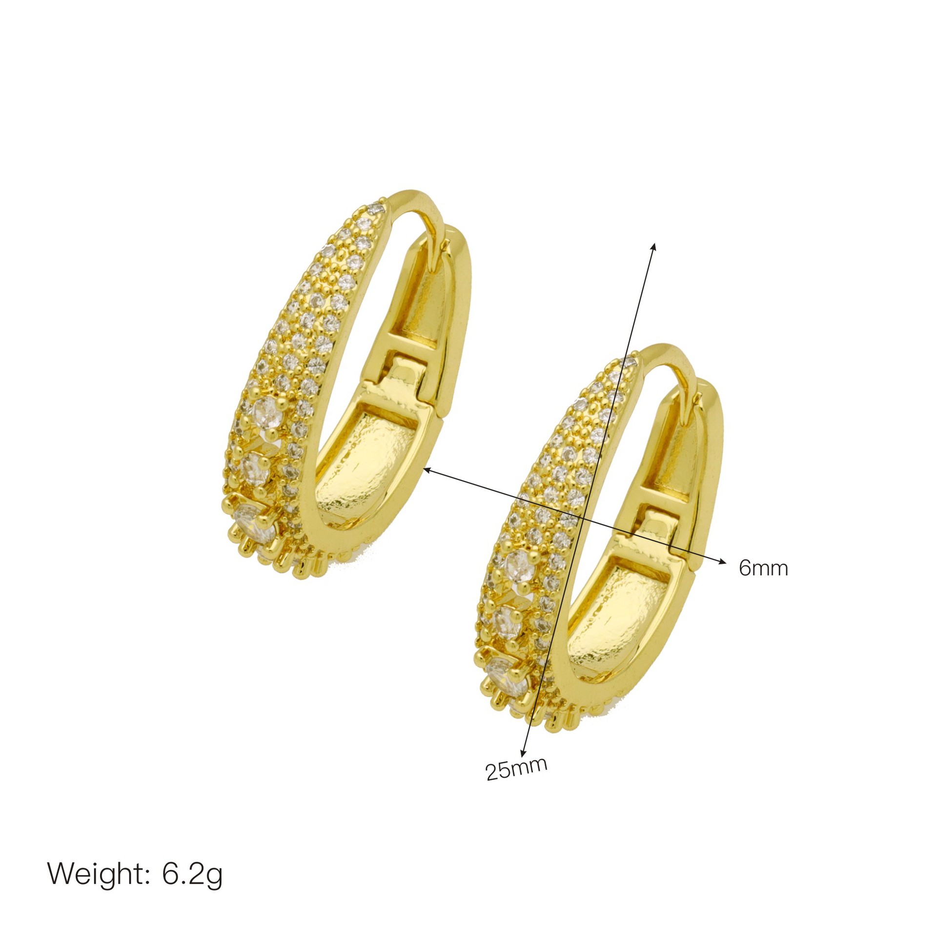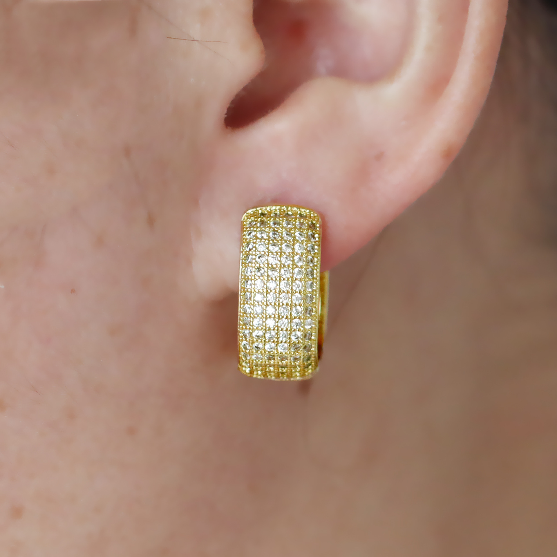 Messing Huggie Ohrreifen, mit kubischer Zirkonia, Druckguss-, für Frau, keine, frei von Nickel, Blei & Kadmium, 20.60x10.76x18.60mm, 10PaarePärchen/Tasche, verkauft von Tasche