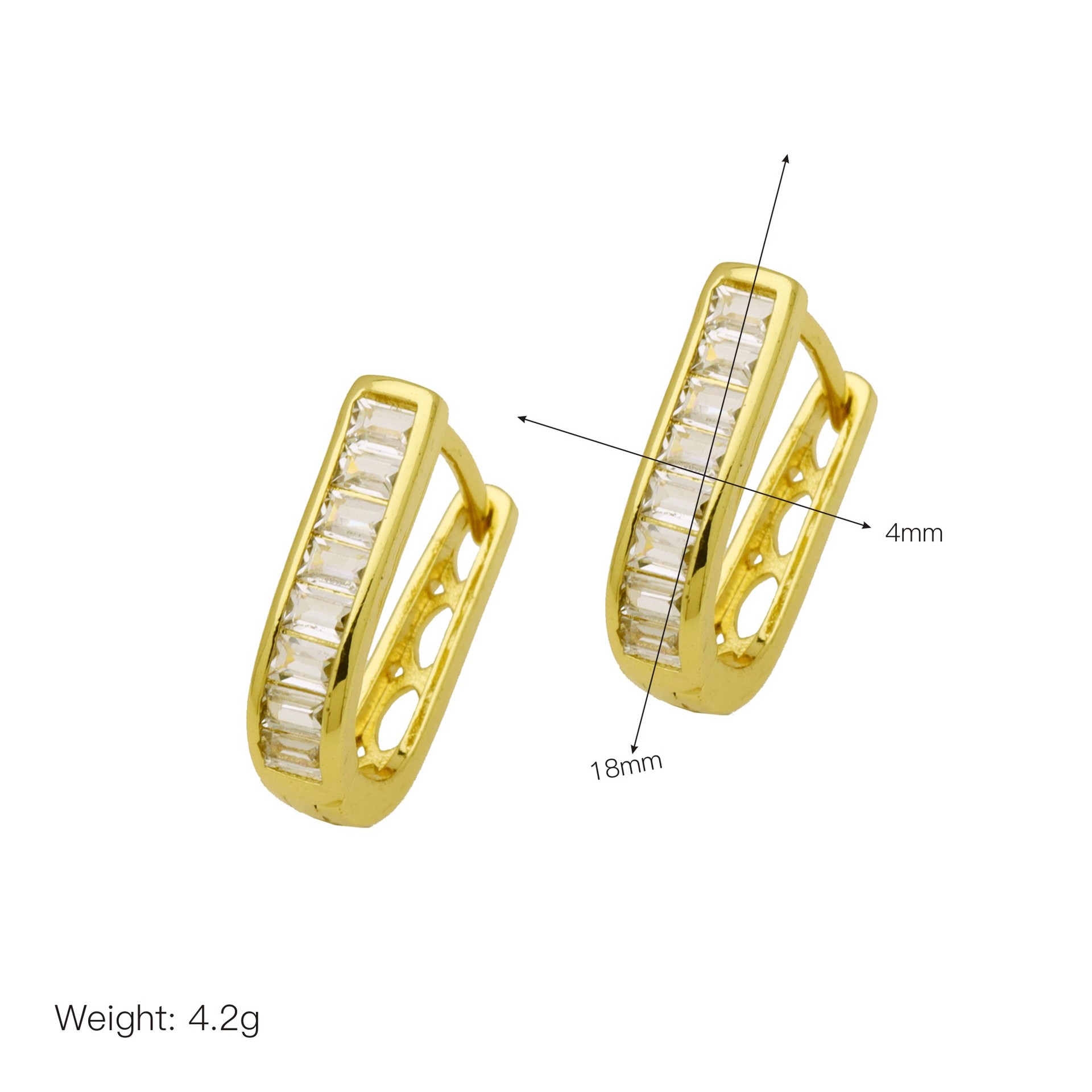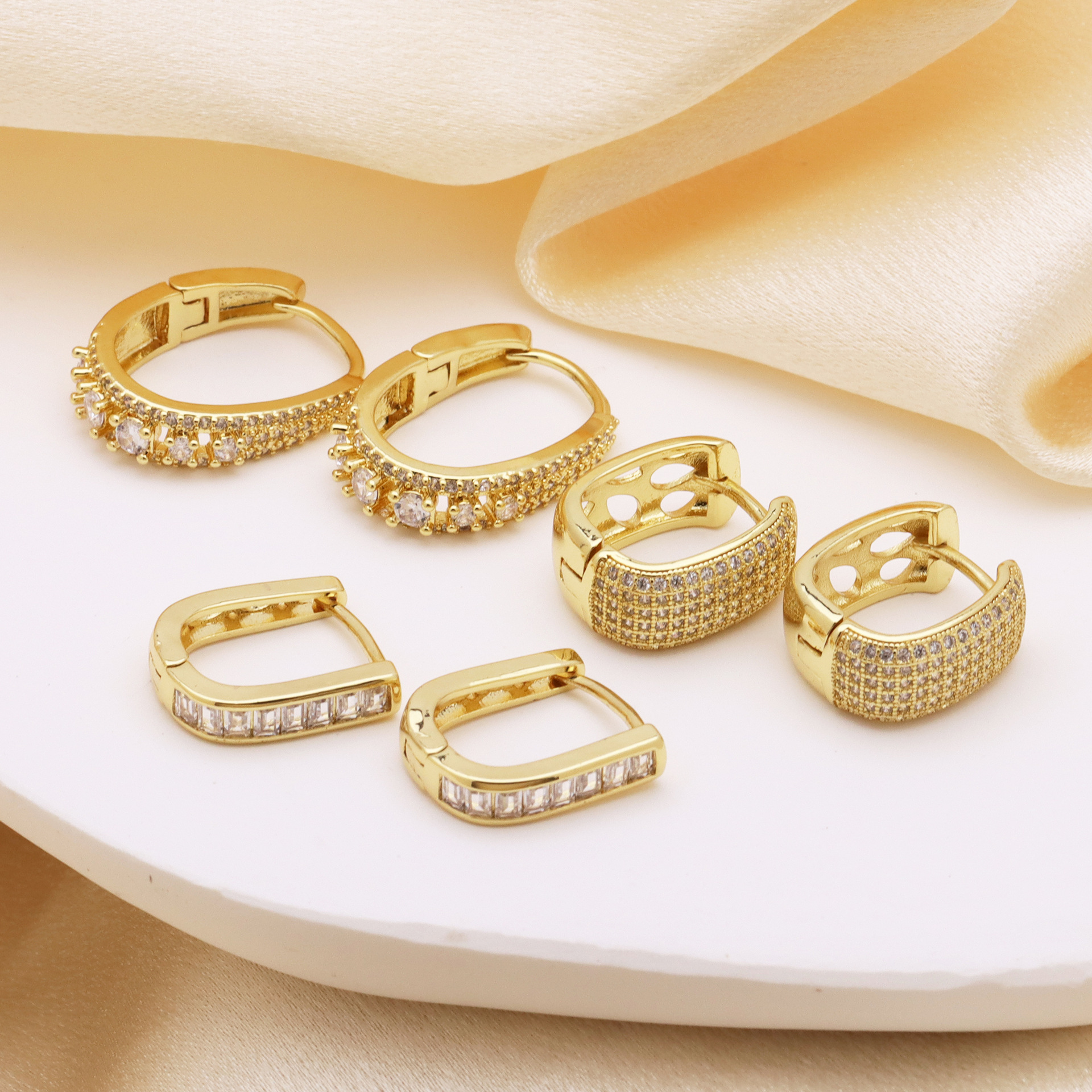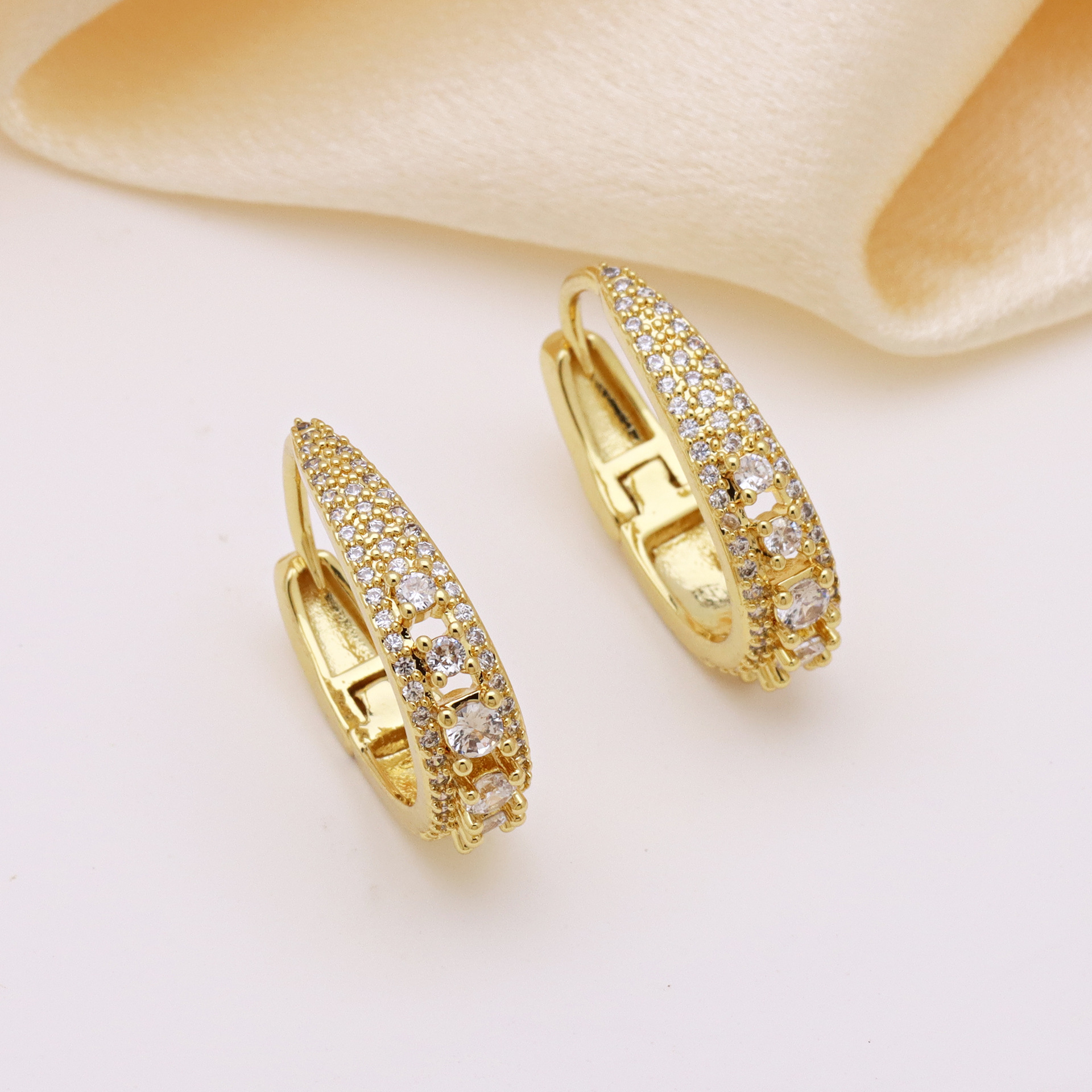 Messing Huggie Ohrreifen, mit kubischer Zirkonia, Druckguss-, für Frau, keine, frei von Nickel, Blei & Kadmium, 20.60x10.76x18.60mm, 10PaarePärchen/Tasche, verkauft von Tasche