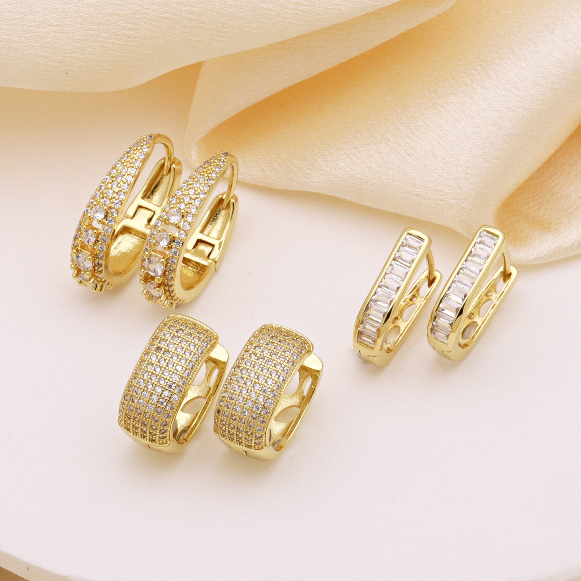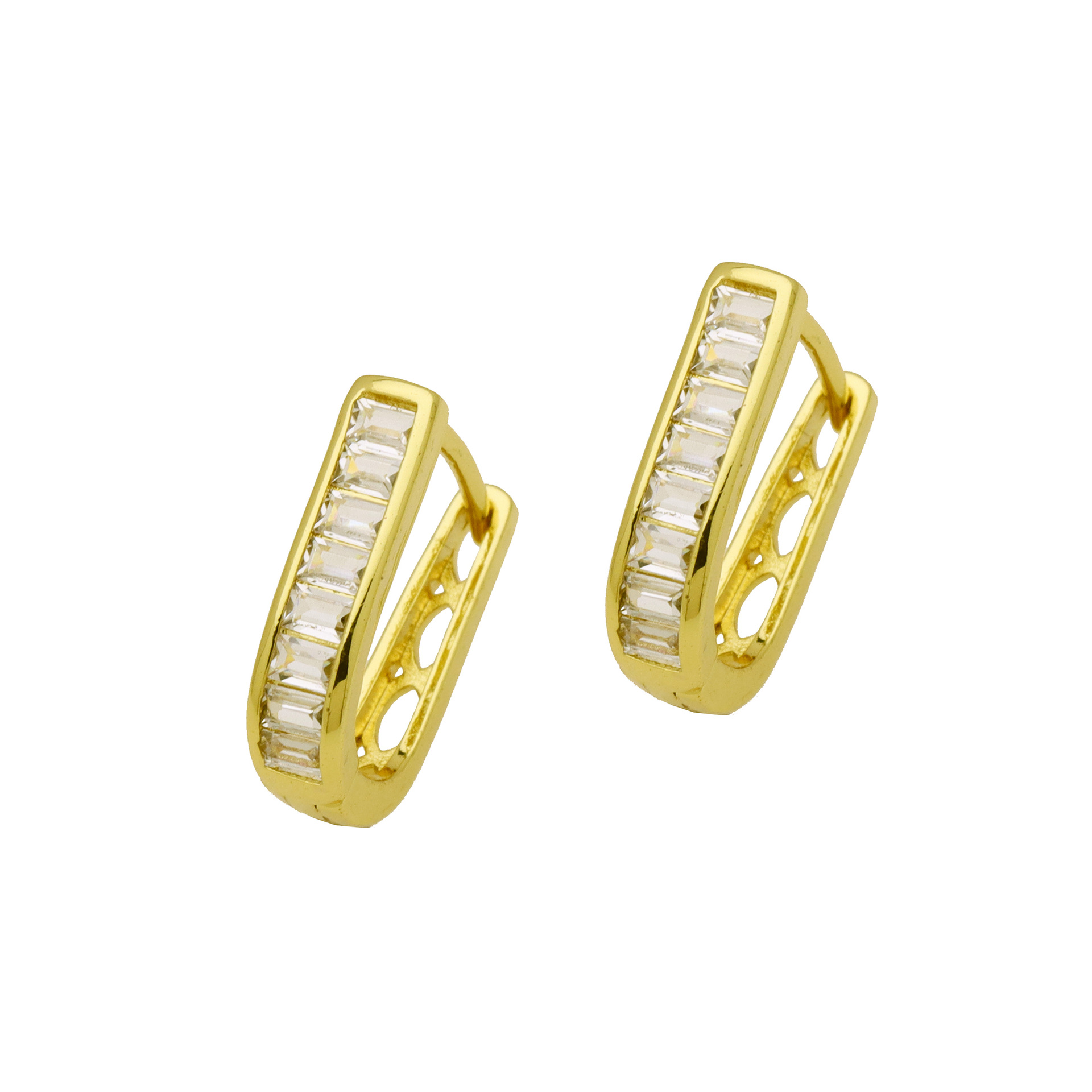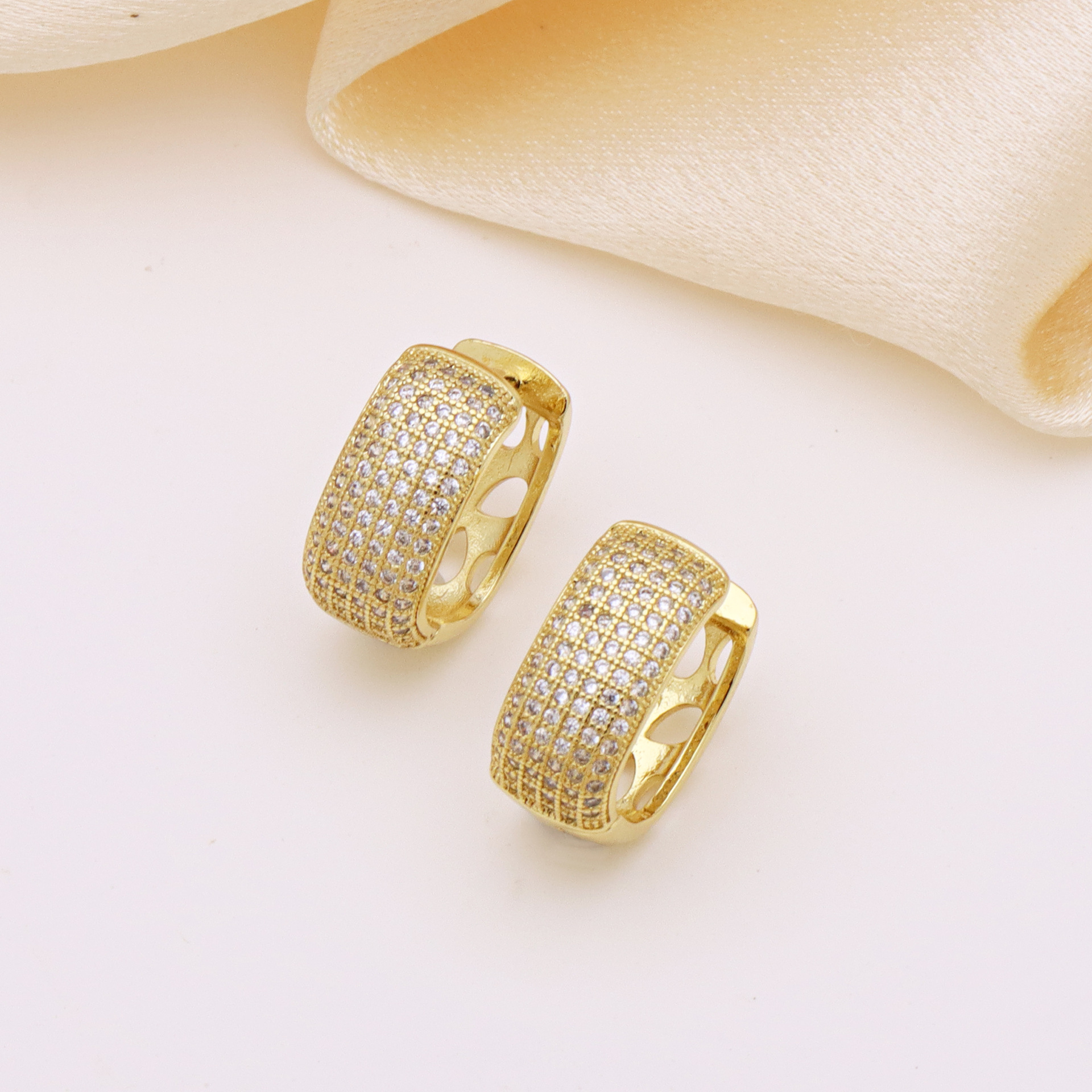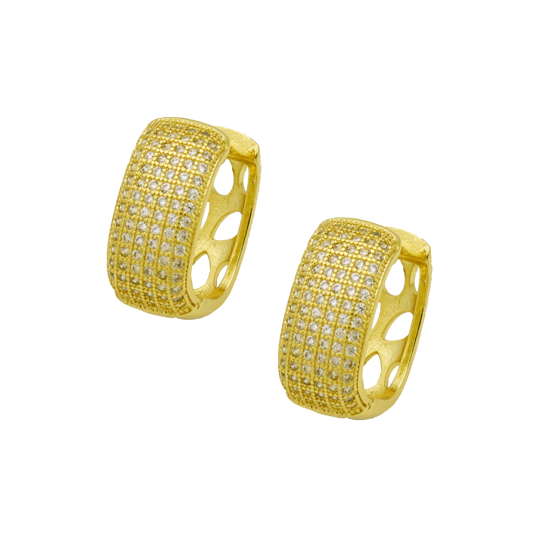 Messing Huggie Ohrreifen, mit kubischer Zirkonia, Druckguss-, für Frau, keine, frei von Nickel, Blei & Kadmium, 20.60x10.76x18.60mm, 10PaarePärchen/Tasche, verkauft von Tasche