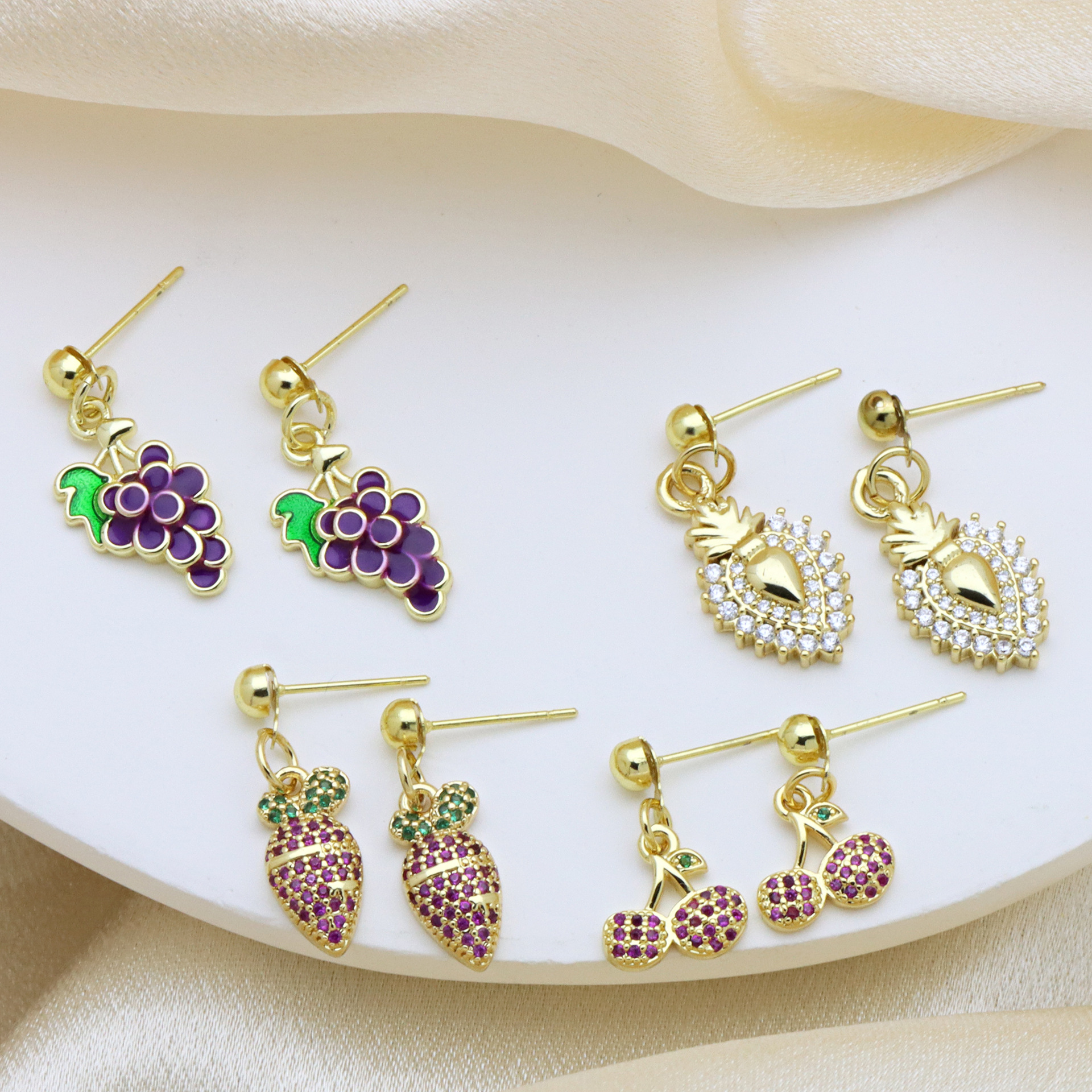 Befestiger Zirkonia Messing Ohrring, goldfarben plattiert, verschiedene Stile für Wahl & Micro pave Zirkonia & für Frau & Emaille, keine, verkauft von Paar