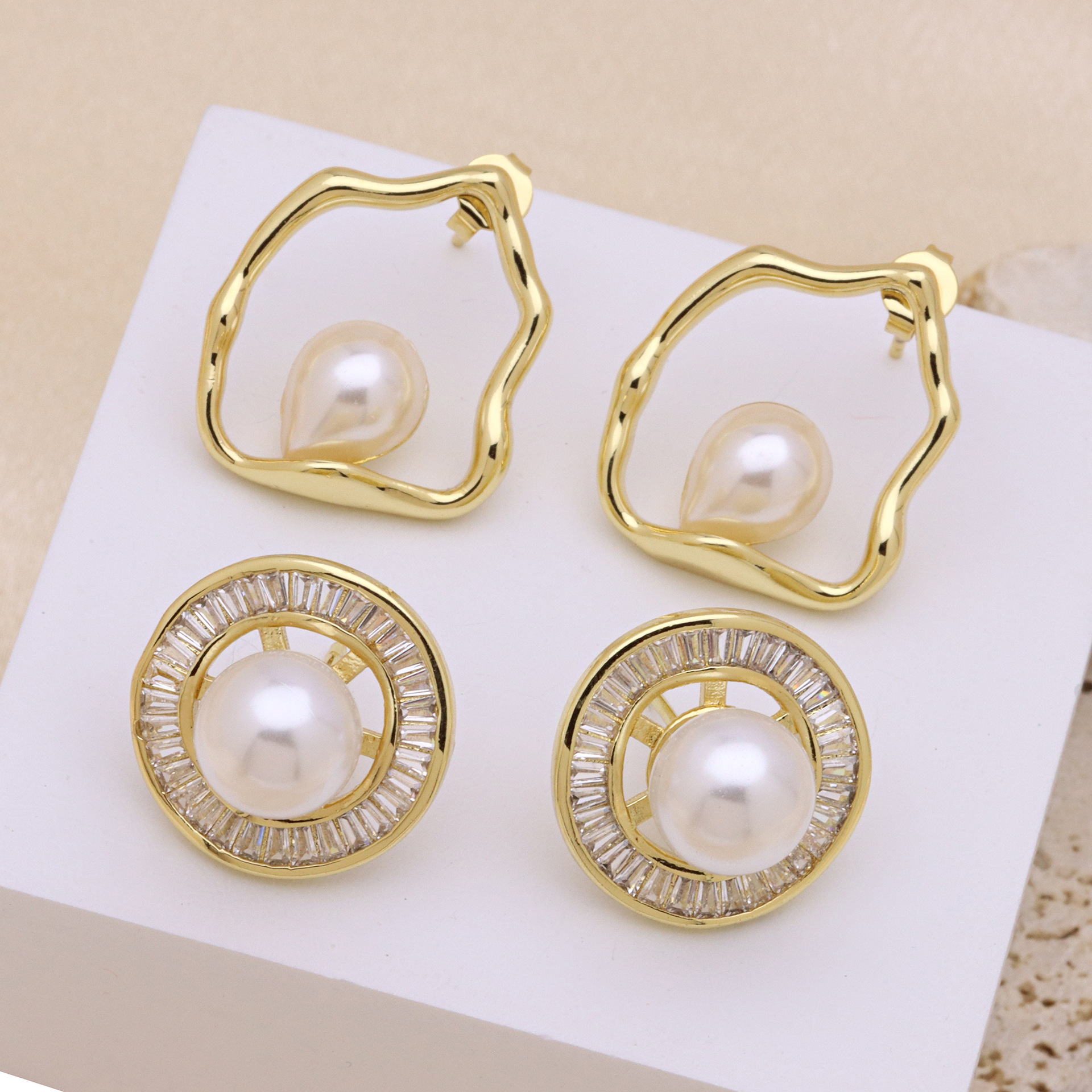 Befestiger Zirkonia Messing Ohrring, mit Kunststoff Perlen, goldfarben plattiert, verschiedene Stile für Wahl & Micro pave Zirkonia & für Frau, keine, verkauft von Paar