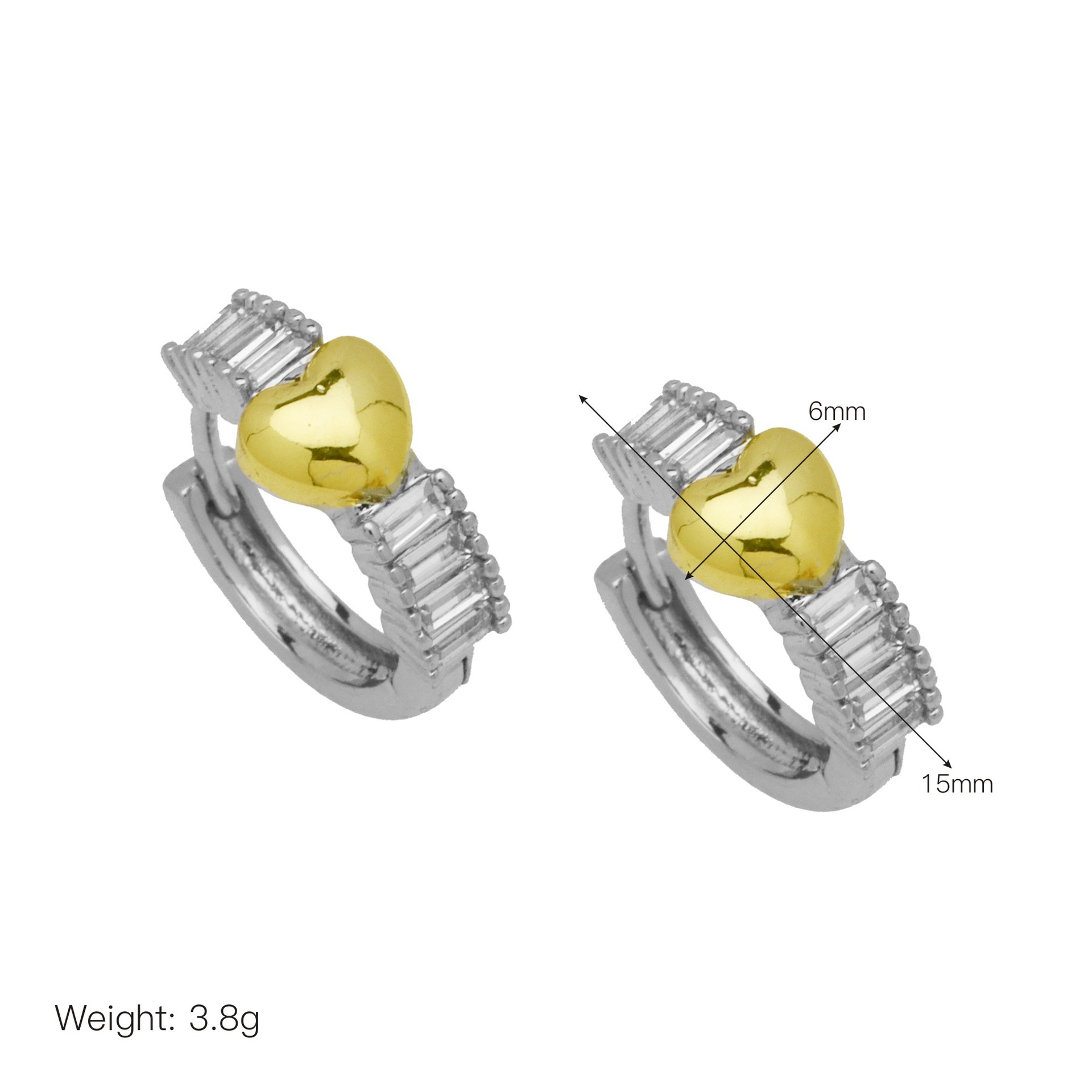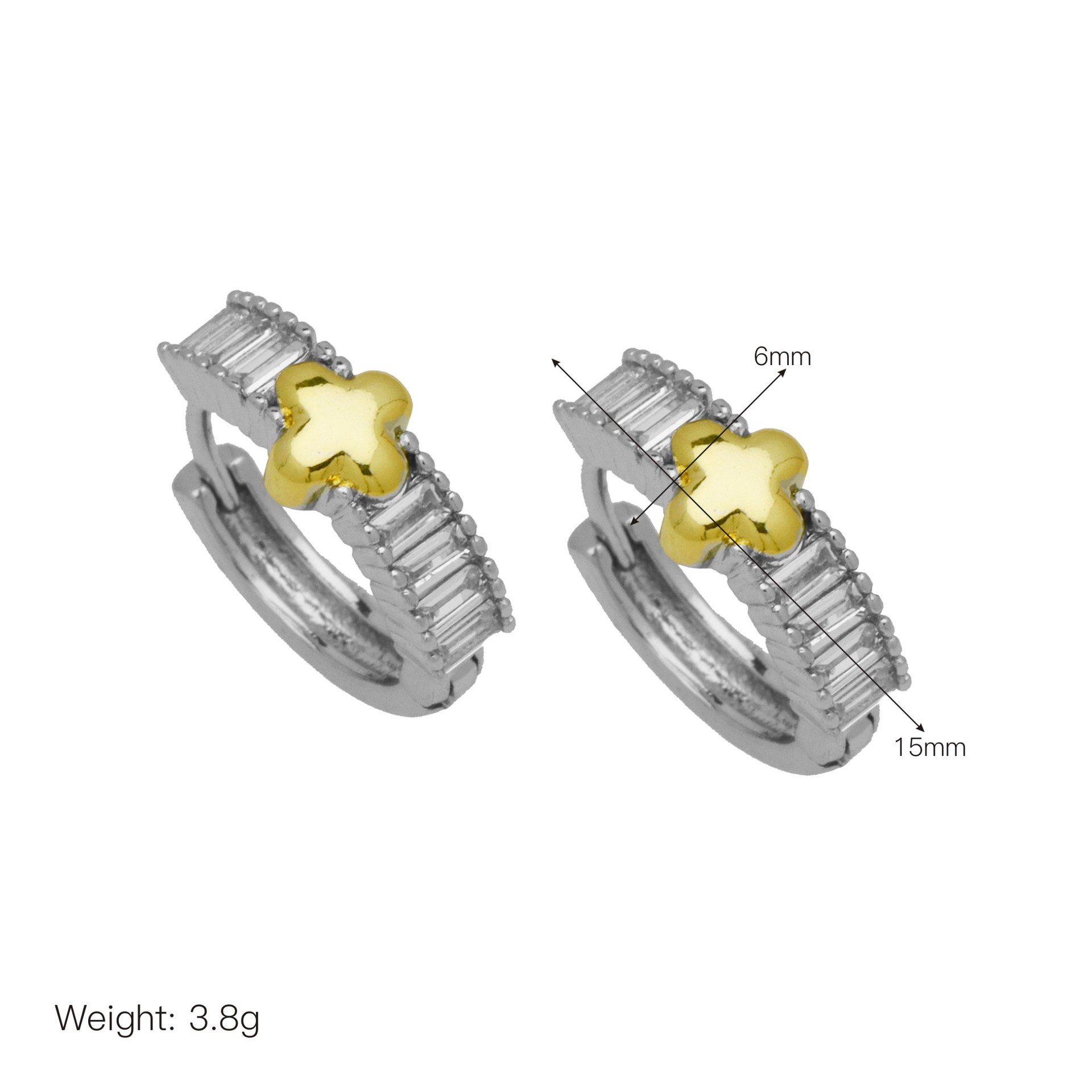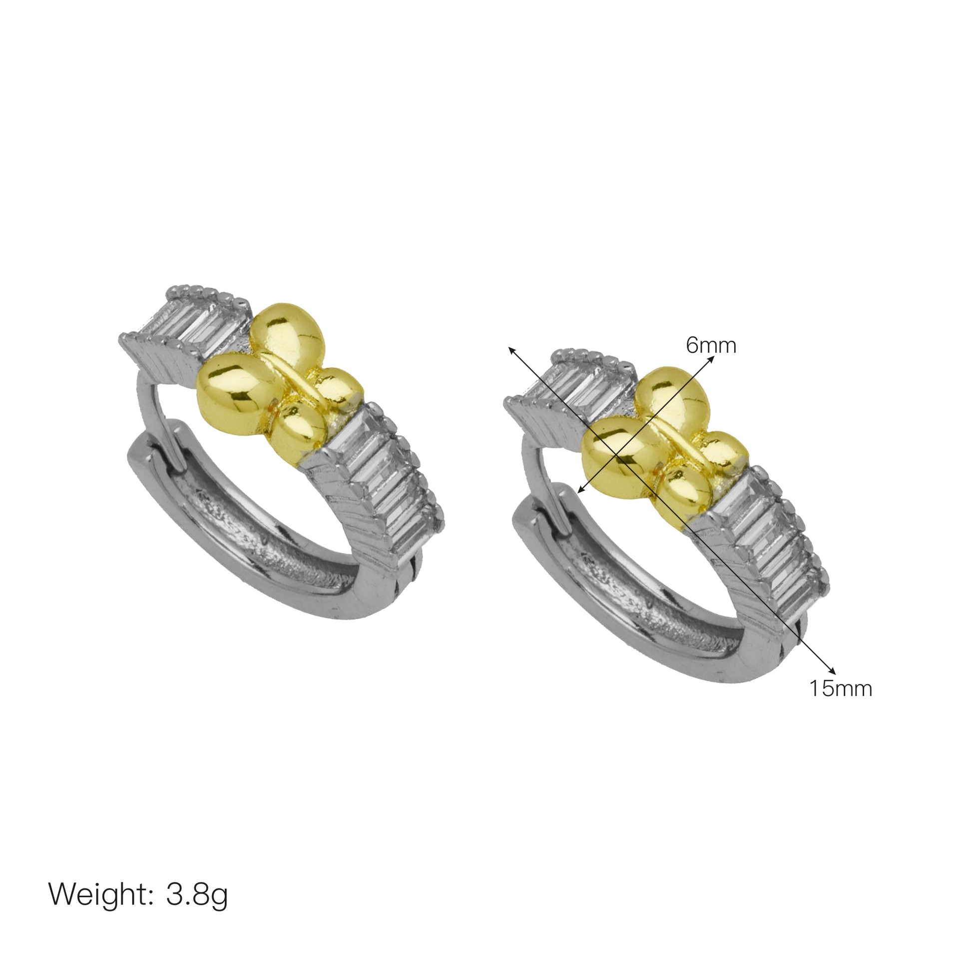 Messing Huggie Ohrreifen, mit kubischer Zirkonia, Druckguss-, für Frau, keine, frei von Nickel, Blei & Kadmium, 20.60x10.76x18.60mm, 10PaarePärchen/Tasche, verkauft von Tasche