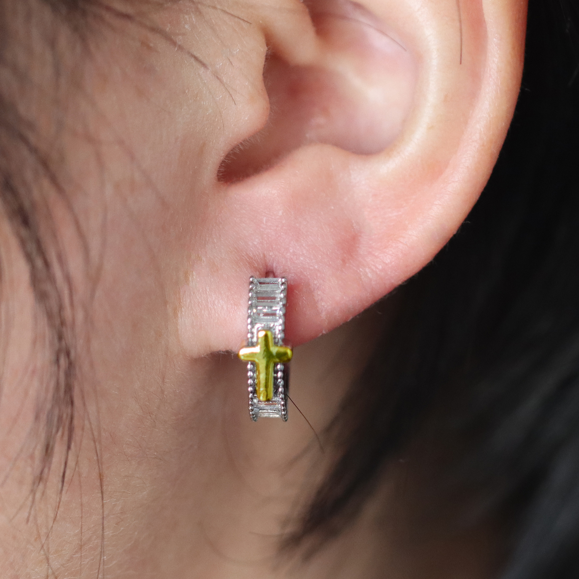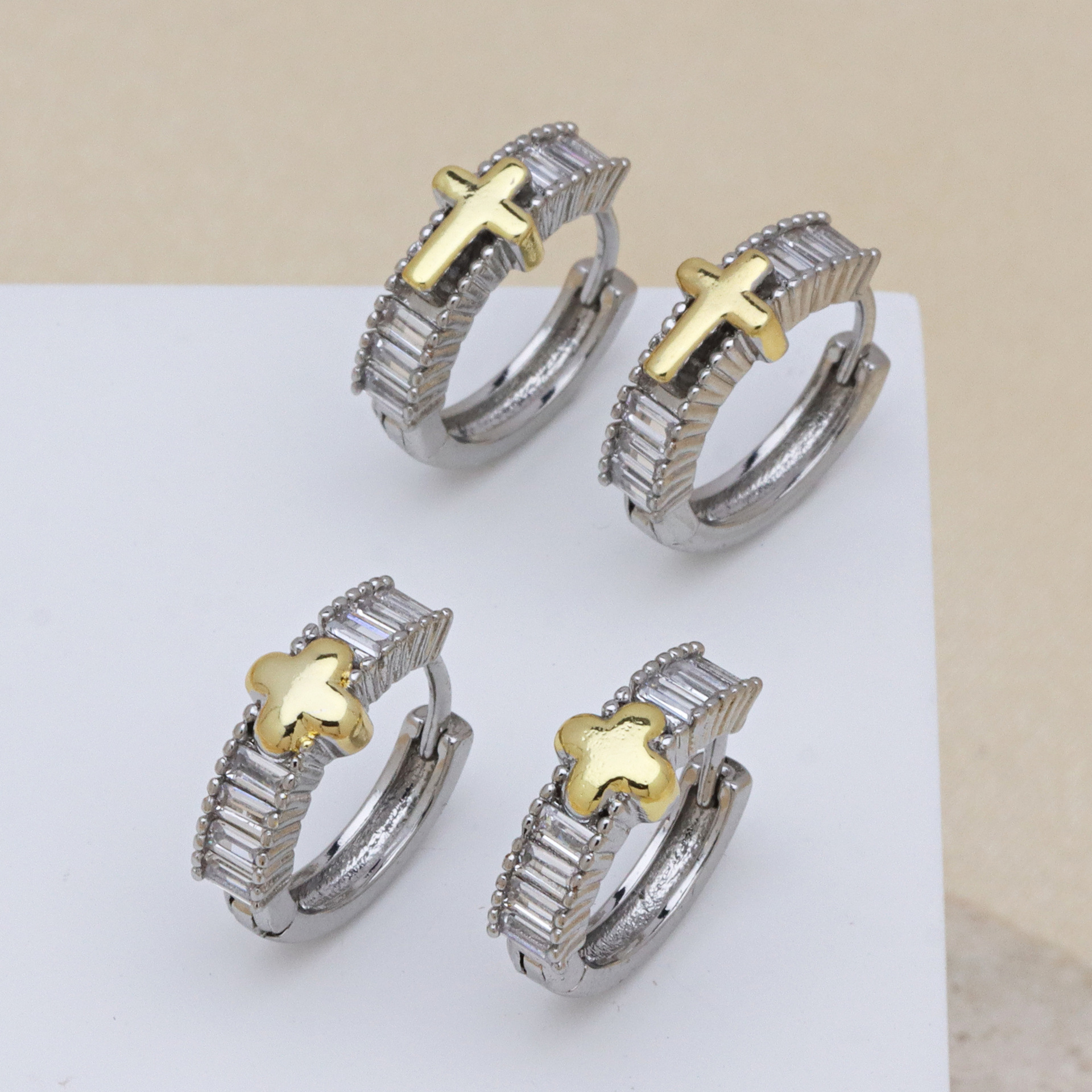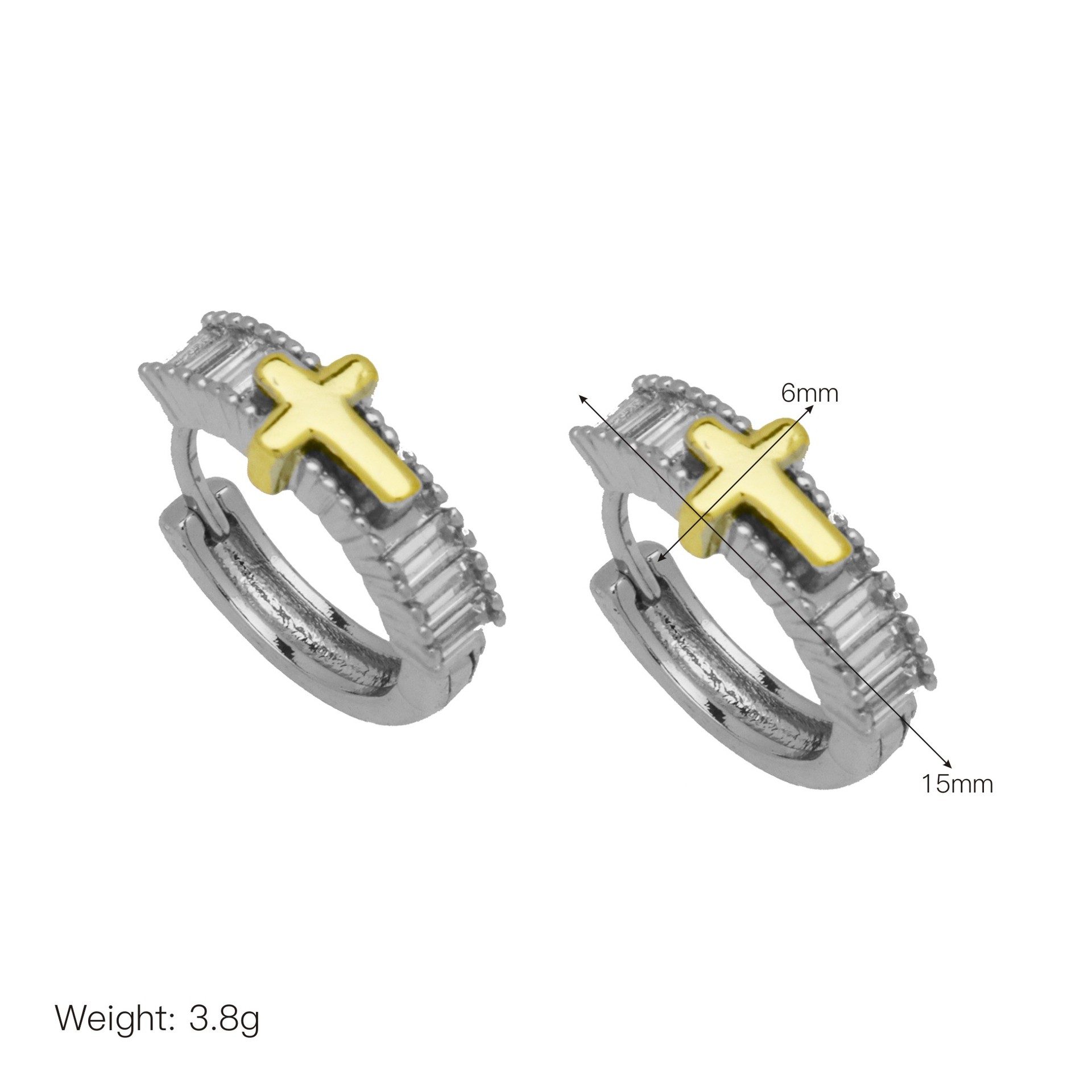 Messing Huggie Ohrreifen, mit kubischer Zirkonia, Druckguss-, für Frau, keine, frei von Nickel, Blei & Kadmium, 20.60x10.76x18.60mm, 10PaarePärchen/Tasche, verkauft von Tasche