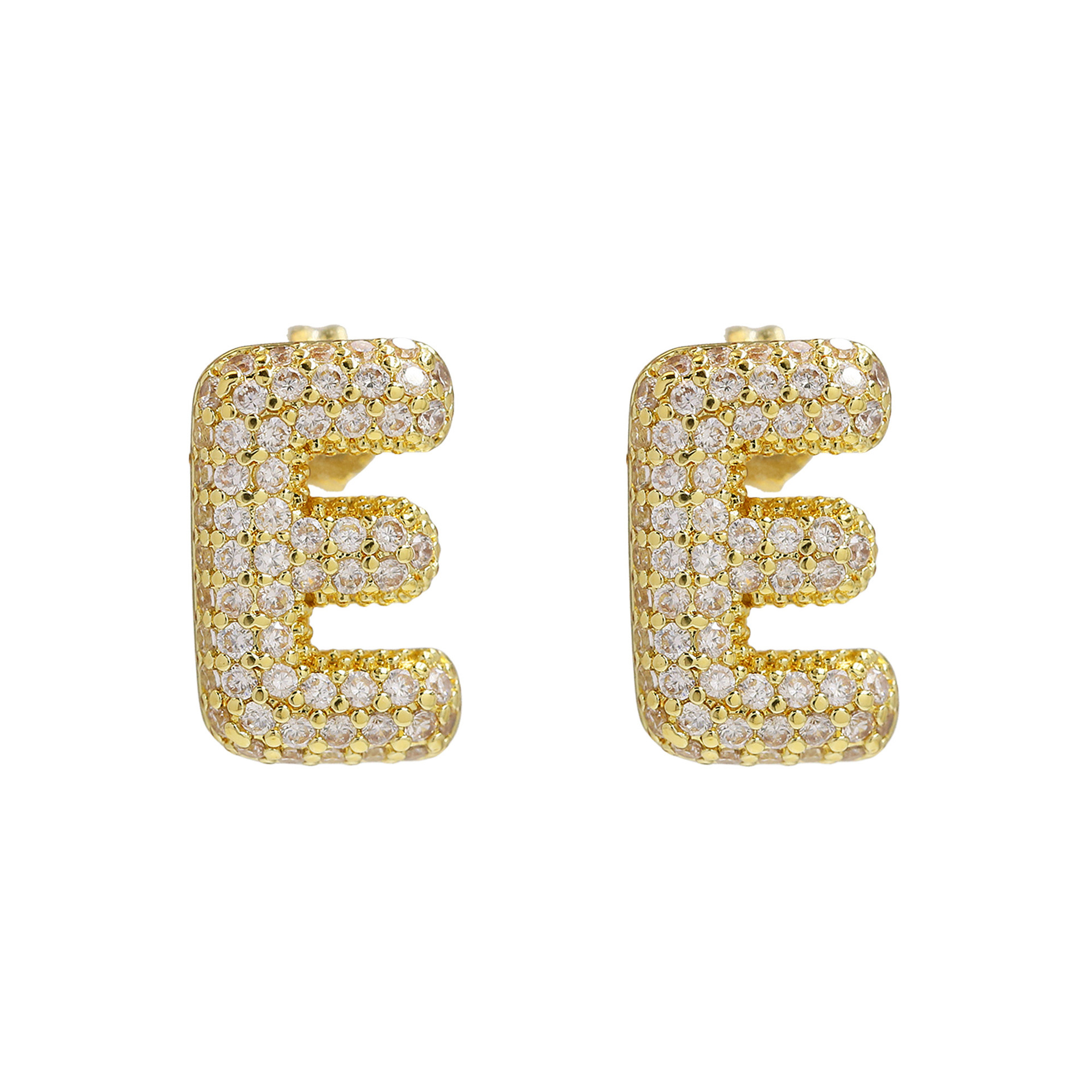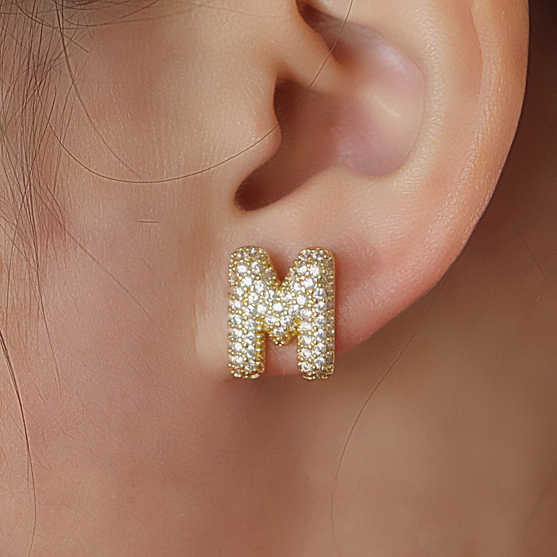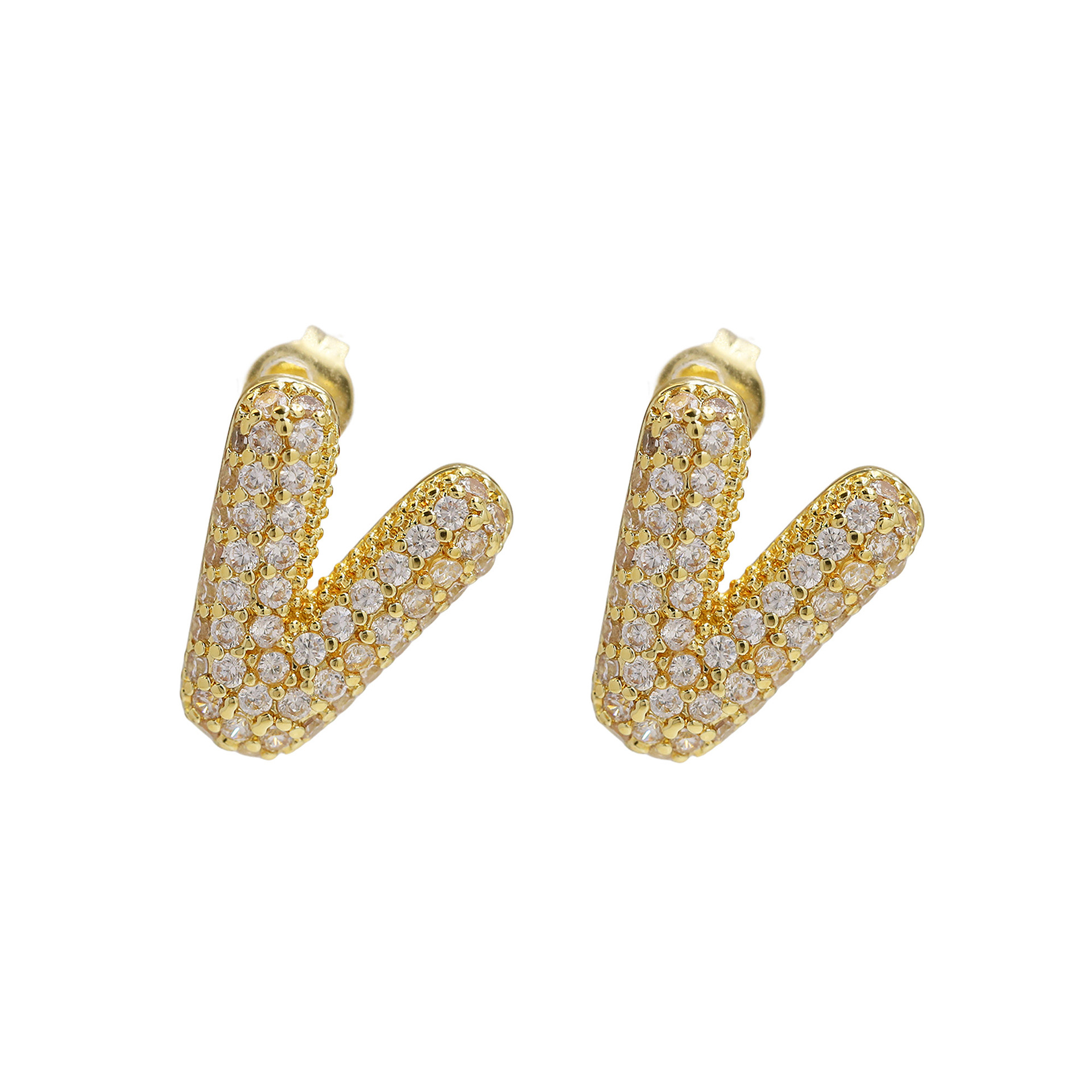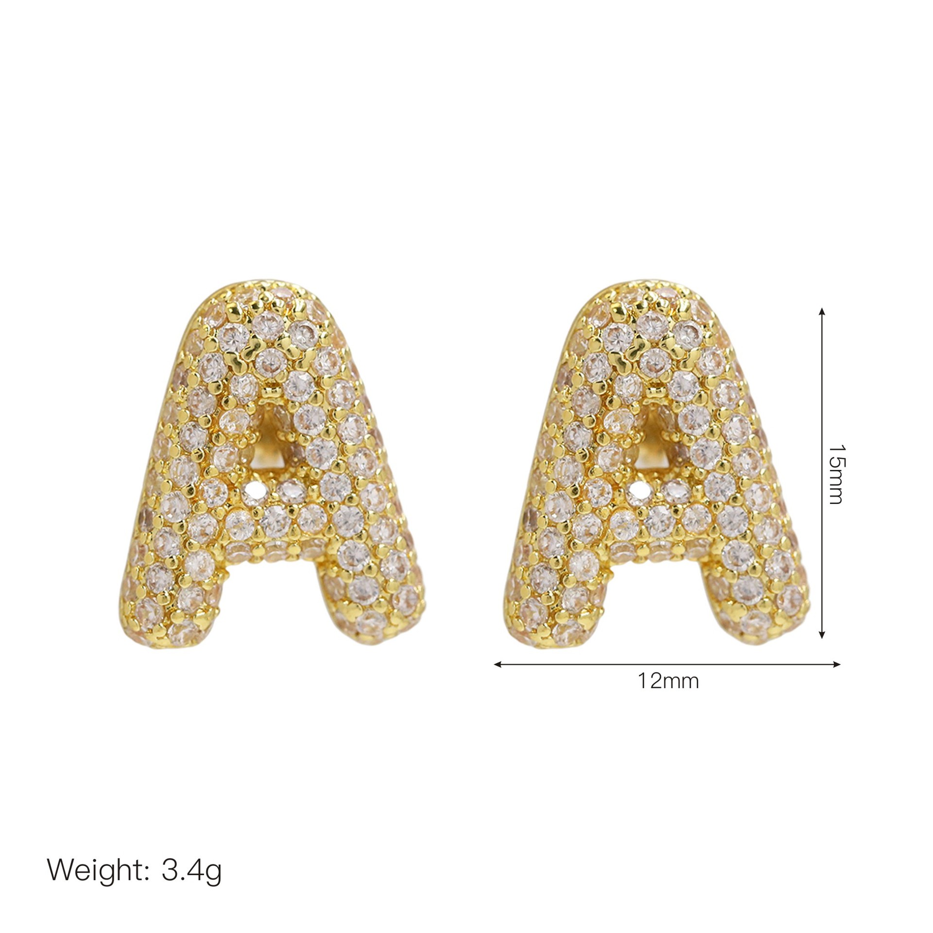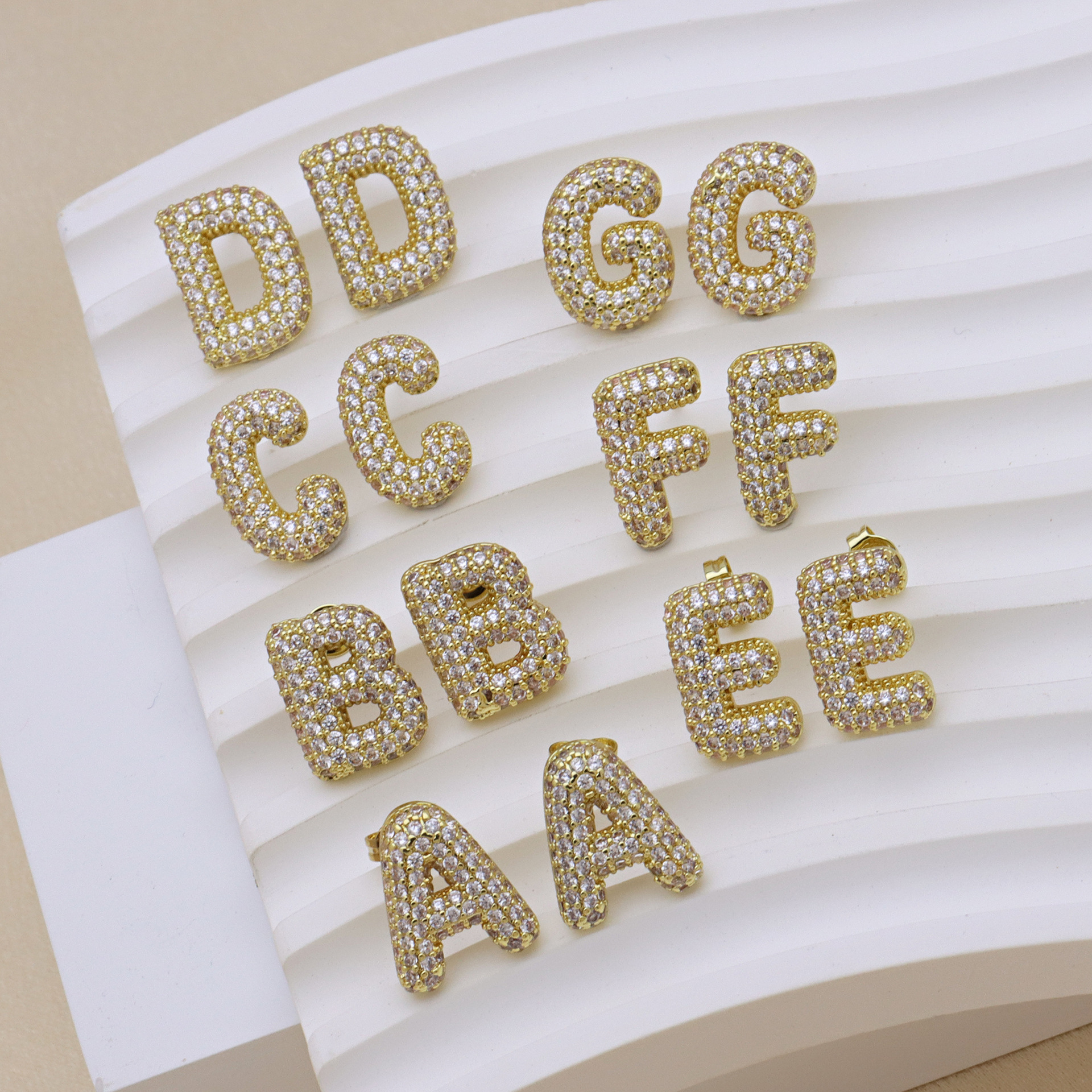 Befestiger Zirkonia Messing Ohrring, Alphabet-Buchstabe, goldfarben plattiert, Buchstaben sind von A bis Z & Micro pave Zirkonia & für Frau, keine, 12x15mm, verkauft von Paar