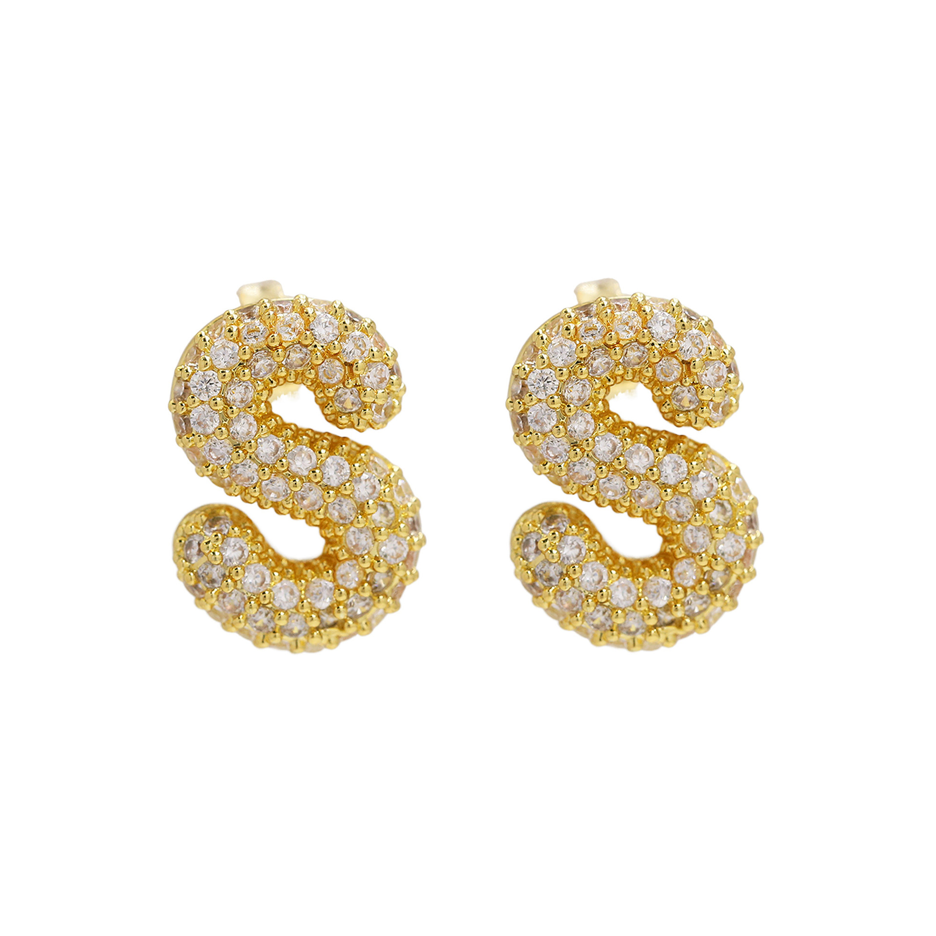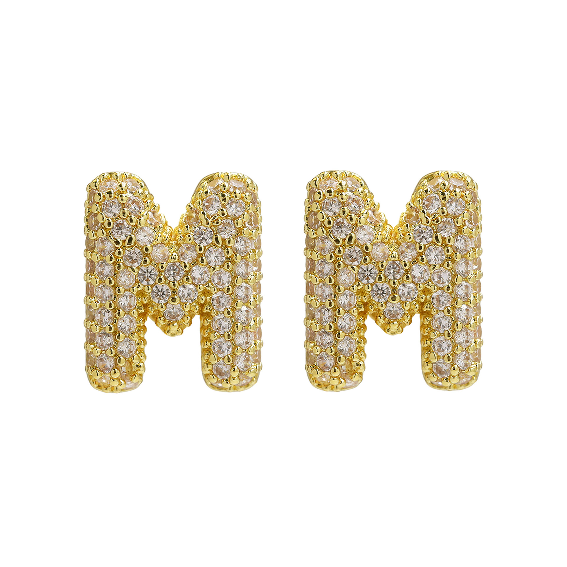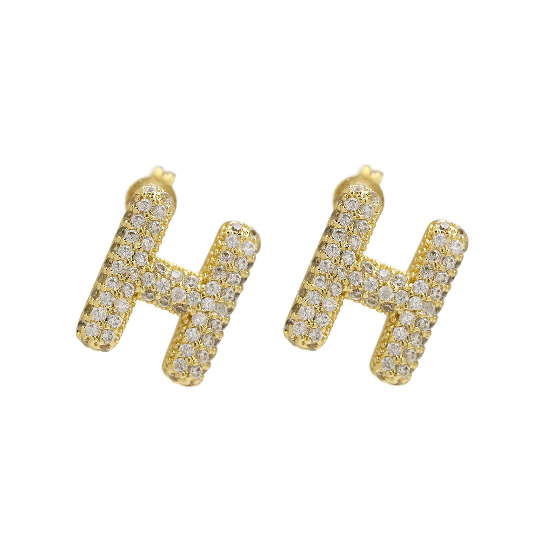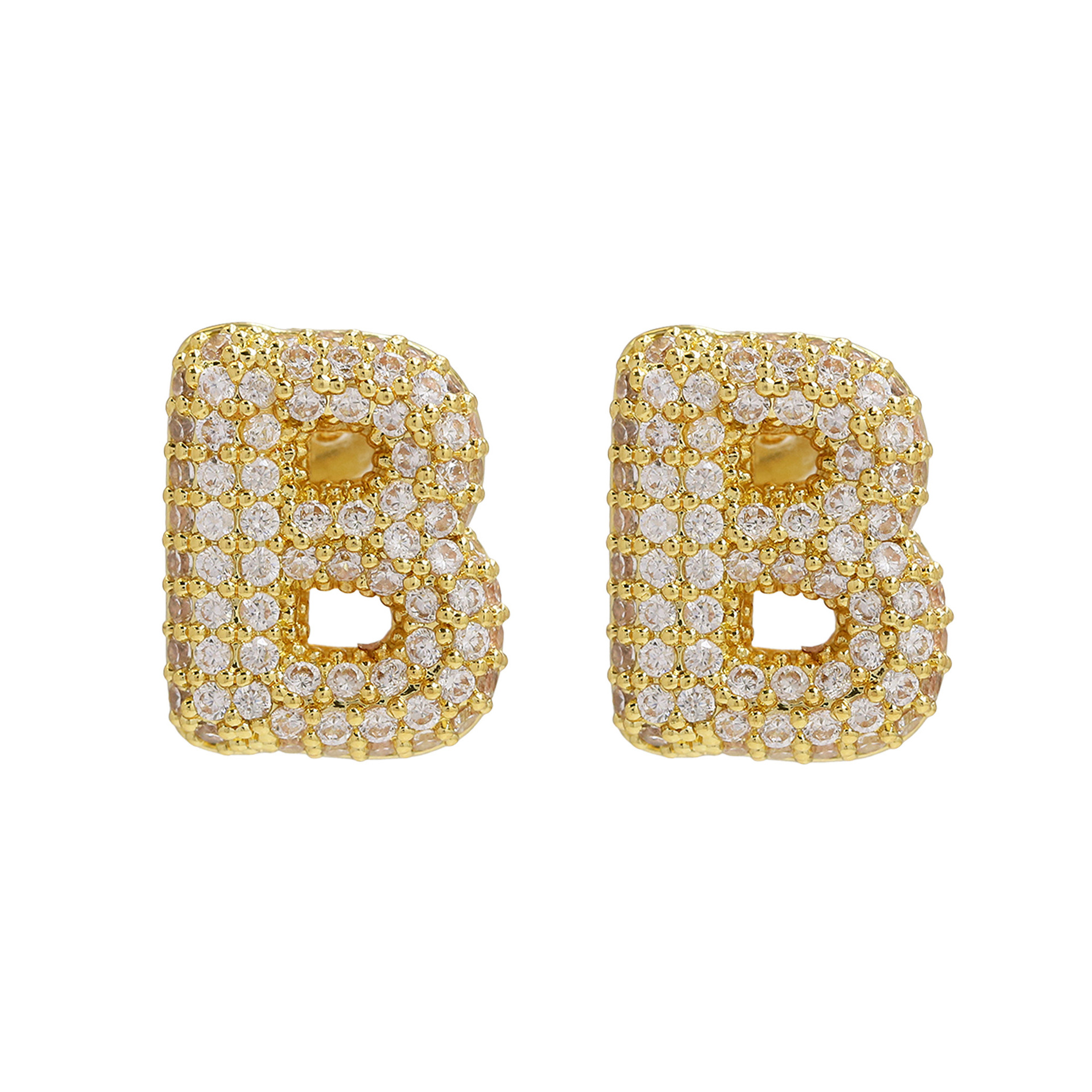 Befestiger Zirkonia Messing Ohrring, Alphabet-Buchstabe, goldfarben plattiert, Buchstaben sind von A bis Z & Micro pave Zirkonia & für Frau, keine, 12x15mm, verkauft von Paar