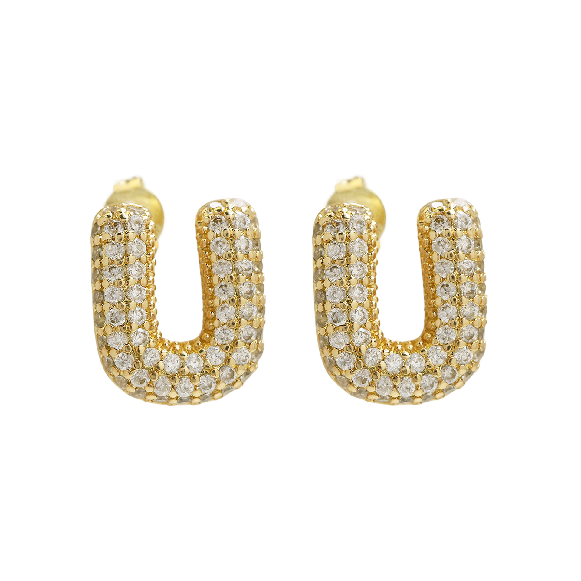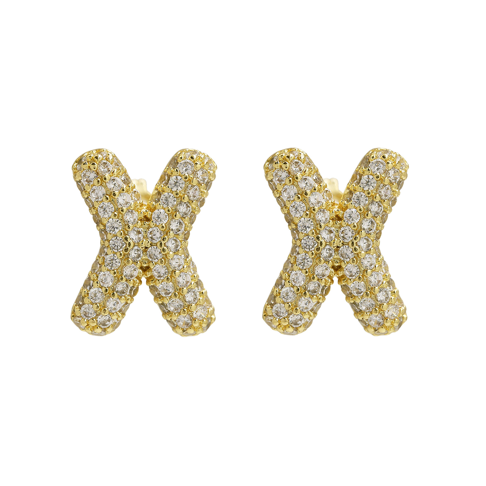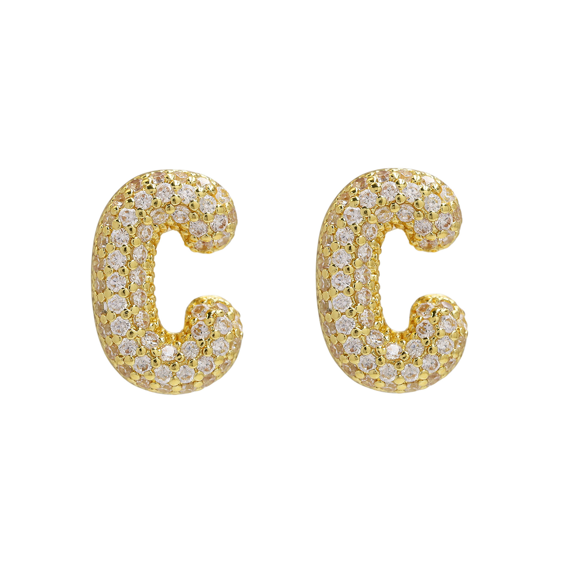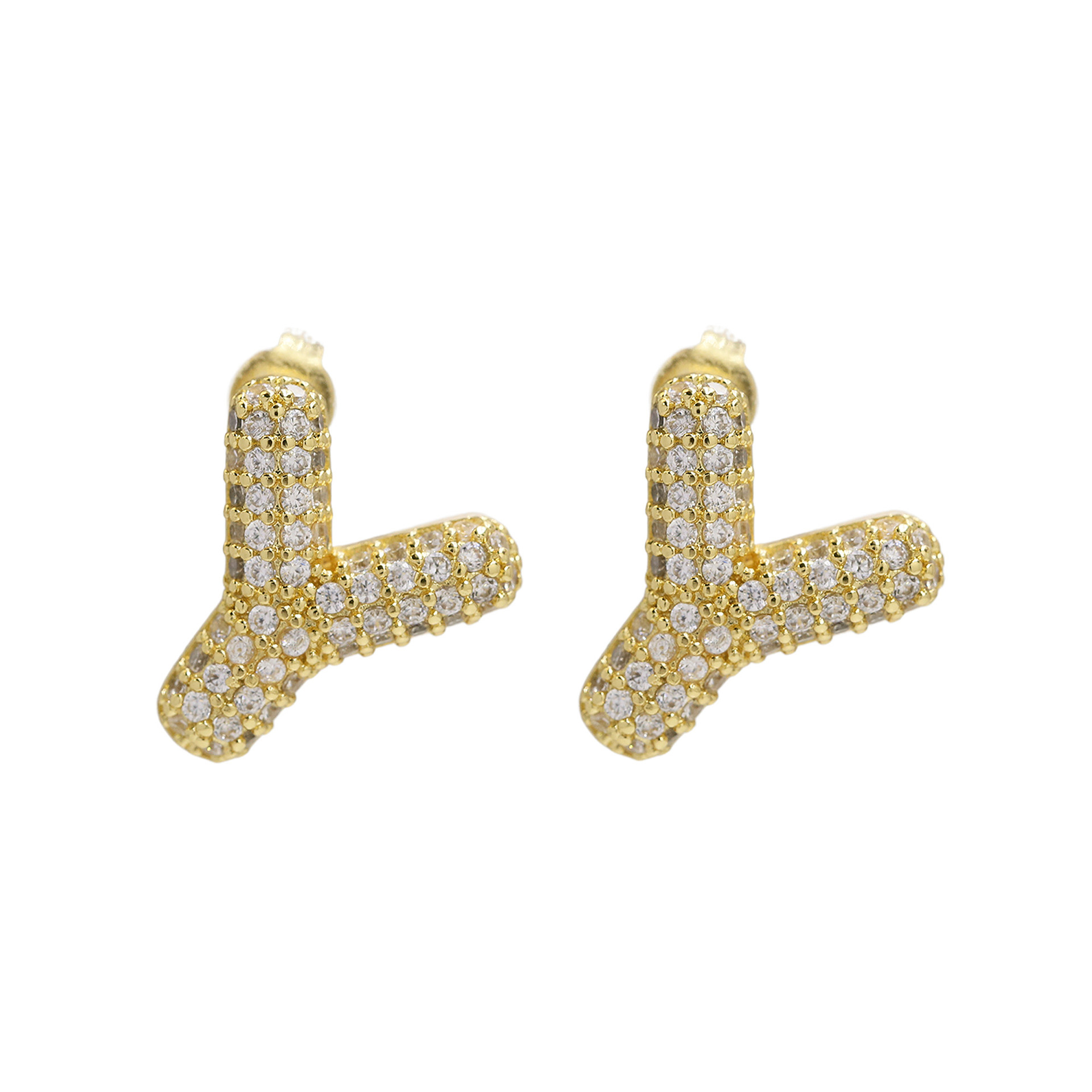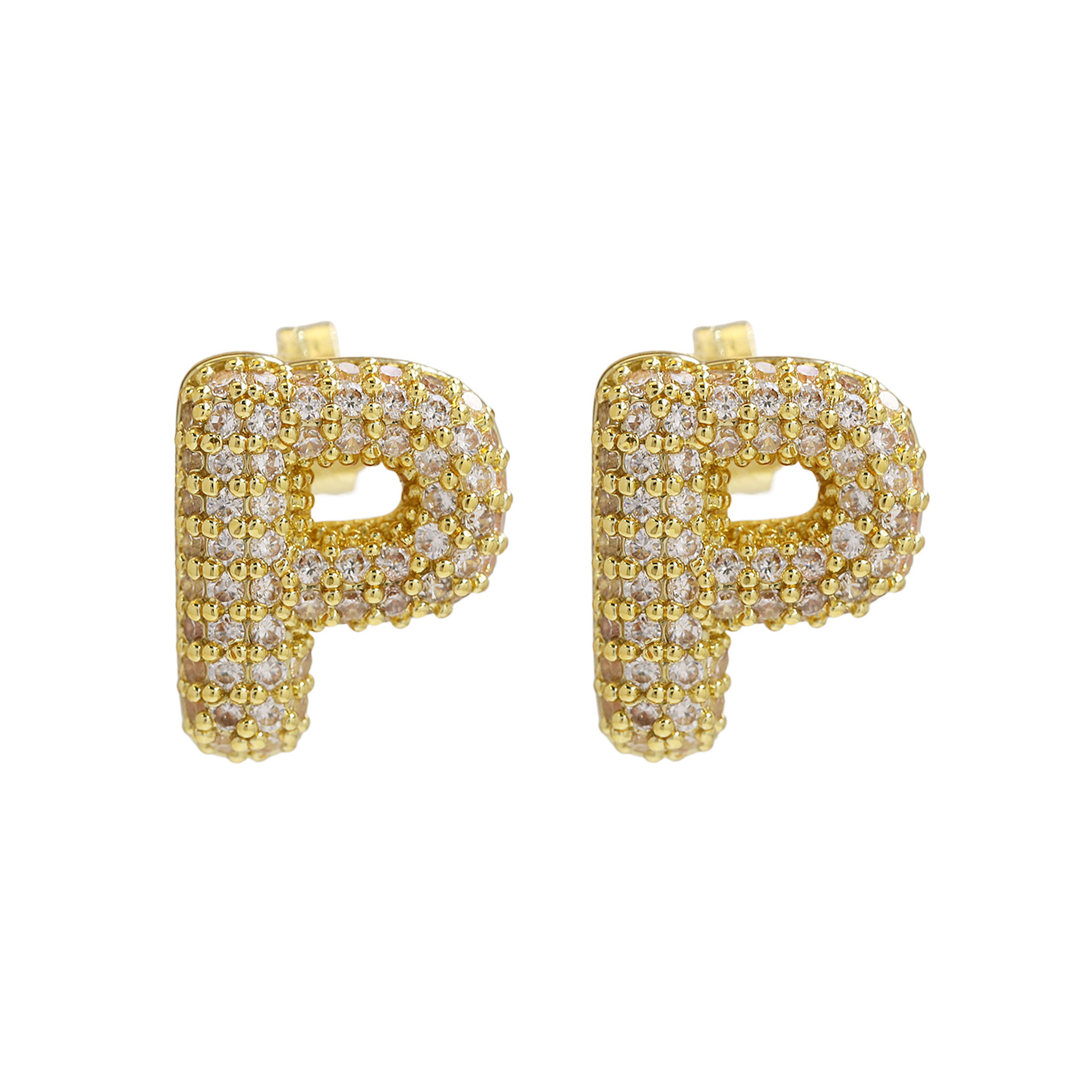 Befestiger Zirkonia Messing Ohrring, Alphabet-Buchstabe, goldfarben plattiert, Buchstaben sind von A bis Z & Micro pave Zirkonia & für Frau, keine, 12x15mm, verkauft von Paar