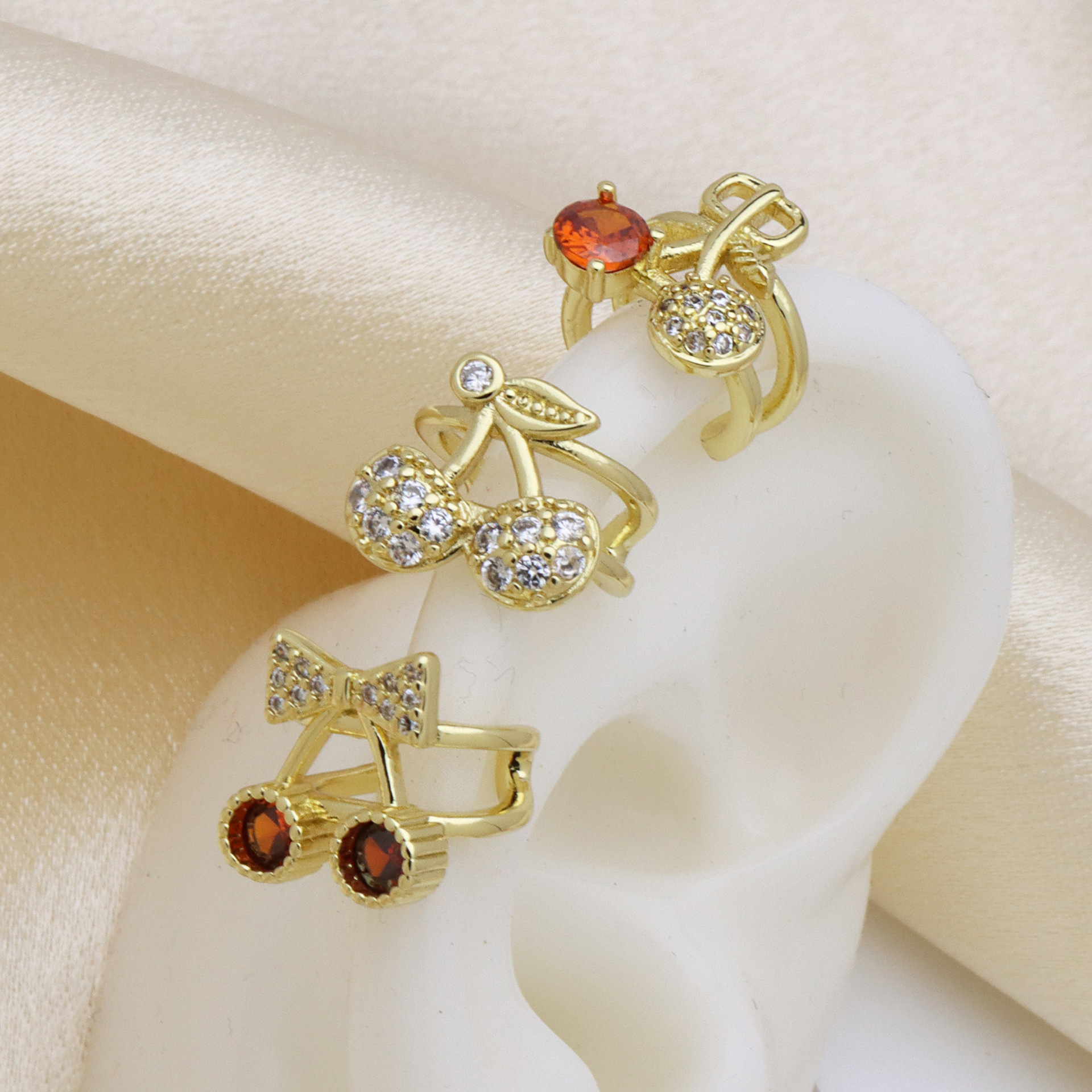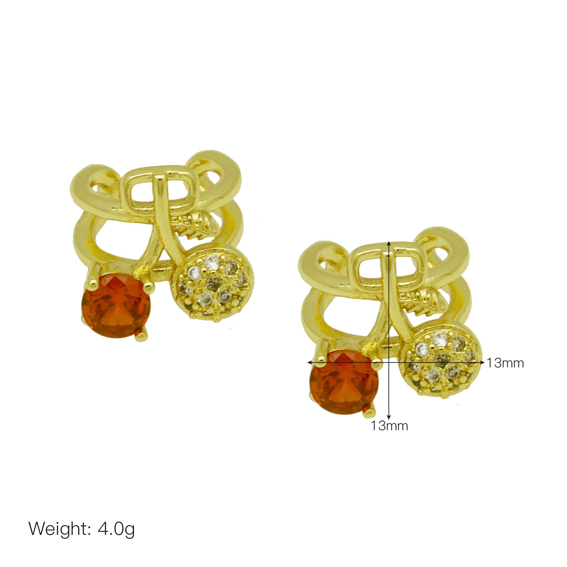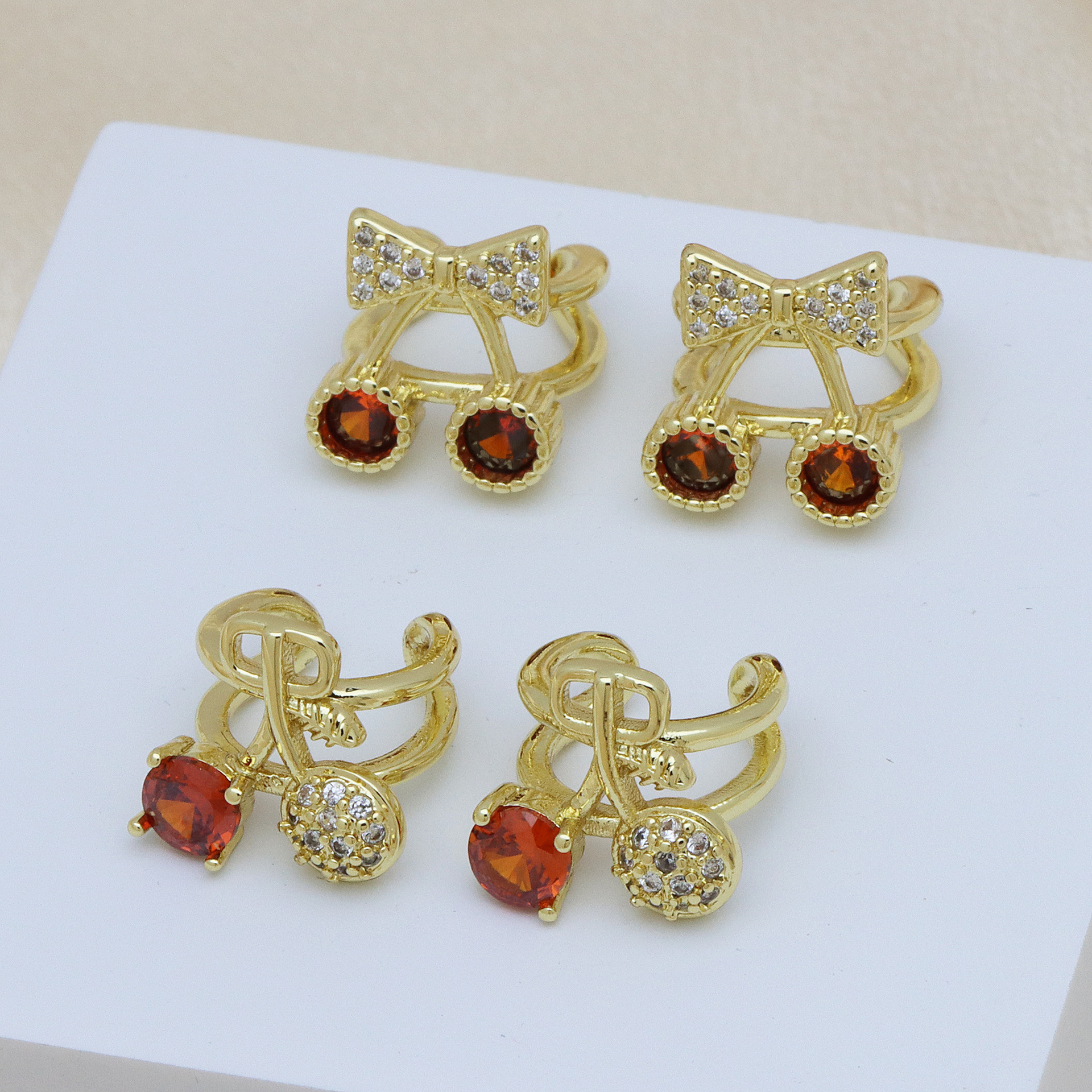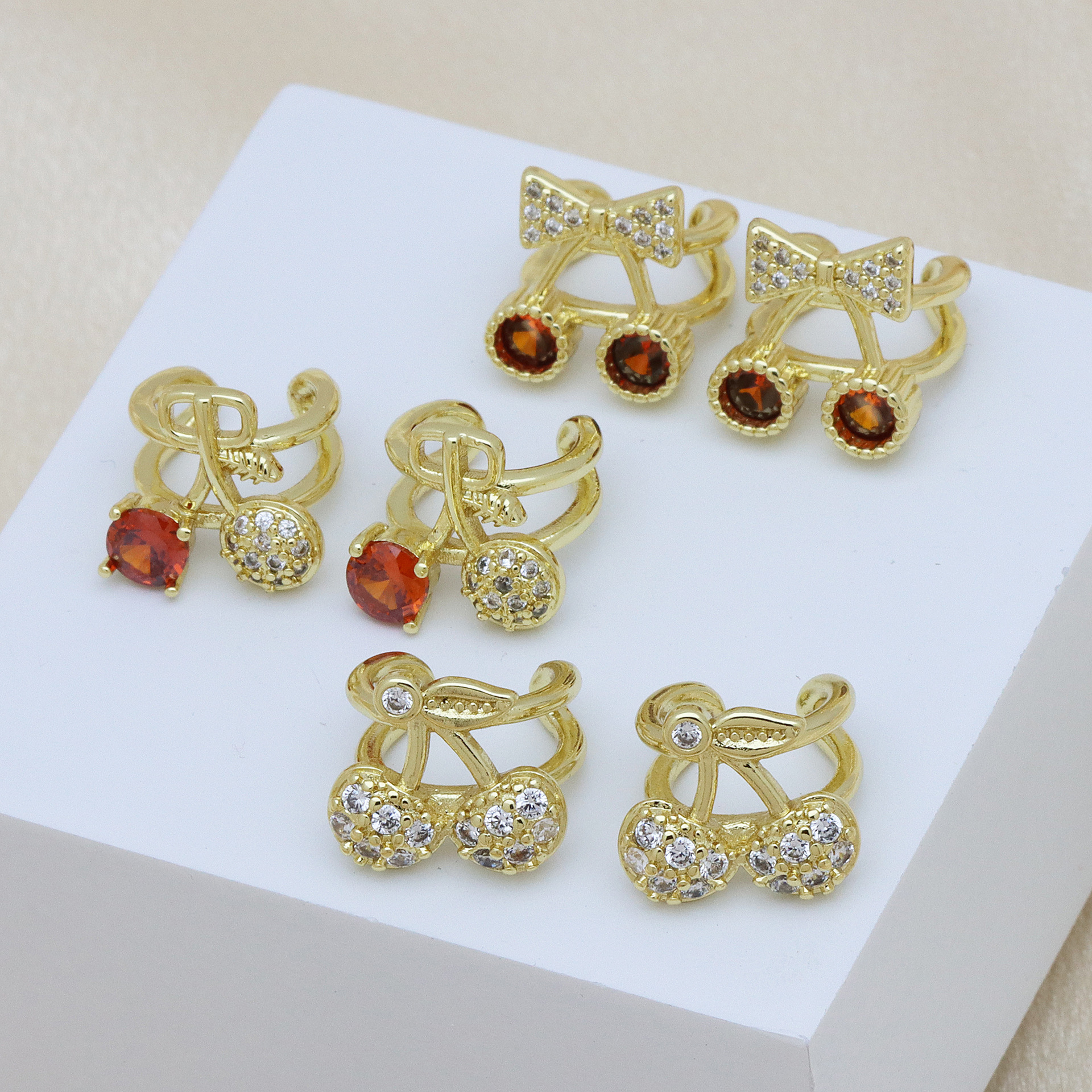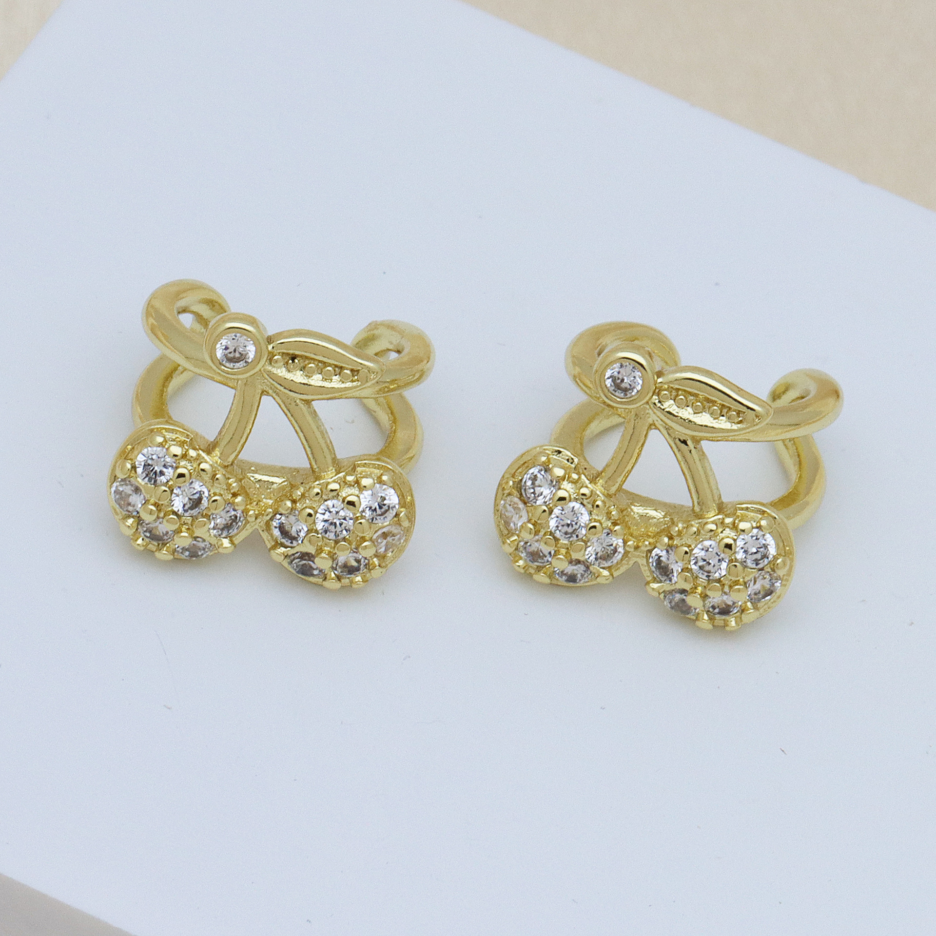 Befestiger Zirkonia Messing Ohrring, Kirsche, goldfarben plattiert, verschiedene Stile für Wahl & Micro pave Zirkonia & für Frau, keine, verkauft von Paar