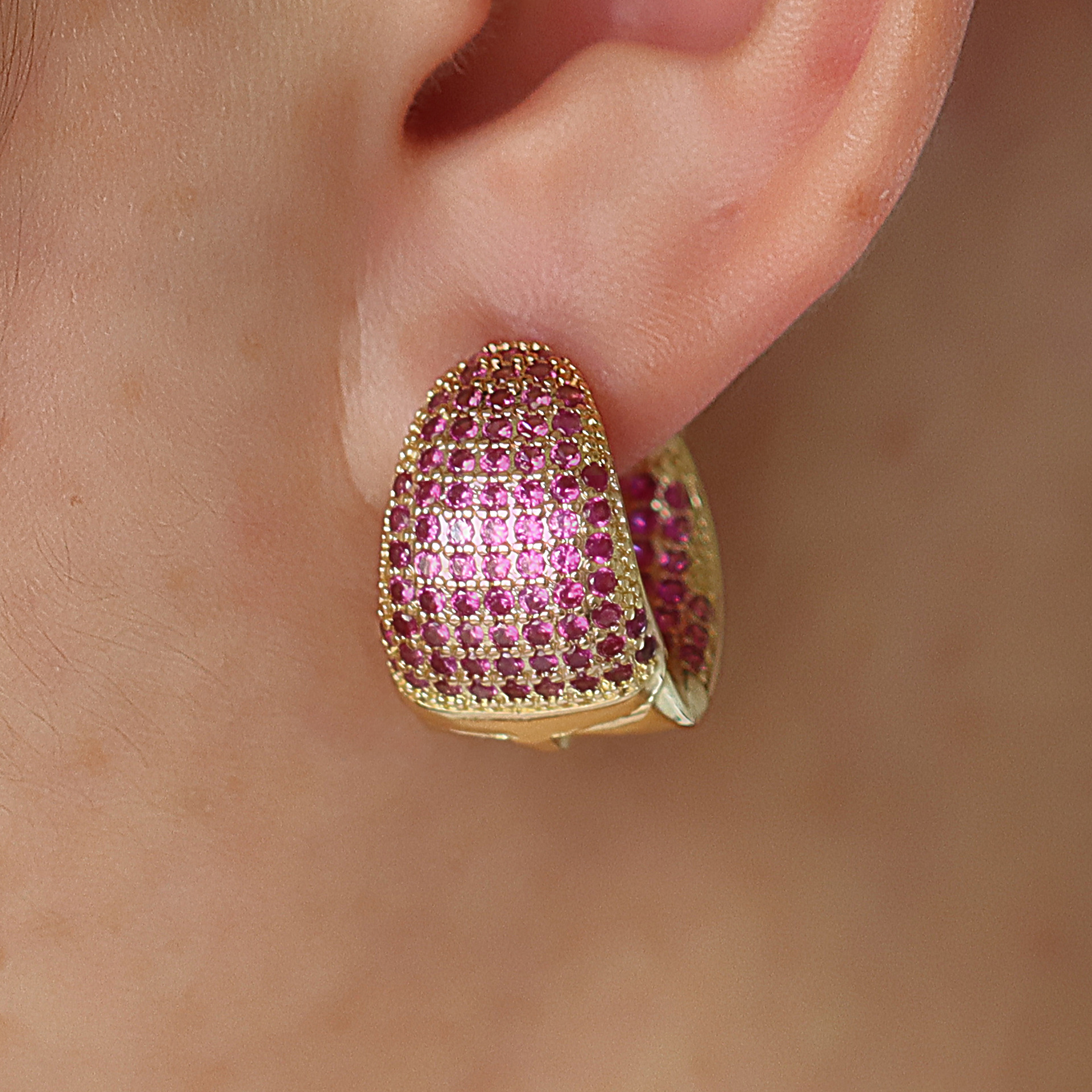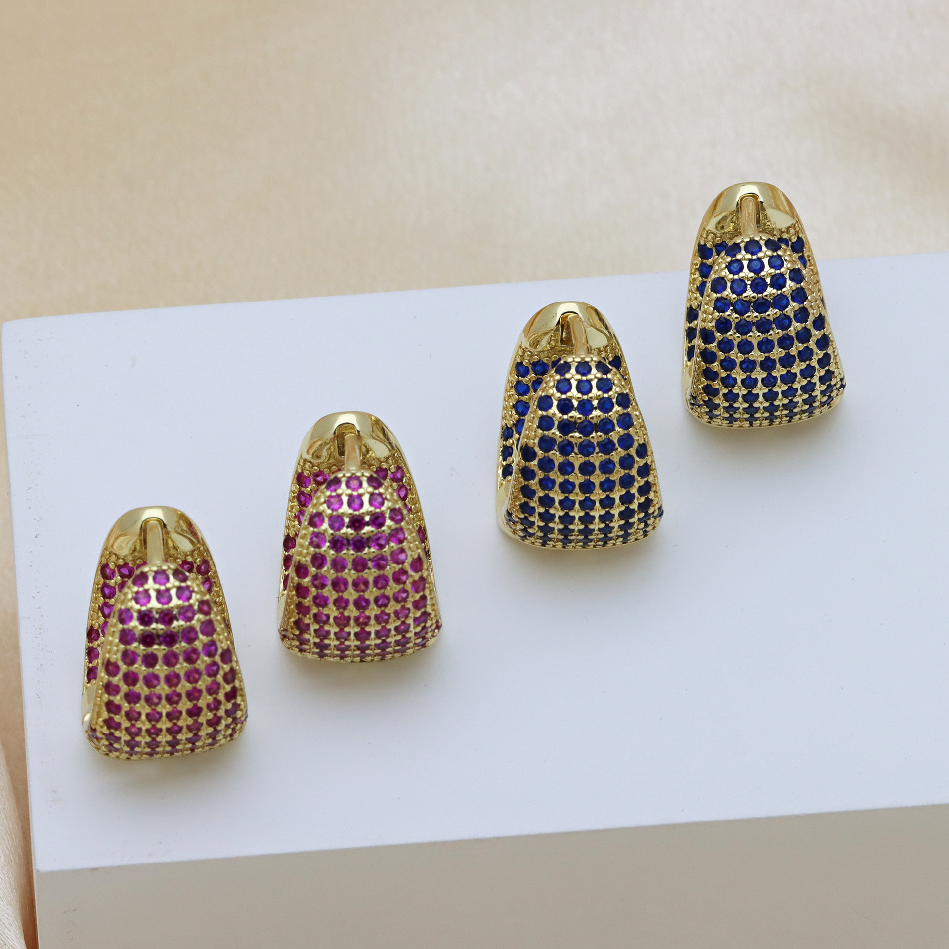 Messing Huggie Ohrreifen, mit kubischer Zirkonia, Druckguss-, für Frau, keine, frei von Nickel, Blei & Kadmium, 20.60x10.76x18.60mm, 10PaarePärchen/Tasche, verkauft von Tasche
