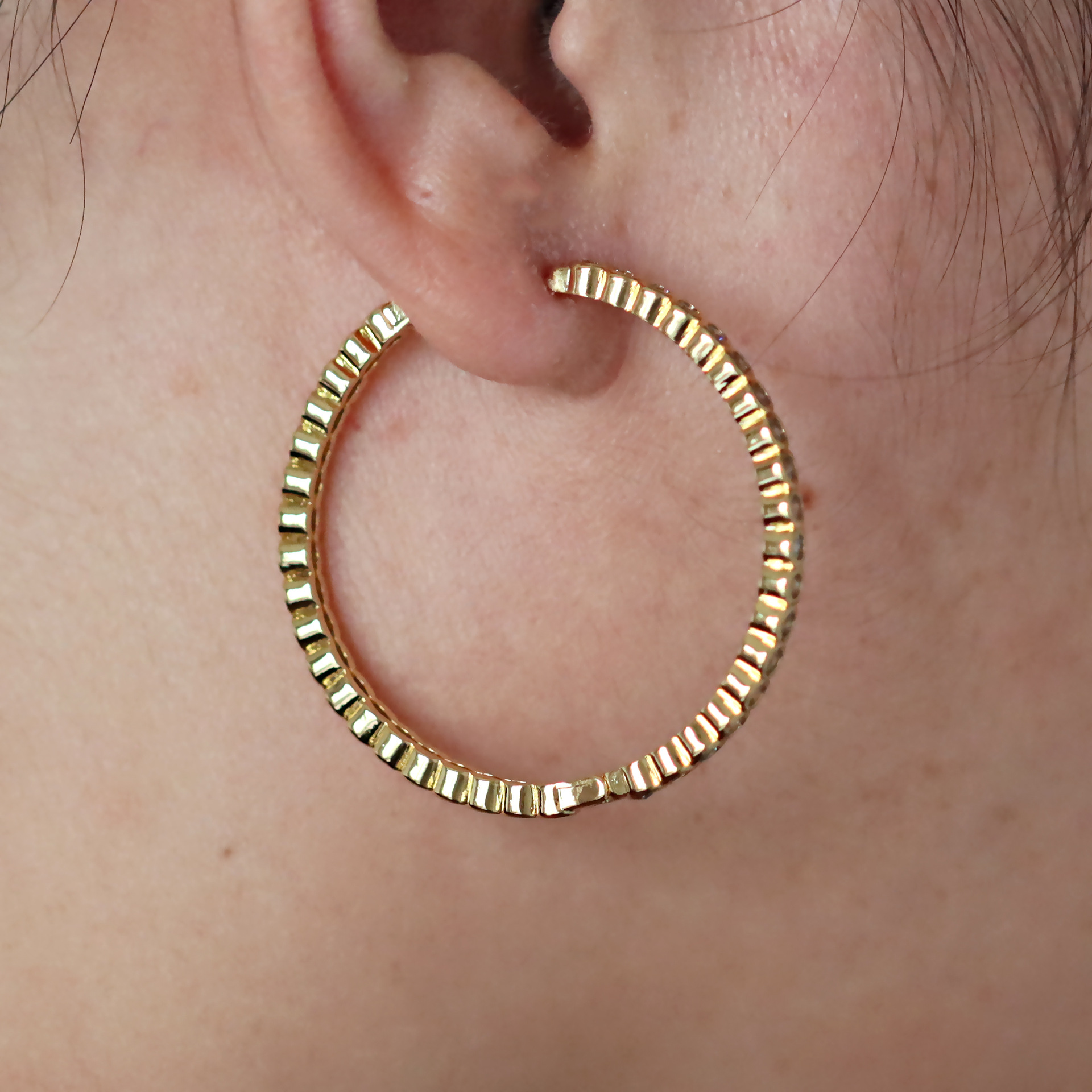 Messing Huggie Ohrreifen, mit kubischer Zirkonia, Druckguss-, für Frau, keine, frei von Nickel, Blei & Kadmium, 20.60x10.76x18.60mm, 10PaarePärchen/Tasche, verkauft von Tasche