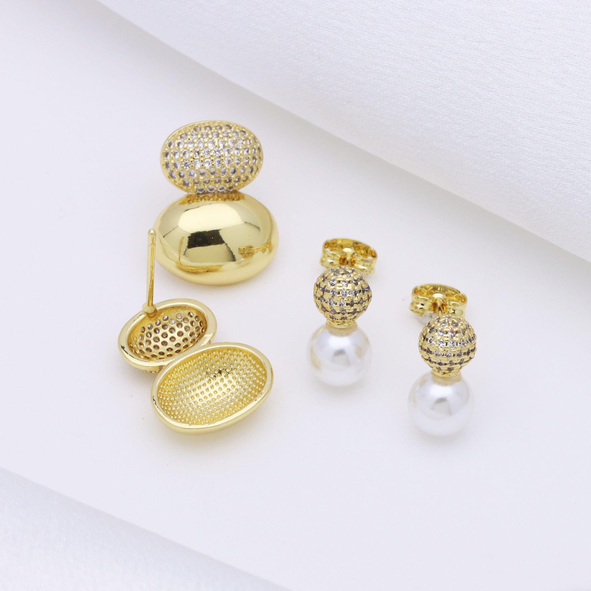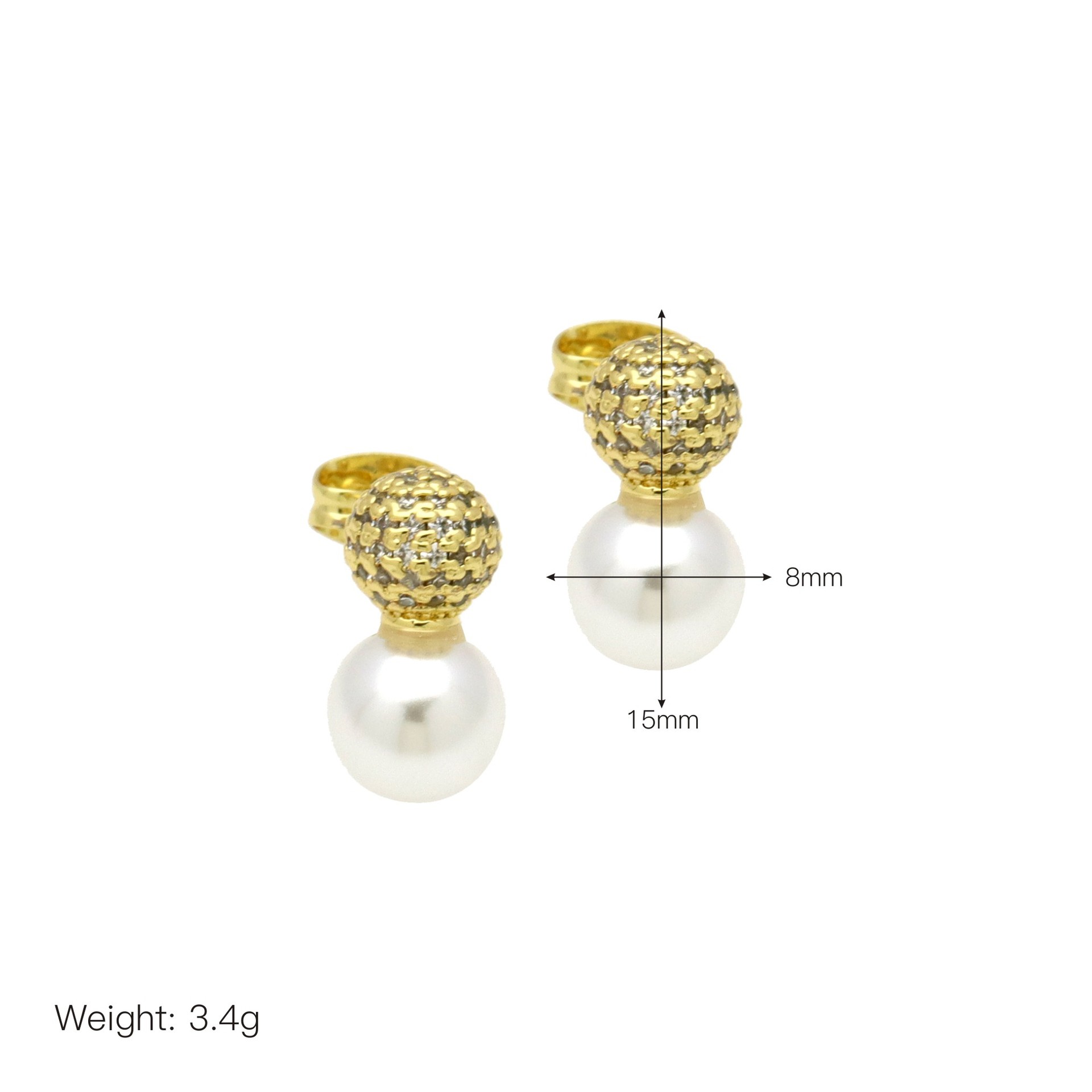 Befestiger Zirkonia Messing Ohrring, mit Kunststoff Perlen, goldfarben plattiert, verschiedene Stile für Wahl & Micro pave Zirkonia & für Frau, keine, verkauft von Paar