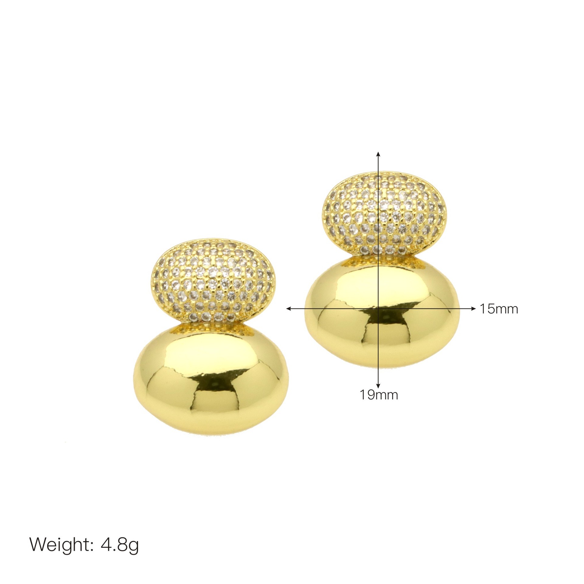 Befestiger Zirkonia Messing Ohrring, plattiert, Modeschmuck & Micro pave Zirkonia, keine, frei von Nickel, Blei & Kadmium, 70x50x10mm, verkauft von Paar
