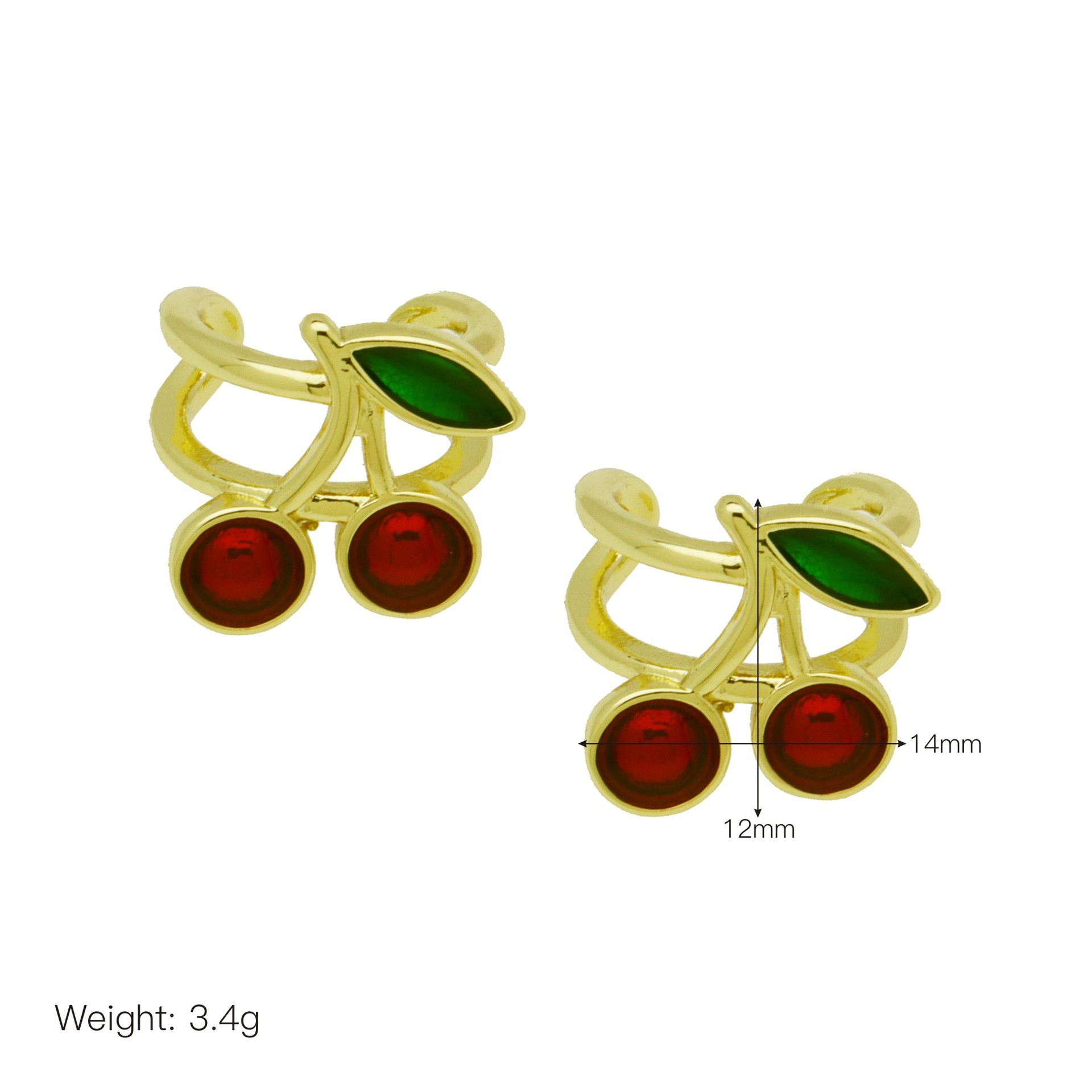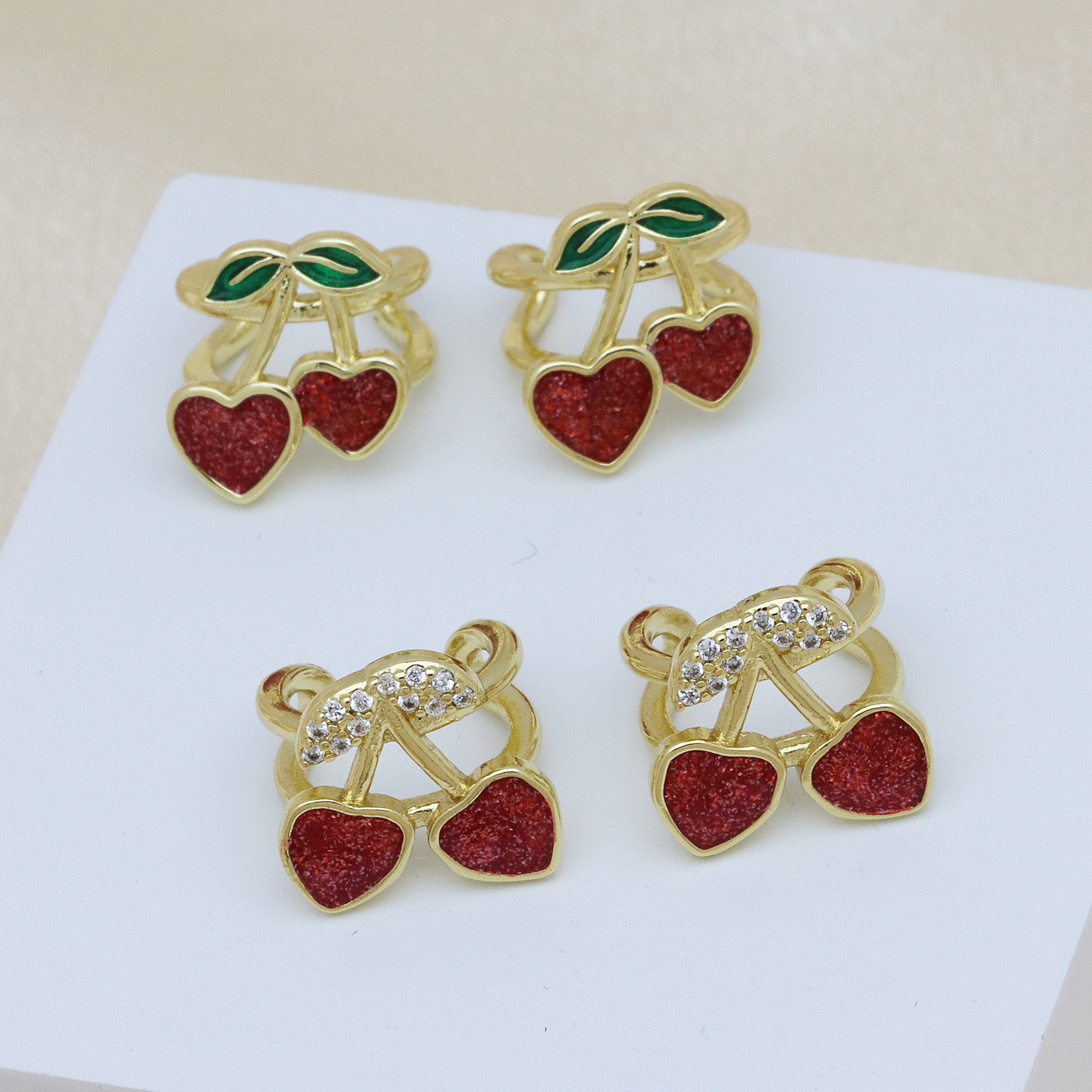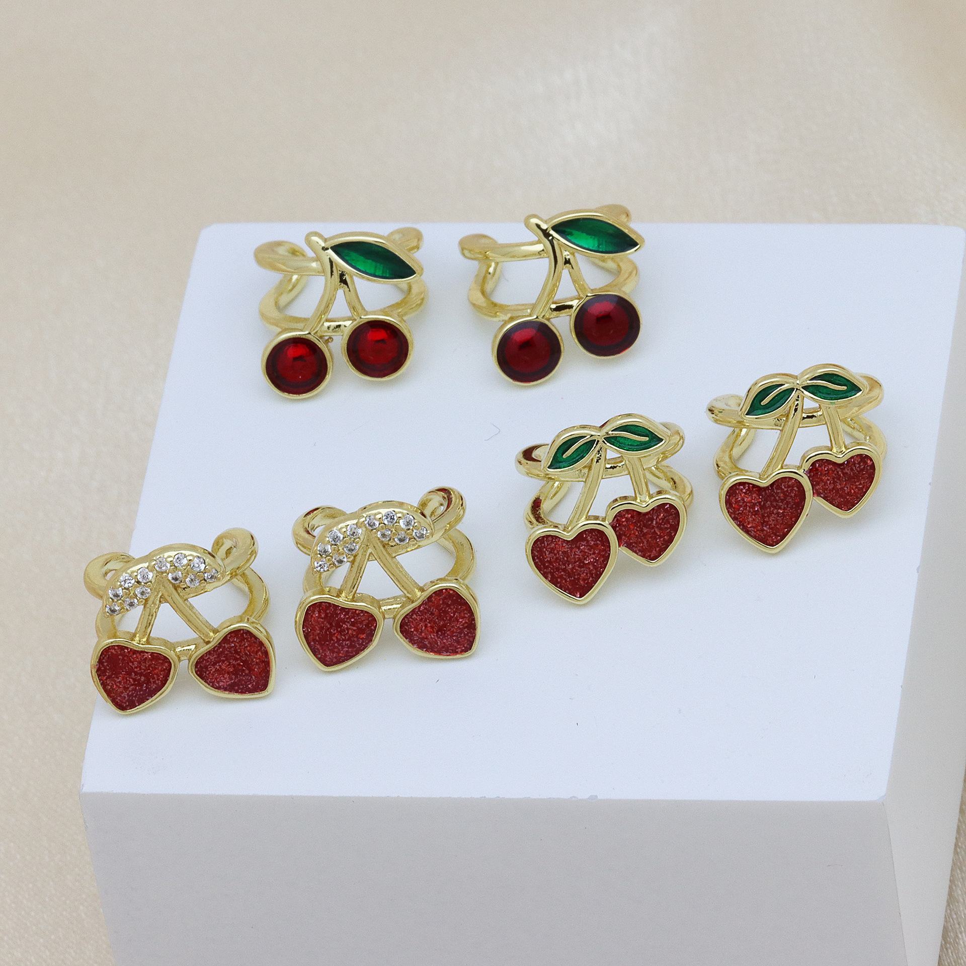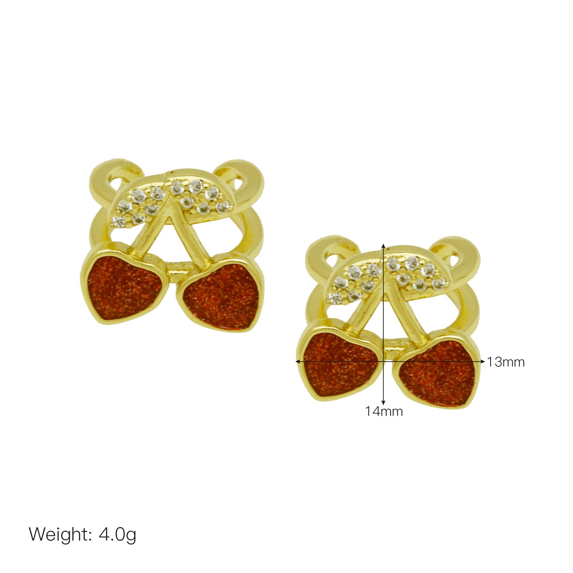 Befestiger Zirkonia Messing Ohrring, Kirsche, goldfarben plattiert, verschiedene Stile für Wahl & Micro pave Zirkonia & für Frau & Emaille, keine, verkauft von Paar