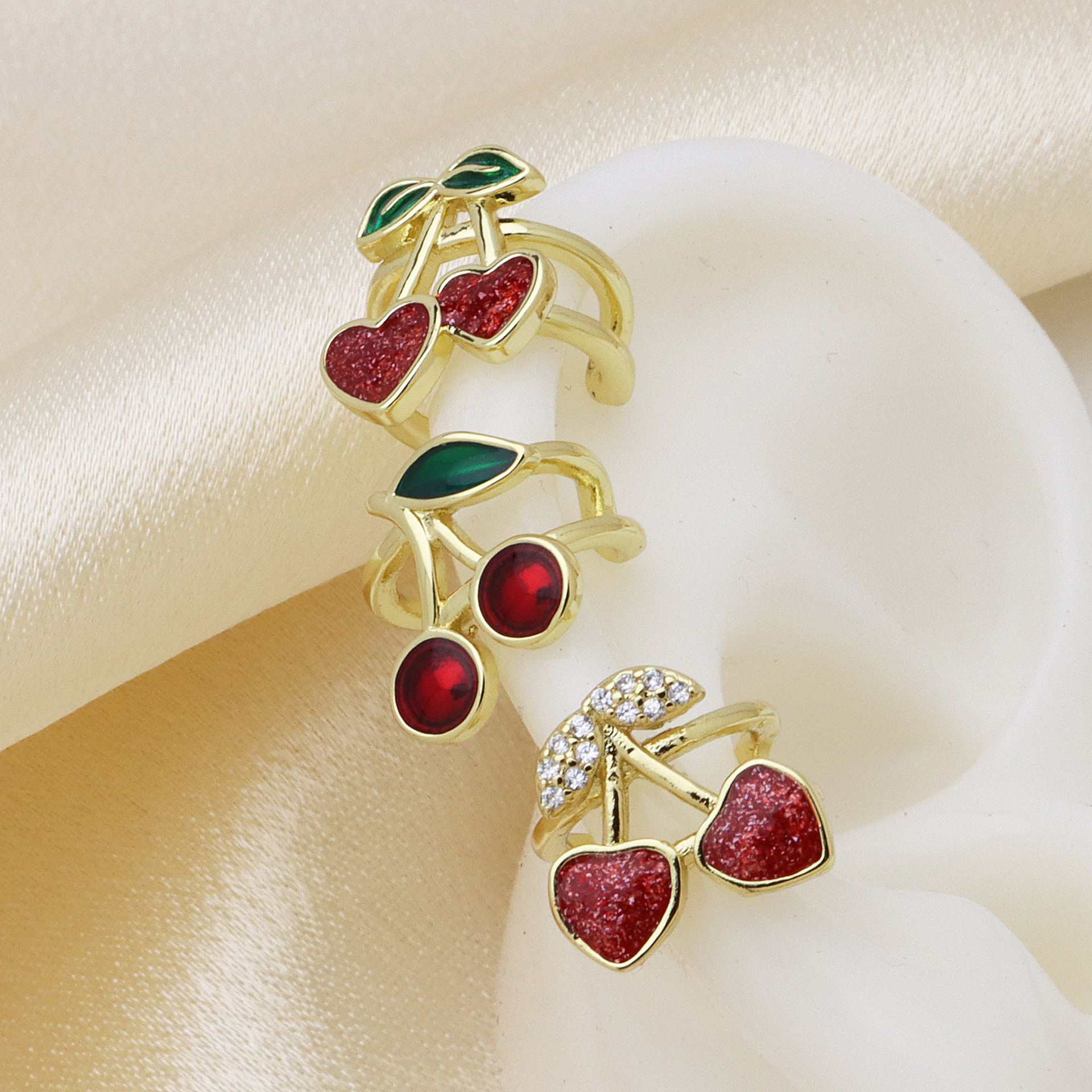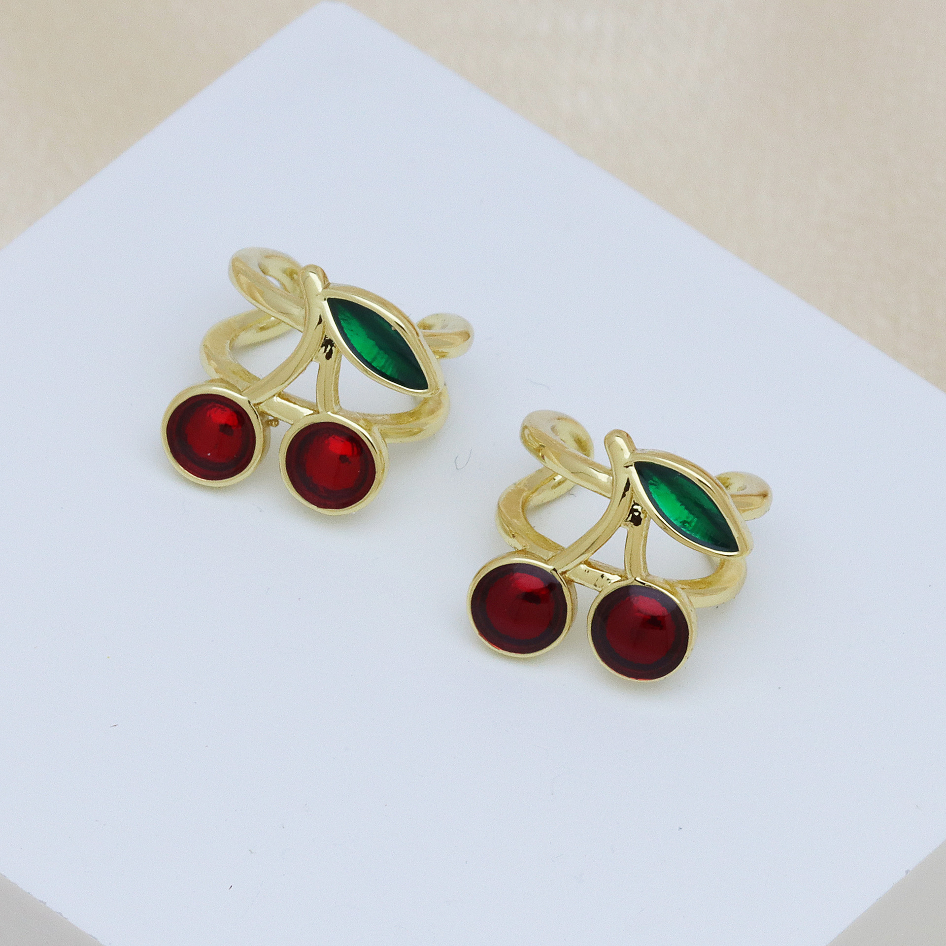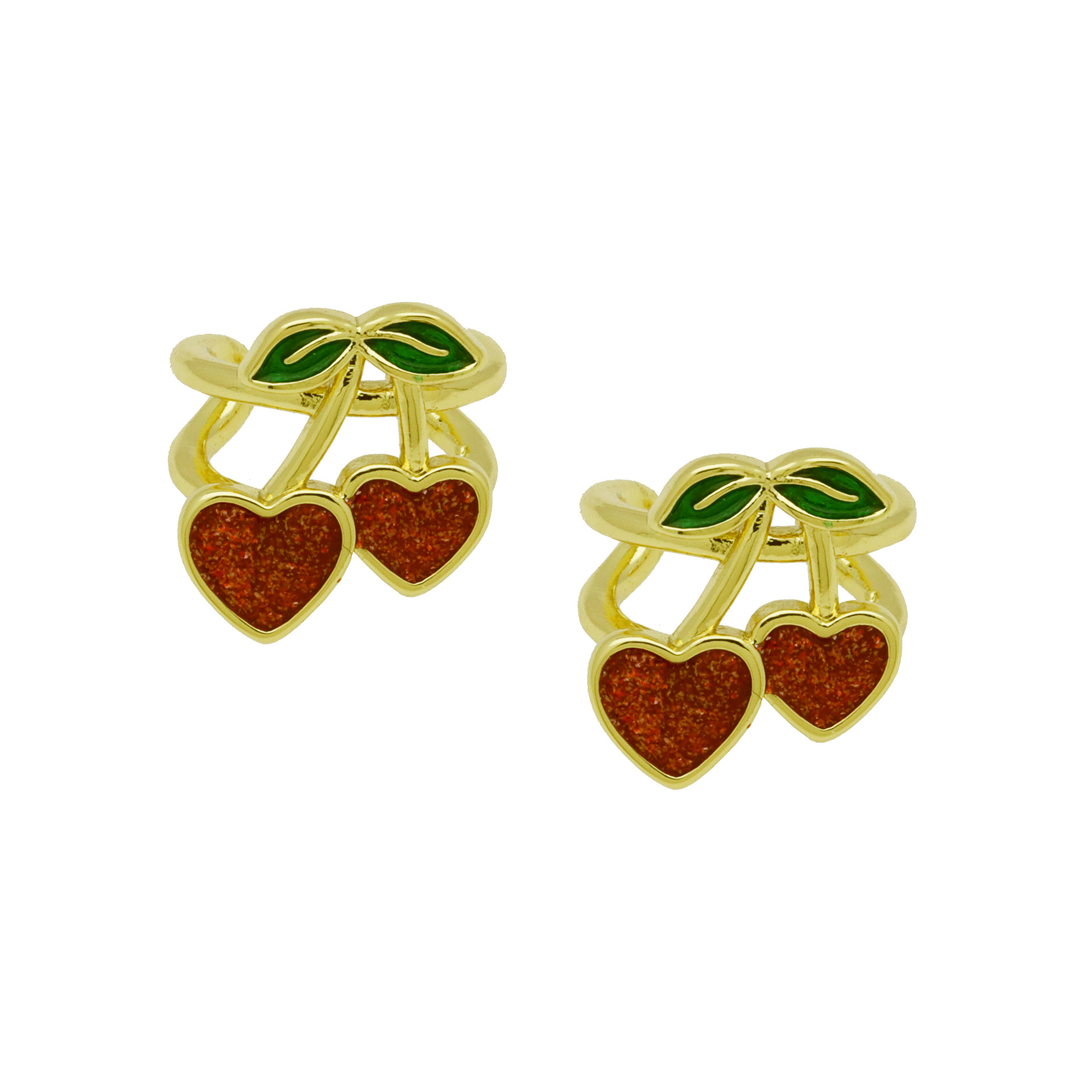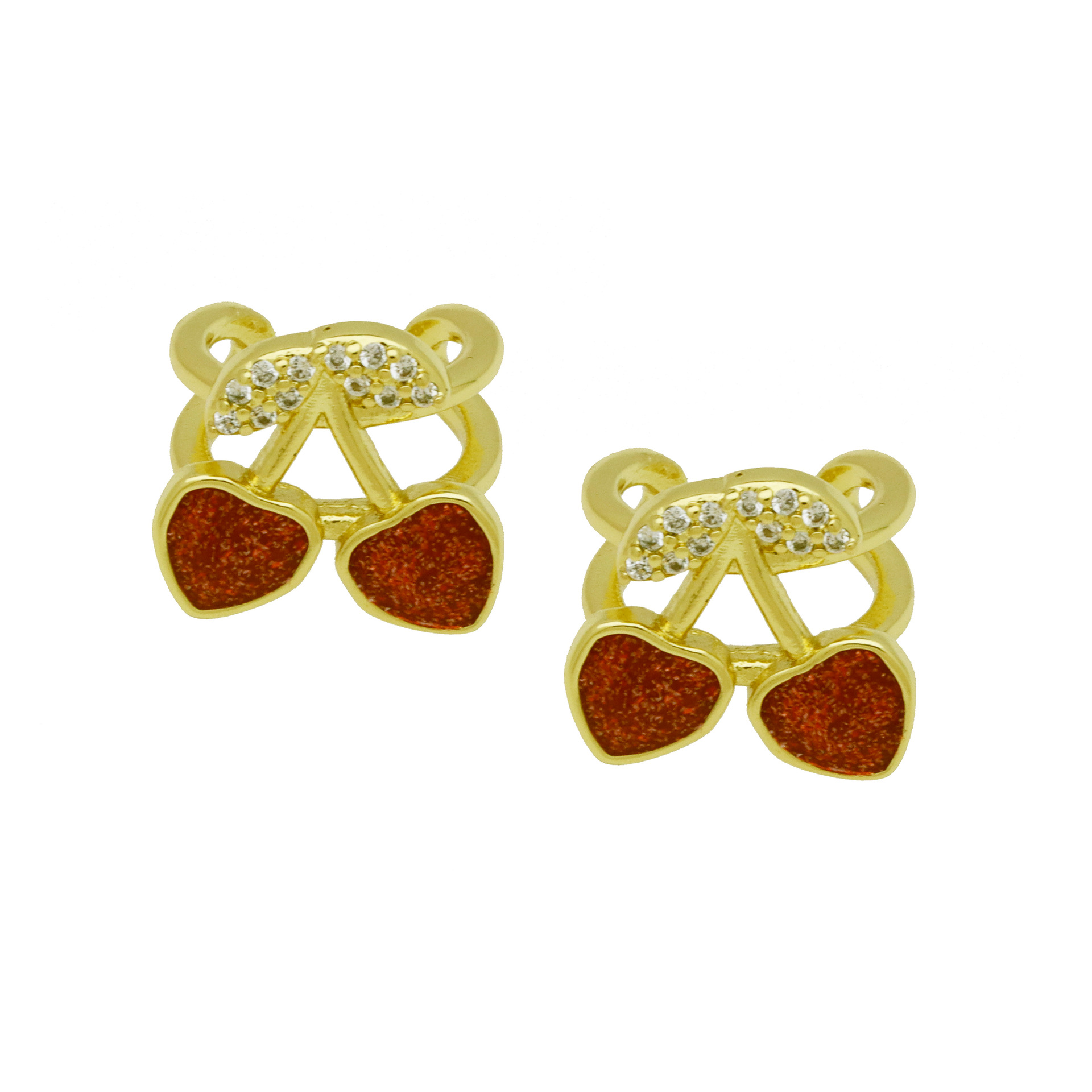 Befestiger Zirkonia Messing Ohrring, Kirsche, goldfarben plattiert, verschiedene Stile für Wahl & Micro pave Zirkonia & für Frau & Emaille, keine, verkauft von Paar