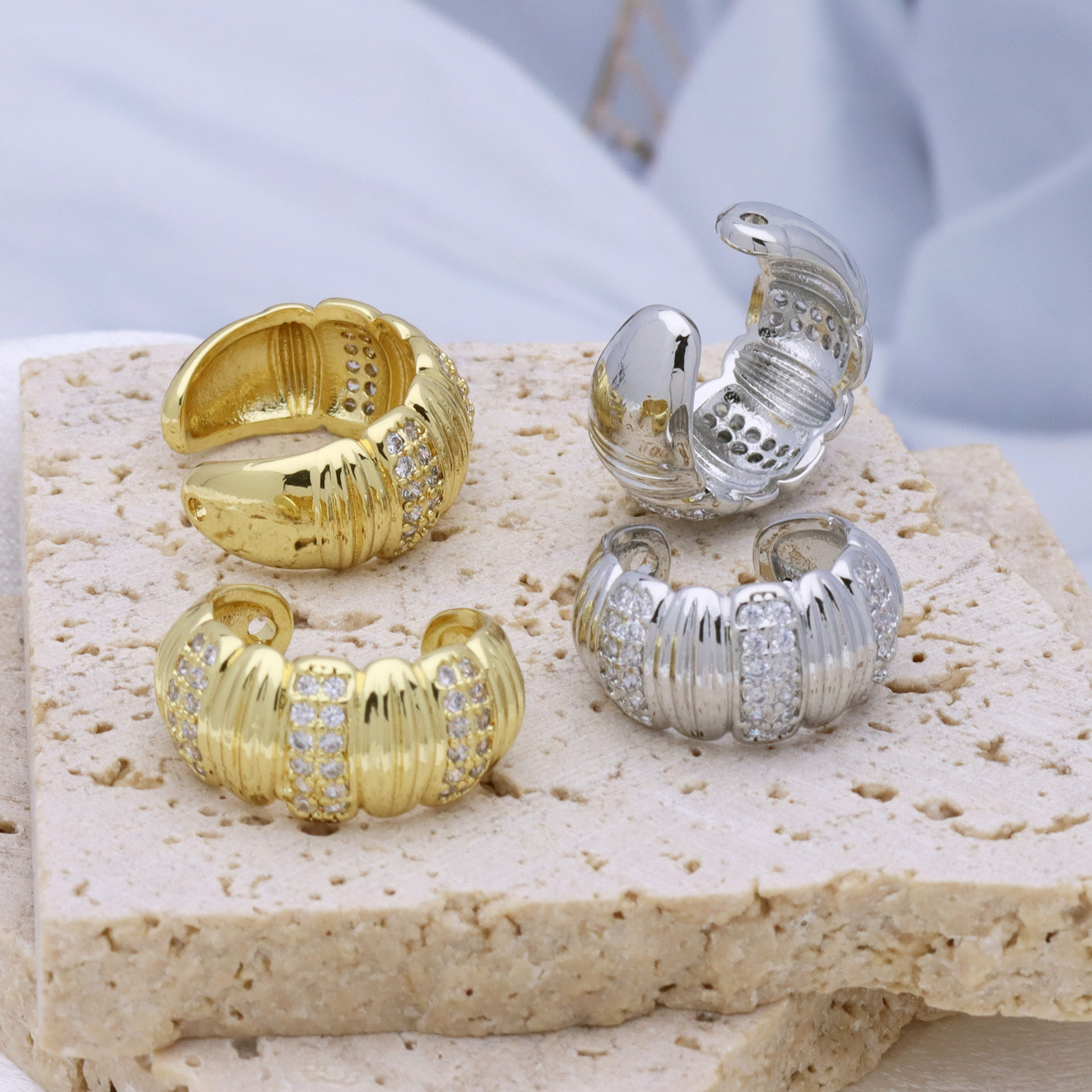 Messing Huggie Ohrreifen, mit kubischer Zirkonia, Druckguss-, für Frau, keine, frei von Nickel, Blei & Kadmium, 20.60x10.76x18.60mm, 10PaarePärchen/Tasche, verkauft von Tasche