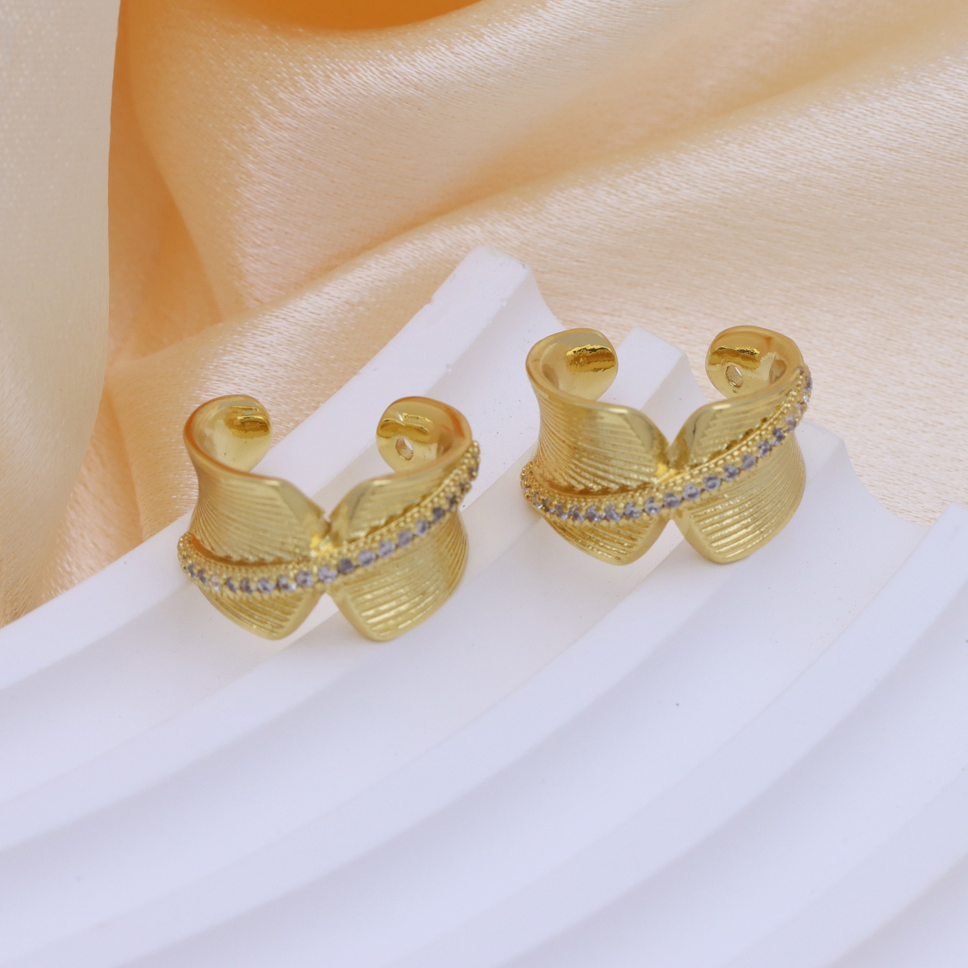 Messing Huggie Ohrreifen, mit kubischer Zirkonia, Druckguss-, für Frau, keine, frei von Nickel, Blei & Kadmium, 20.60x10.76x18.60mm, 10PaarePärchen/Tasche, verkauft von Tasche