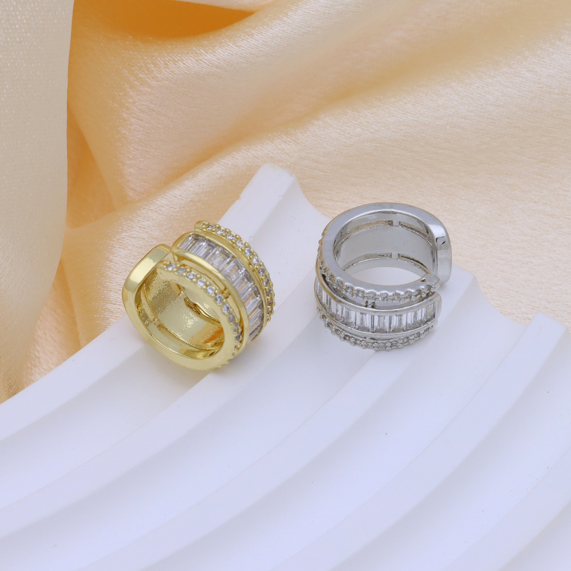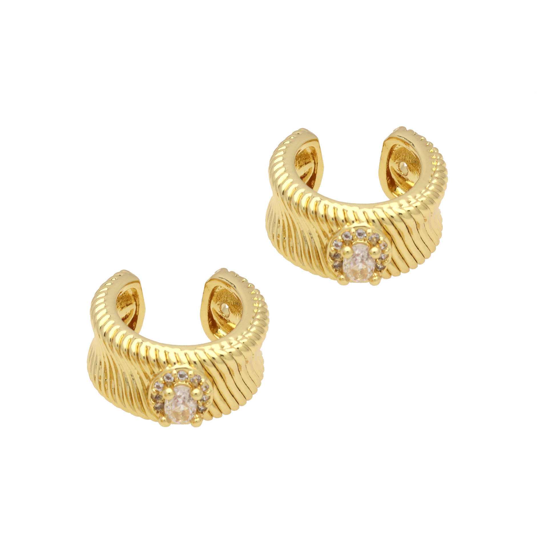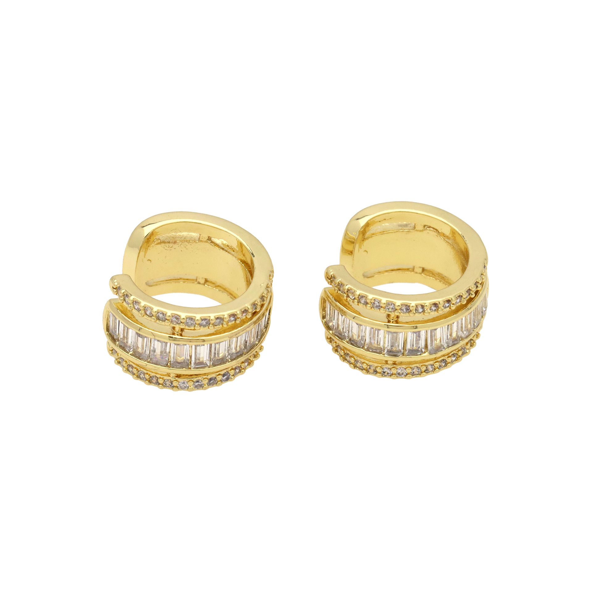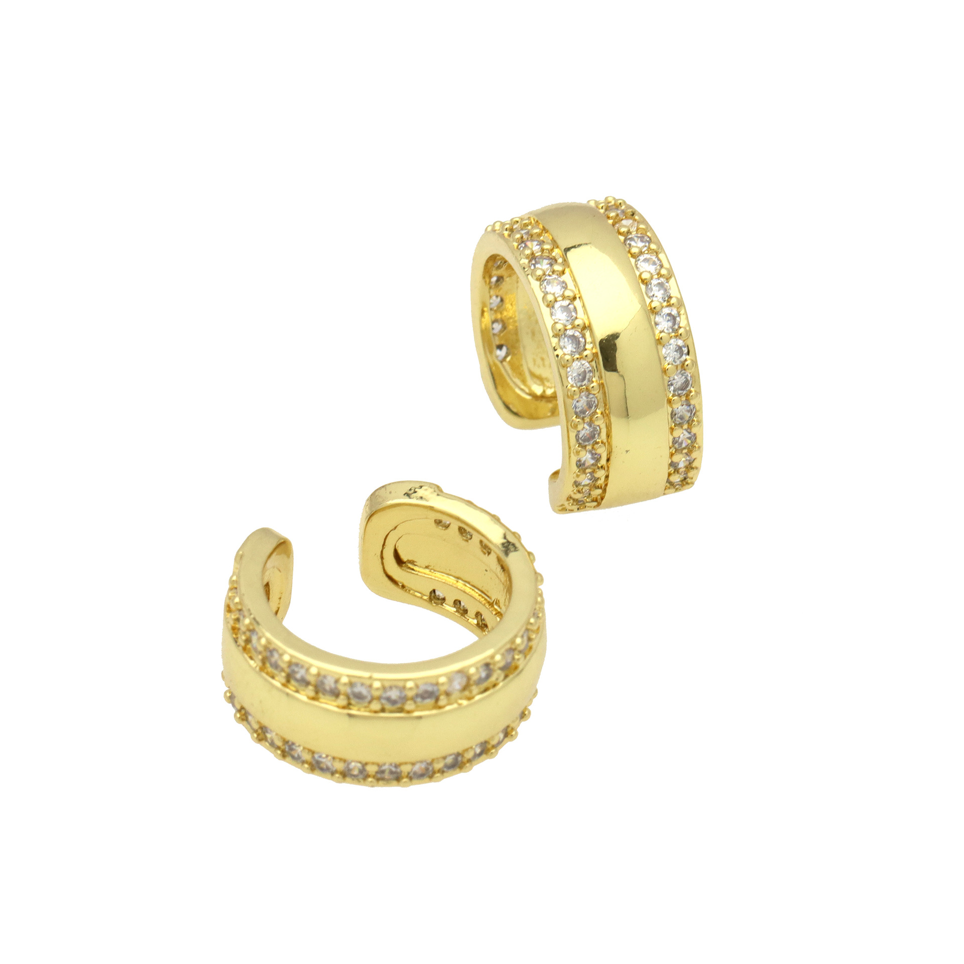 Messing Huggie Ohrreifen, mit kubischer Zirkonia, Druckguss-, für Frau, keine, frei von Nickel, Blei & Kadmium, 20.60x10.76x18.60mm, 10PaarePärchen/Tasche, verkauft von Tasche